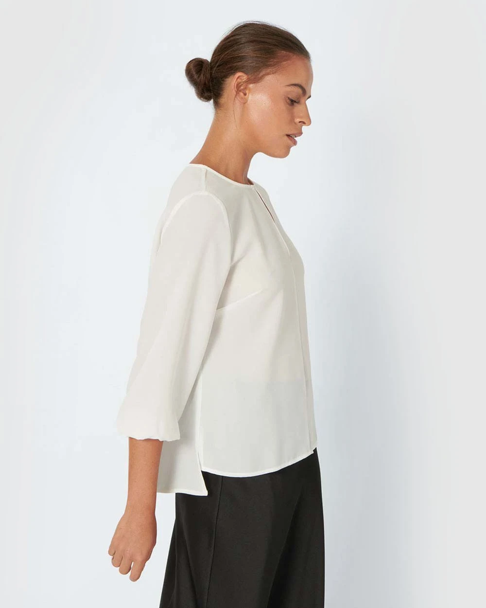 – ¾ Sleeves with gathered elastic cuffs