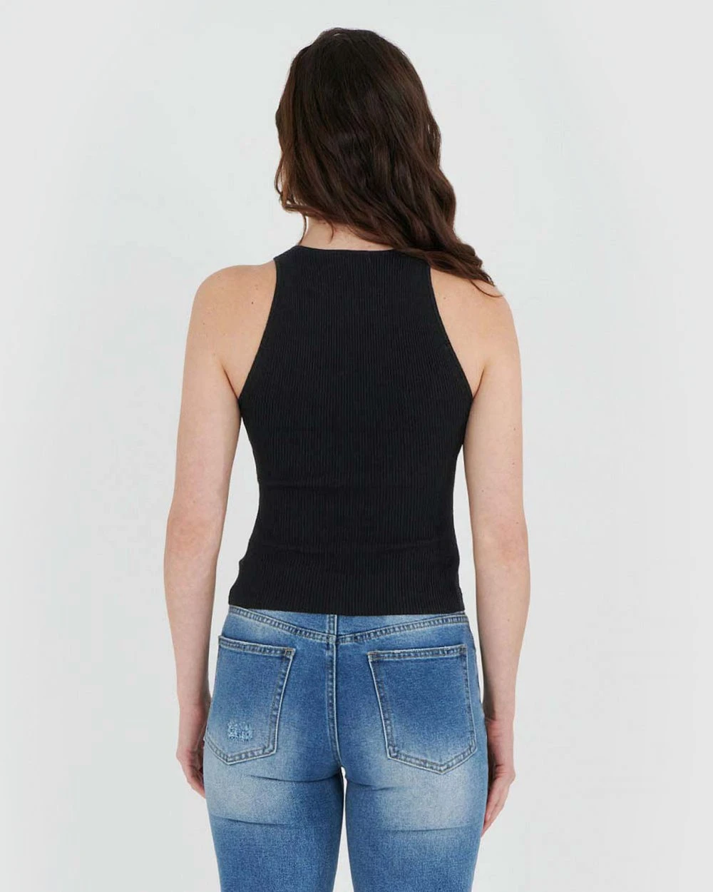 The Amira Knit Top by Forcast with its comfortable stretch ribbed knit texture and simple tank design, making it a versatility staple. Perfectly paired with any of your favourite statement pieces to freshen your next occasion outfit.