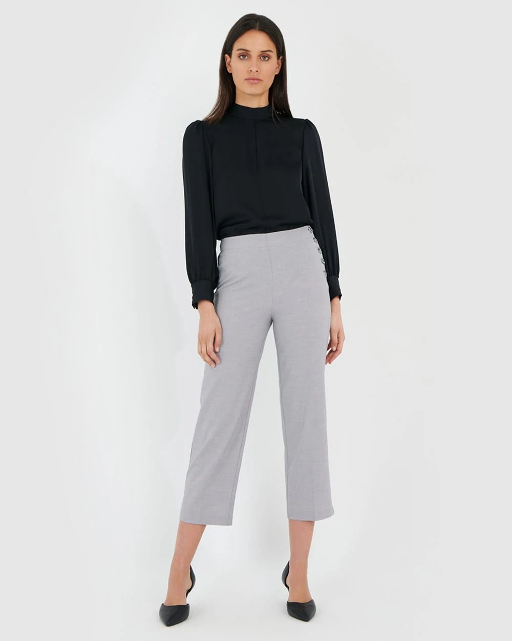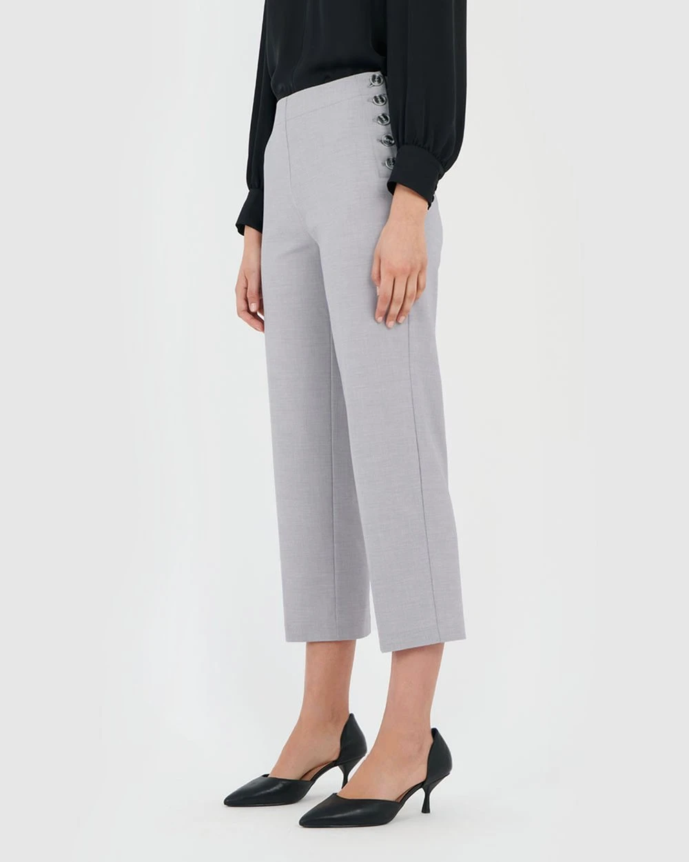 A new look for a classic straight legged silhouette, the Asha Side Button Pants by Forcast is ideal for the office this spring. The clean and polished design is created in a light-weight fabrication, featuring side button fastening and cropped length, giving this piece a modern edge. Style it with a light blouse for a sophisticated look to take you from boardroom to bar.