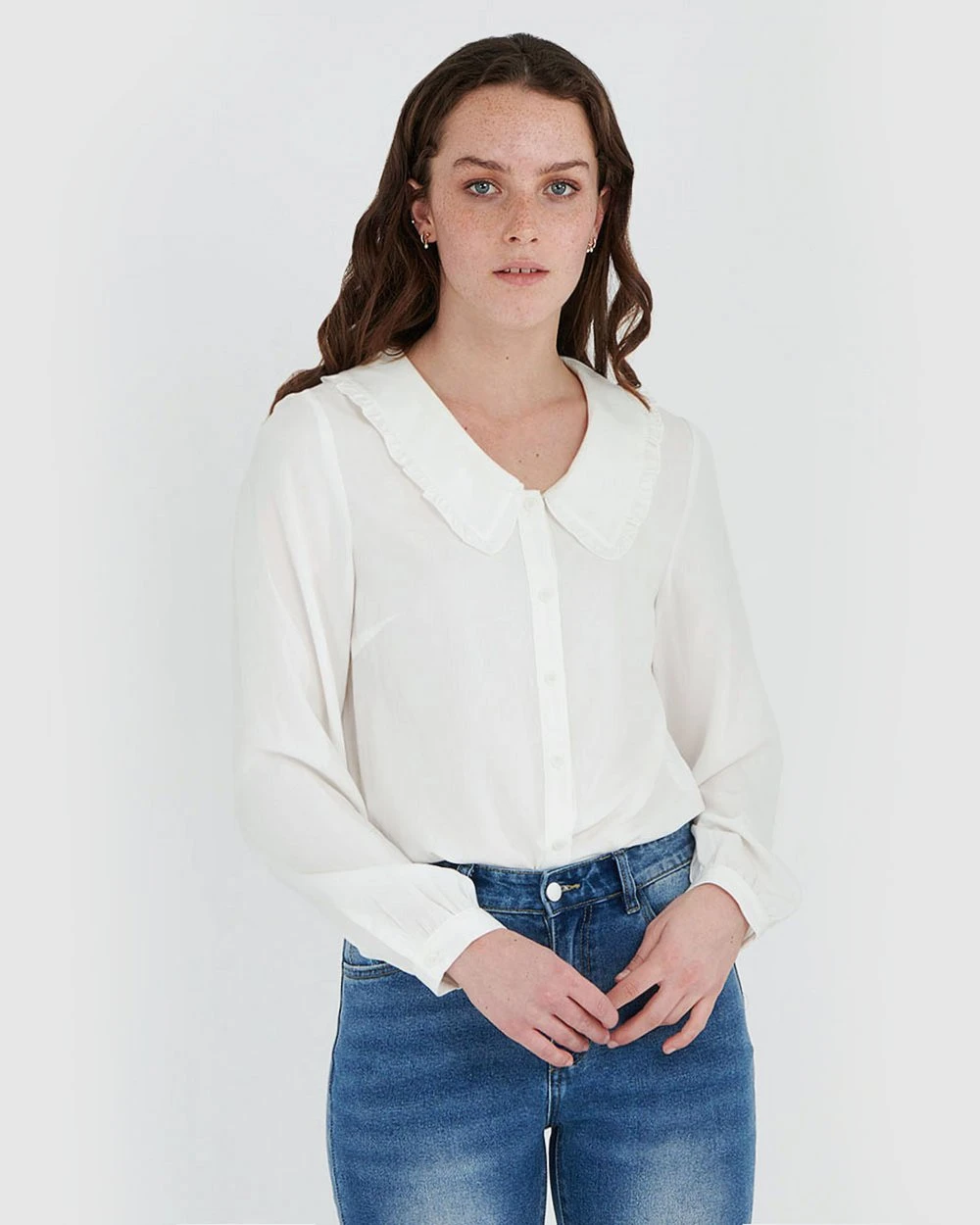 The Beatrice Collar Detail Blouse by Forcast is cut from a lightweight breathable fabrication making it perfect for those warm days ahead, featuring oversize frill collar and long sleeves with button cuff fastening. Style this stylish piece with a fitted pencil skirt and heels for a stunning desk to dinner look.