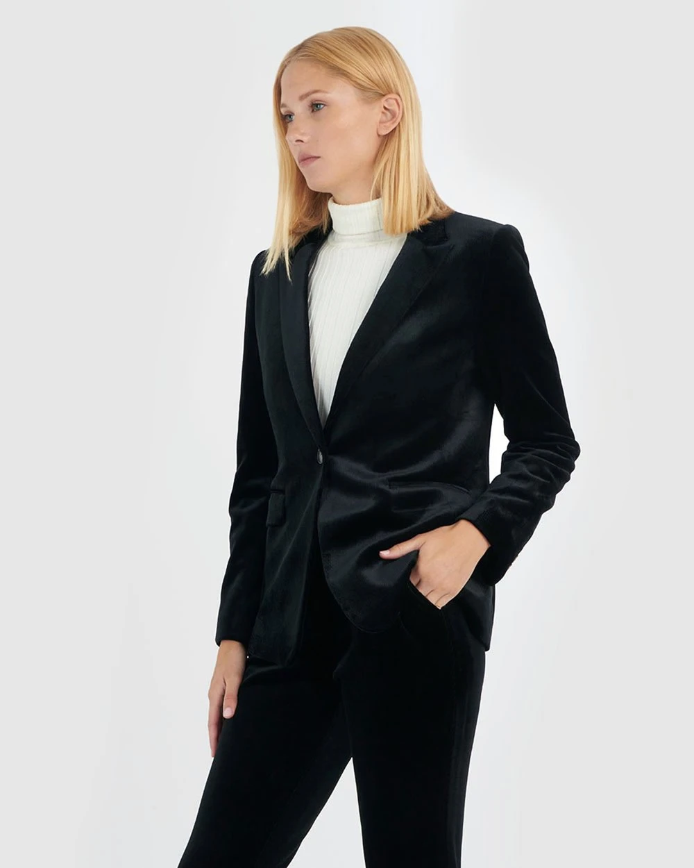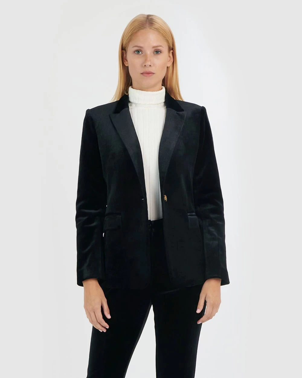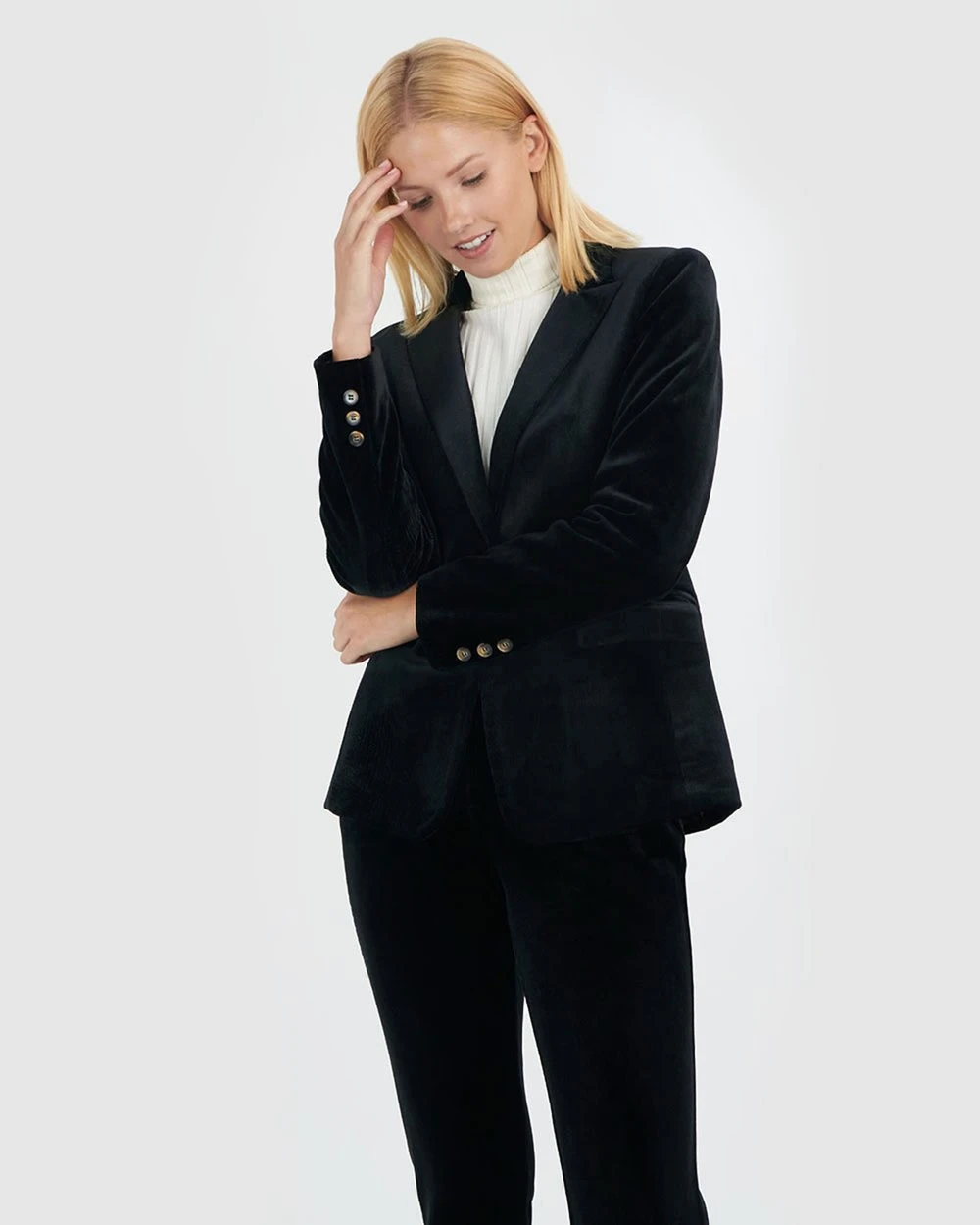 The Bentley Corduroy Blazer by Forcast gives the classic blazer a contemporary edge with its soft corduroy fabrication with subtle shine. Whether styled as its own piece or in a set, this design is sure to have you exuding elegance in the office. Wear over a V-neck top and the matching Bentley Corduroy Pants or the Bentley Corduroy Mini Skirt for a trendy corporate look.