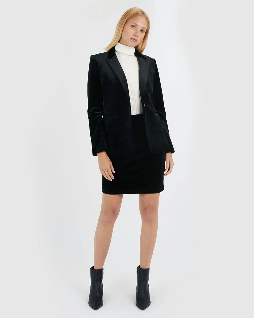 A sophisticated and stylish piece, the Bentley Corduroy Mini Skirt by Forcast is sure to be a favourite this season. Designed in a soft corduroy fabric, this mini style is perfect for the young professional. Team it with the matching Bentley Corduroy Blazer and a basic knit top for a modern and classy office look.