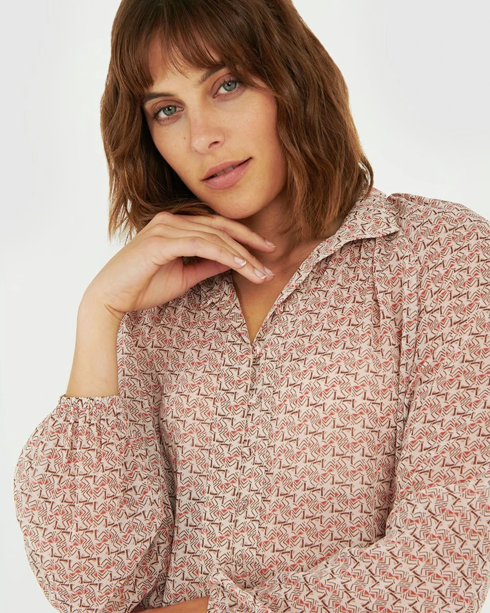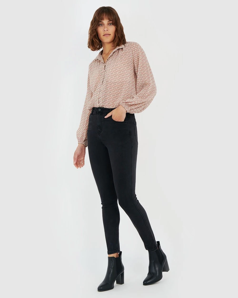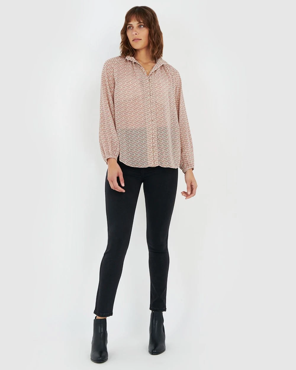 The Bianca Button Up Blouse by Forcast exudes subtle elegance. A relaxed design, featuring long sleeves with elastic cuffs and button down fastening in a unique print, this blouse will take you from desk to dinner and beyond. Wear tucked in to a pencil skirt or slim pants for a classy corporate look.