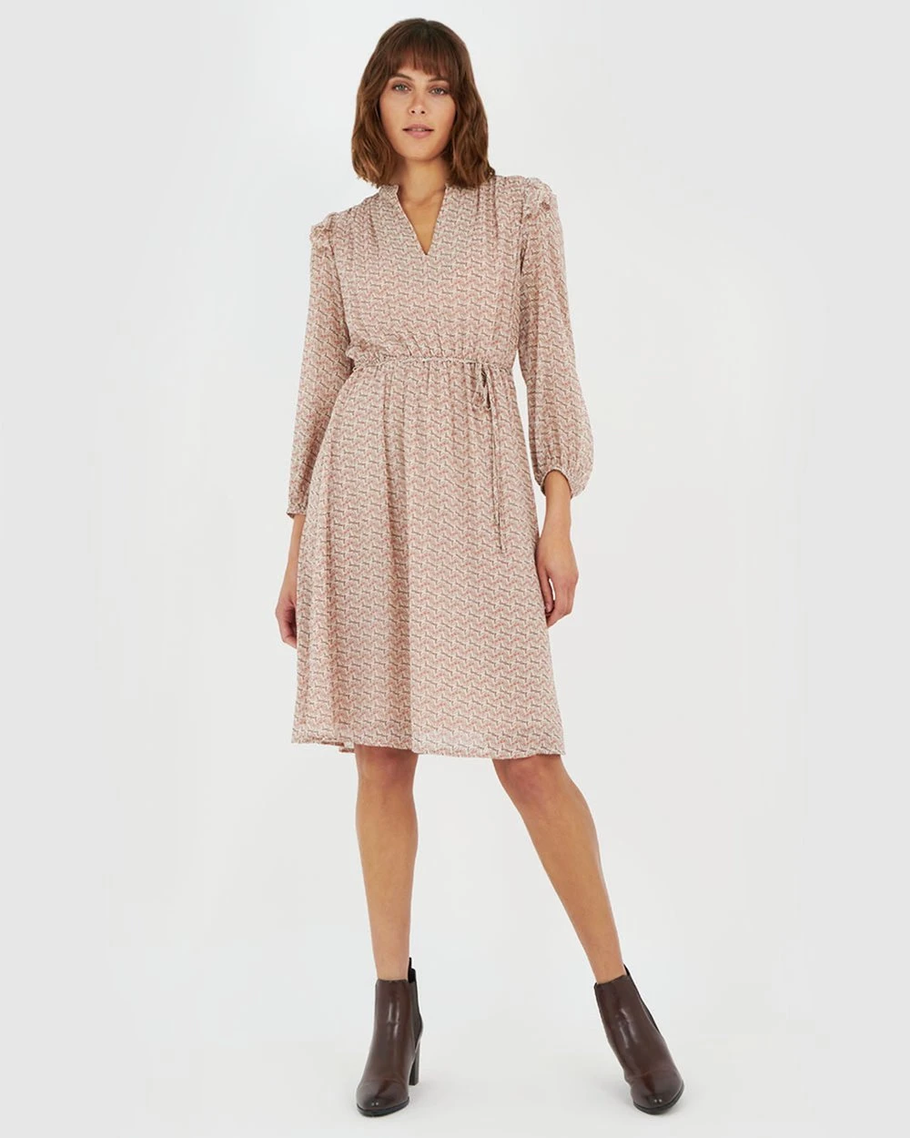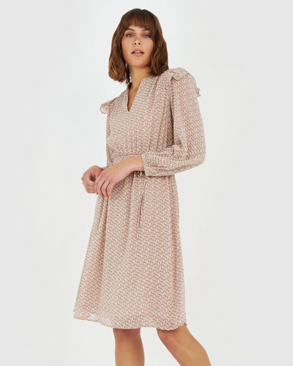 The Bianca Midi Dress by Forcast is patterned in alluring unique print. Featuring its long sleeves with gathered shoulders with frill detail and tie waist belt, this midi dress is all about effortless sophistication. Wear yours with strappy heels and simple, dainty accessories.