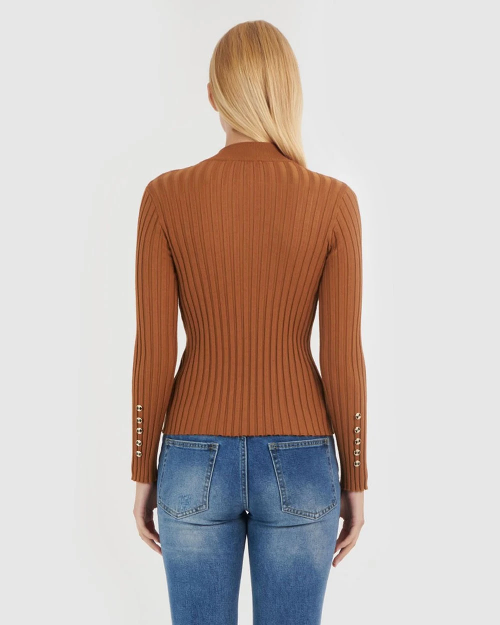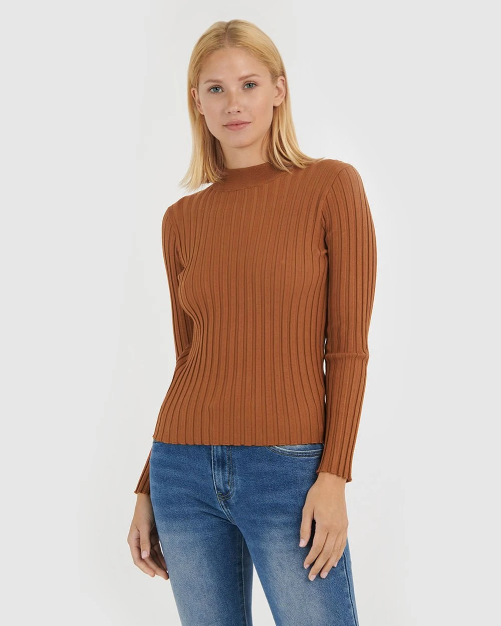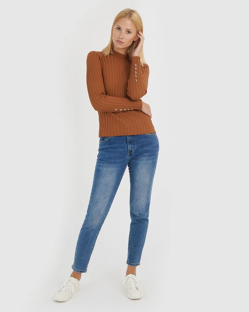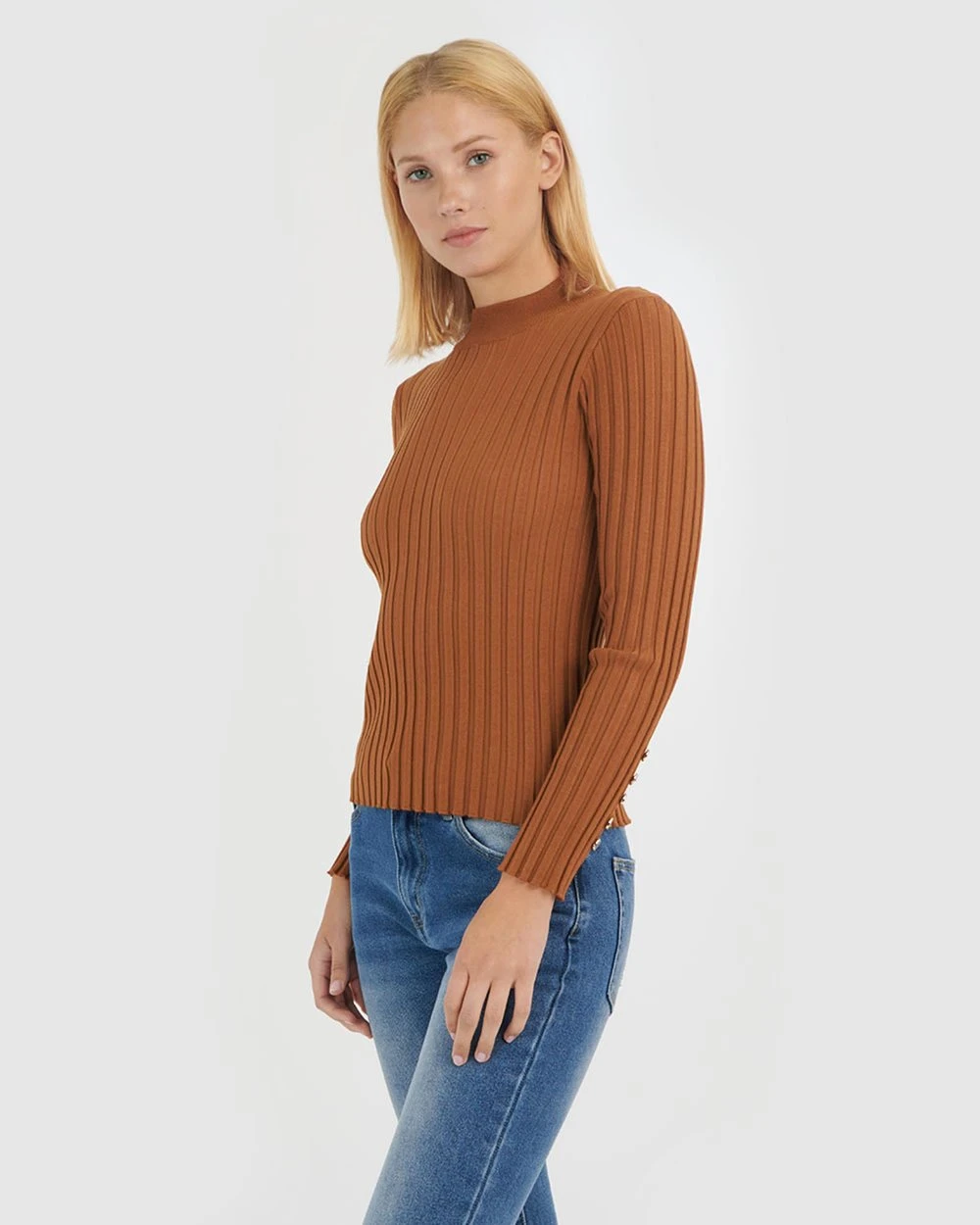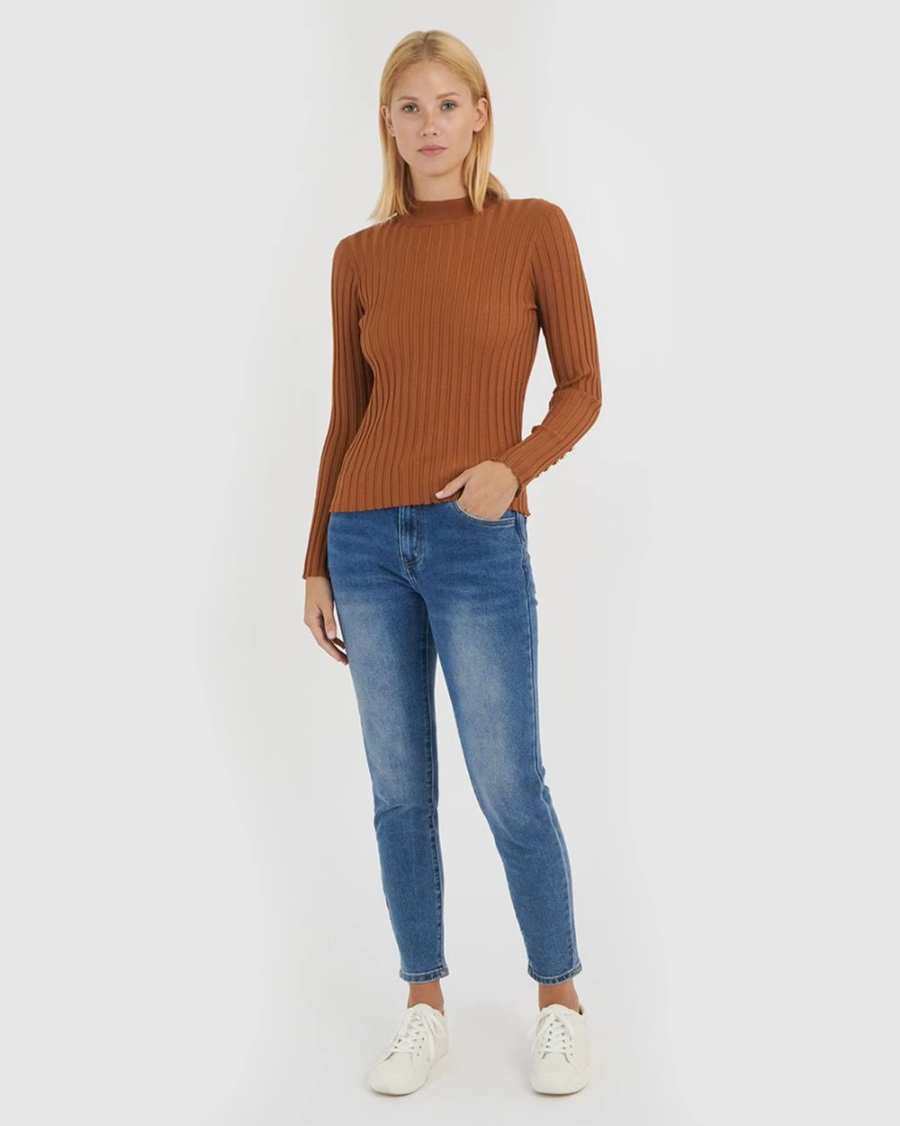 The solution for your trans-seasonal wardrobe, our Brooke Mock Neck Knit by Forcast will keep you warm with its mock neck and fitted, long sleeve silhouette. You’ll never have to forego comfort for style in the office with this simple, versatile piece.