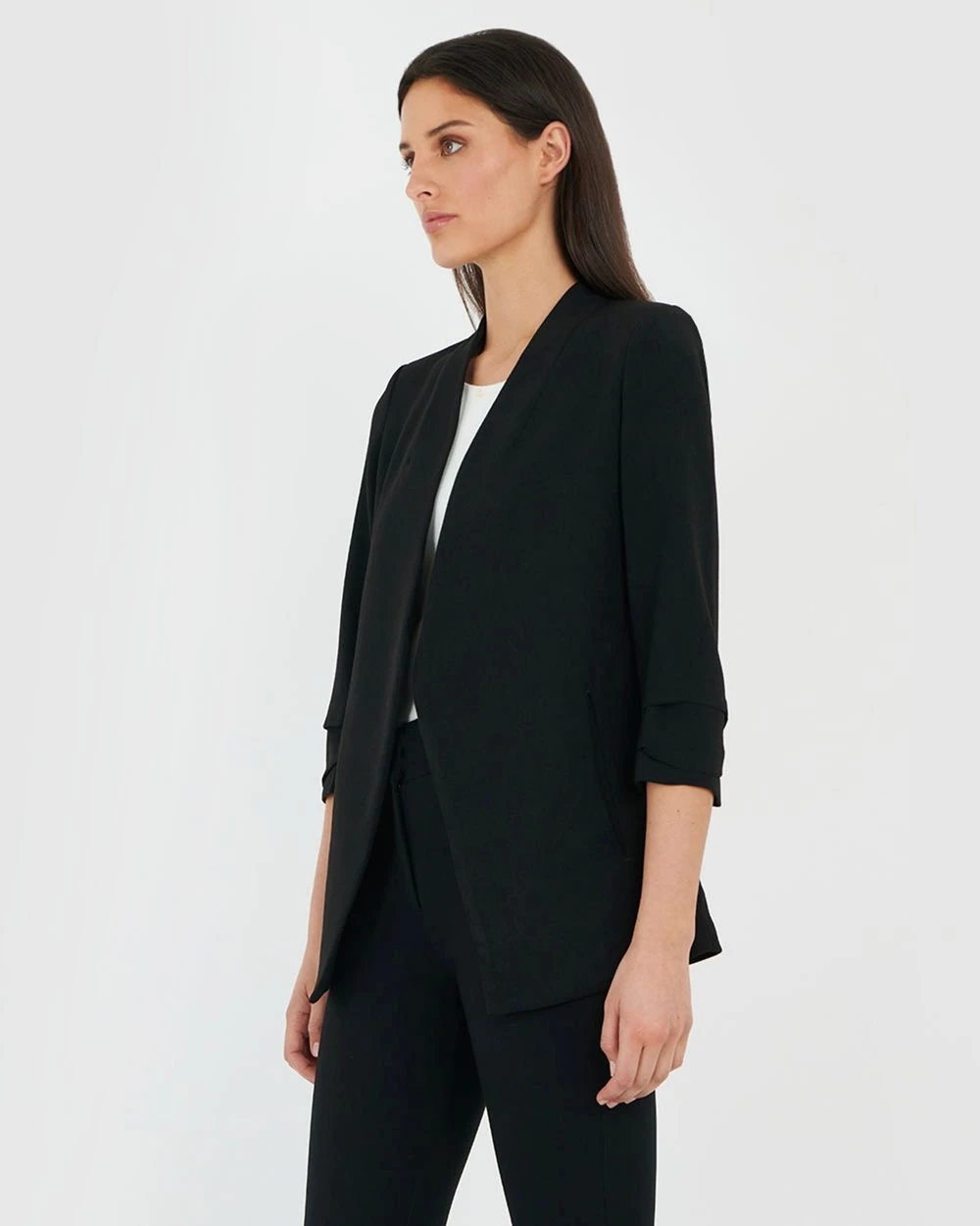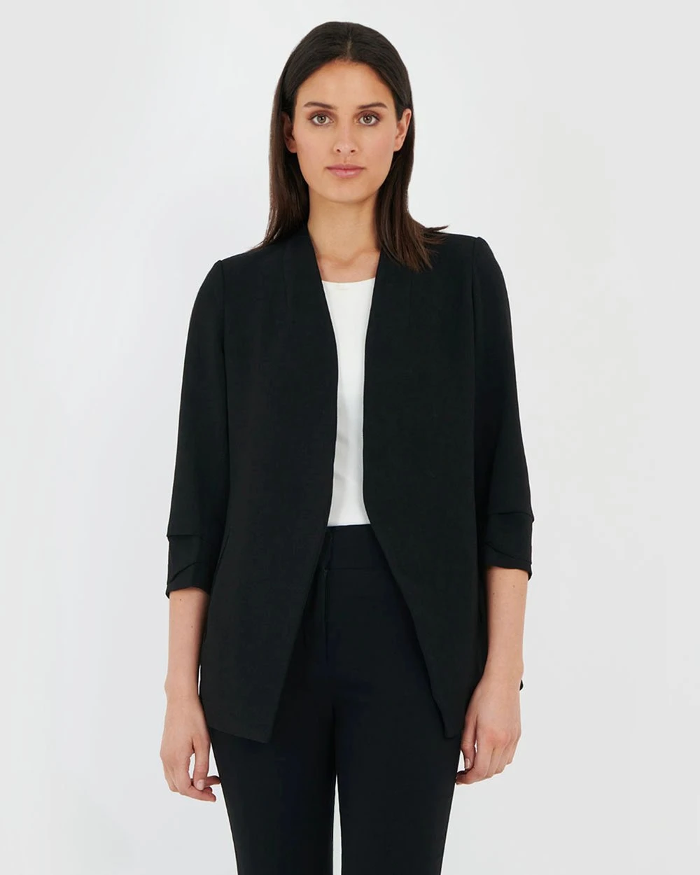 For a sleek and sophisticated finish to your look, the Carter 2 Collarless Blazer by Forcast is just the outerwear piece you need. This open style jacket is perfect for throwing over a V-neck top tucked into slim pants for a relaxed yet classy corporate look.