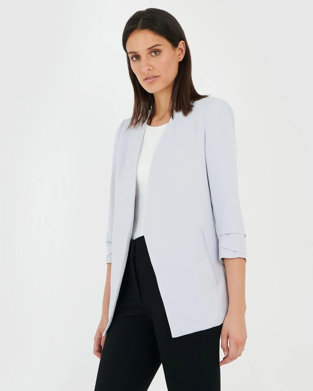 For a sleek and sophisticated finish to your look, the Carter 2 Collarless Blazer by Forcast is just the outerwear piece you need. This open style jacket is perfect for throwing over a V-neck top tucked into slim pants for a relaxed yet classy corporate look.