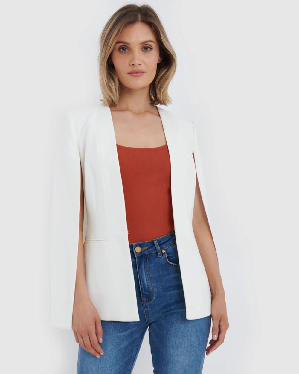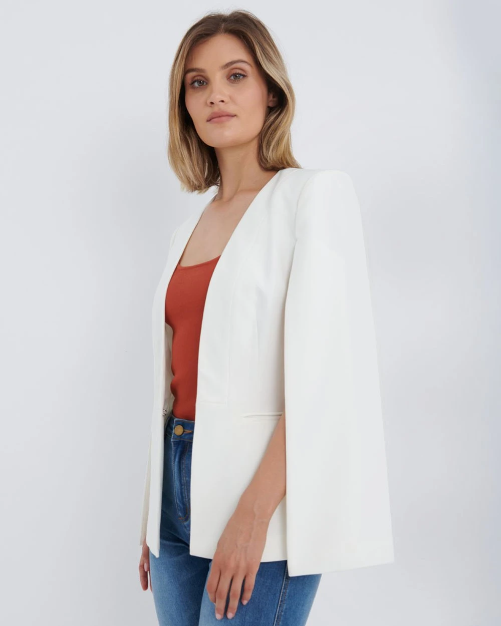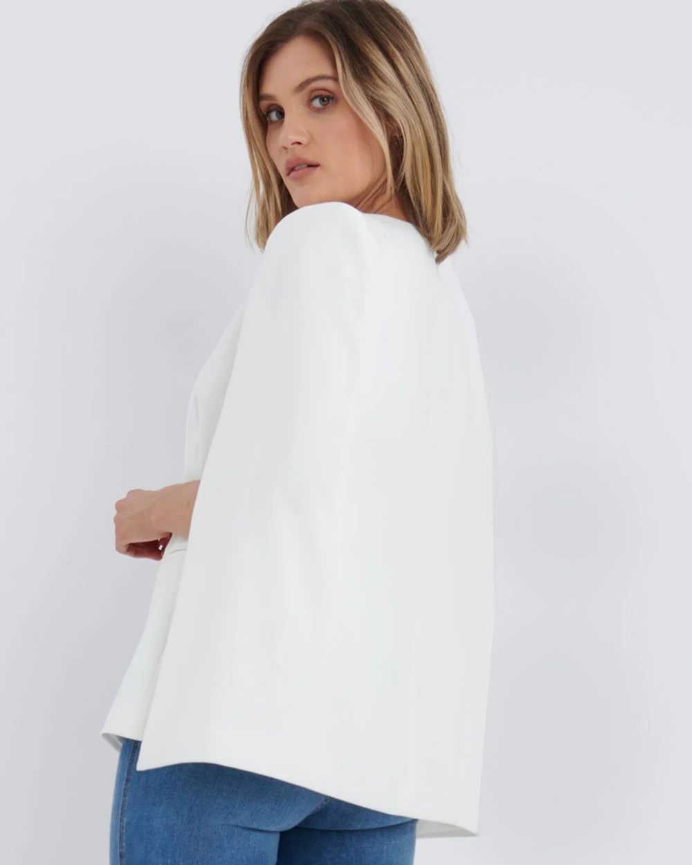 The trendy Christina Cape Jacket by Forcast will diversify your outerwear edit this warmer season. Featuring a structured silhouette and lightweight design, this statement jacket is perfect for almost any occasion. Style with fitted pants and a blouse for a smart casual look, or draped over a cocktail dress for a sophisticated finish.