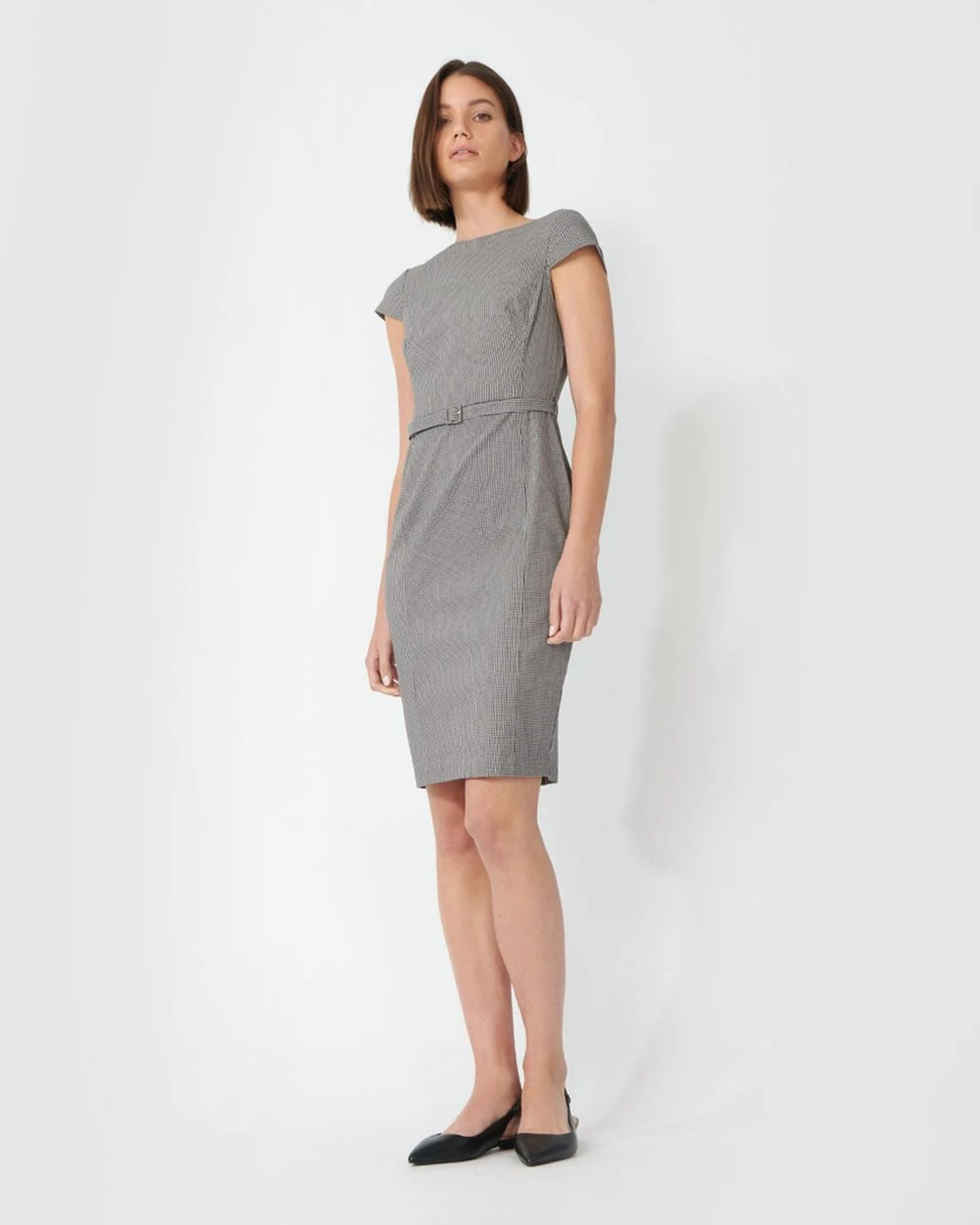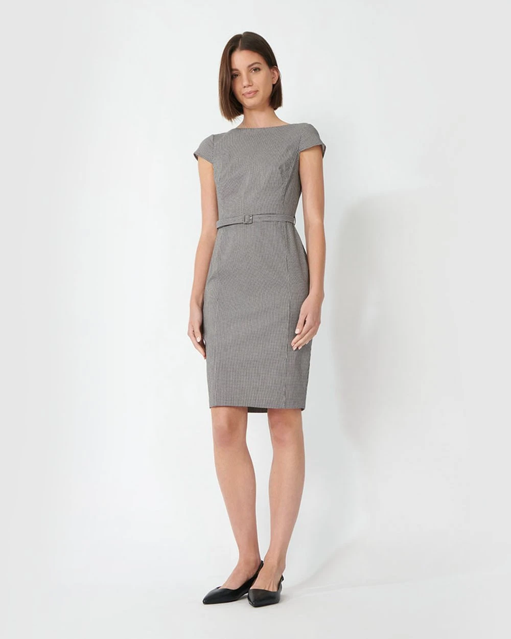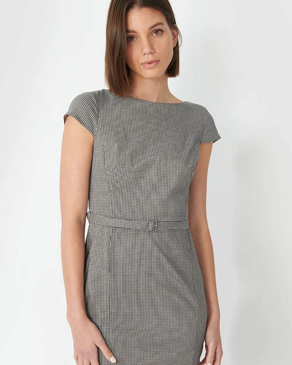 Get that polished and professional finish in the Dalia Belted Dress by Forcast. The classy and corporate design, featuring cap sleeves and two-tone eccentric print, is sure to be a work wardrobe favourite and will take you from boardroom to bar with ease.