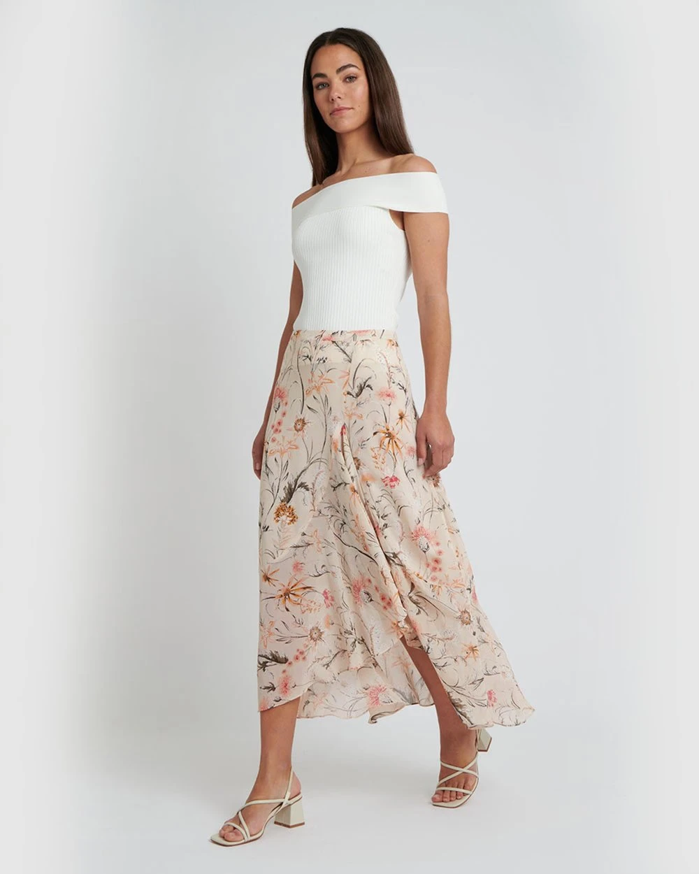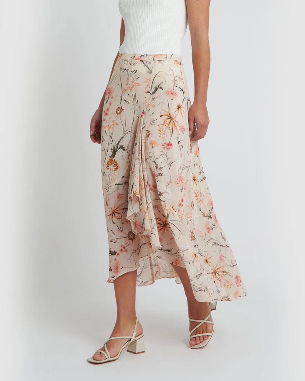 Optimal summer florals, the Elaina Printed Skirt by Forcast is sure to be a season favourite. This light and breezy A-line skirt, featuring floral prints and ruffle hem details, will keep you looking polished and classy all day. Wear with a simple fitted top and strappy heel for an elegant ensemble.