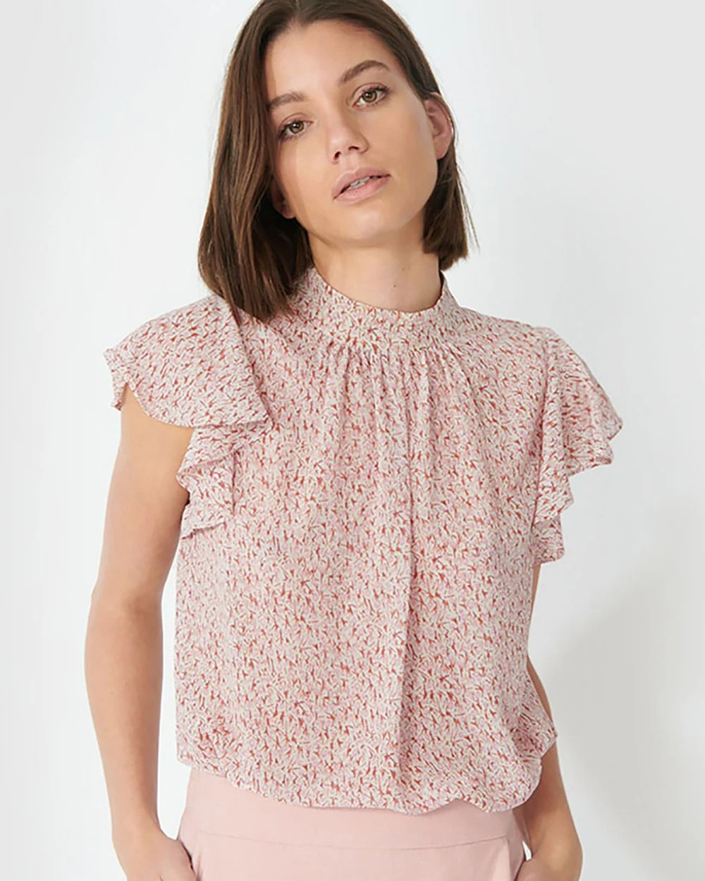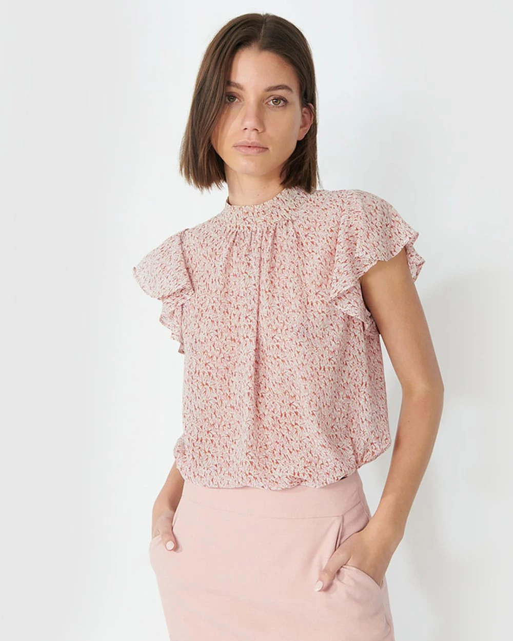 The Emily Ruffled Cap Sleeve Blouse by Forcast is an elegant piece that will keep you looking chic through the day. Featuring frill details, this light and feminine design is perfect for a day on the go. Tuck into a pencil skirt, and finish off with pointed pumps for a sophisticated office outfit.