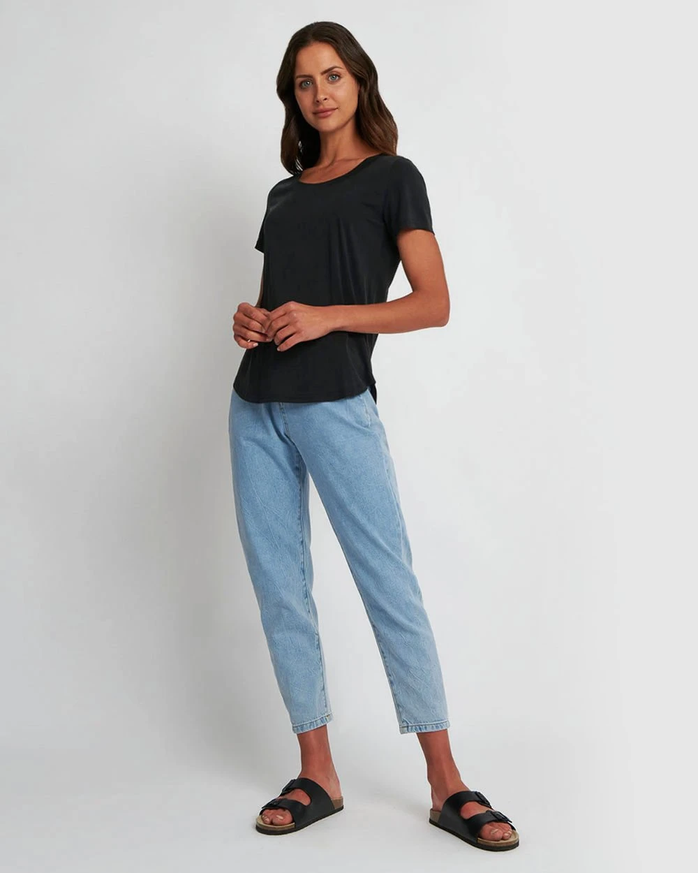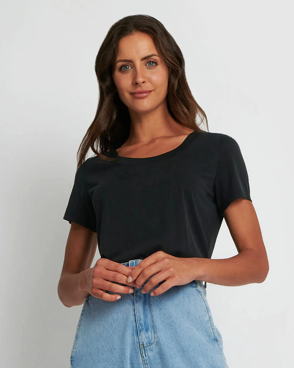 Luxuriously soft and cool to the touch, the Hanna Scoop Modal Tee by Forcast will be your must-have staple this summer. Simple in design, this bare essential is makes it easy to mix and match with your favourite accessories and bottom apparel.