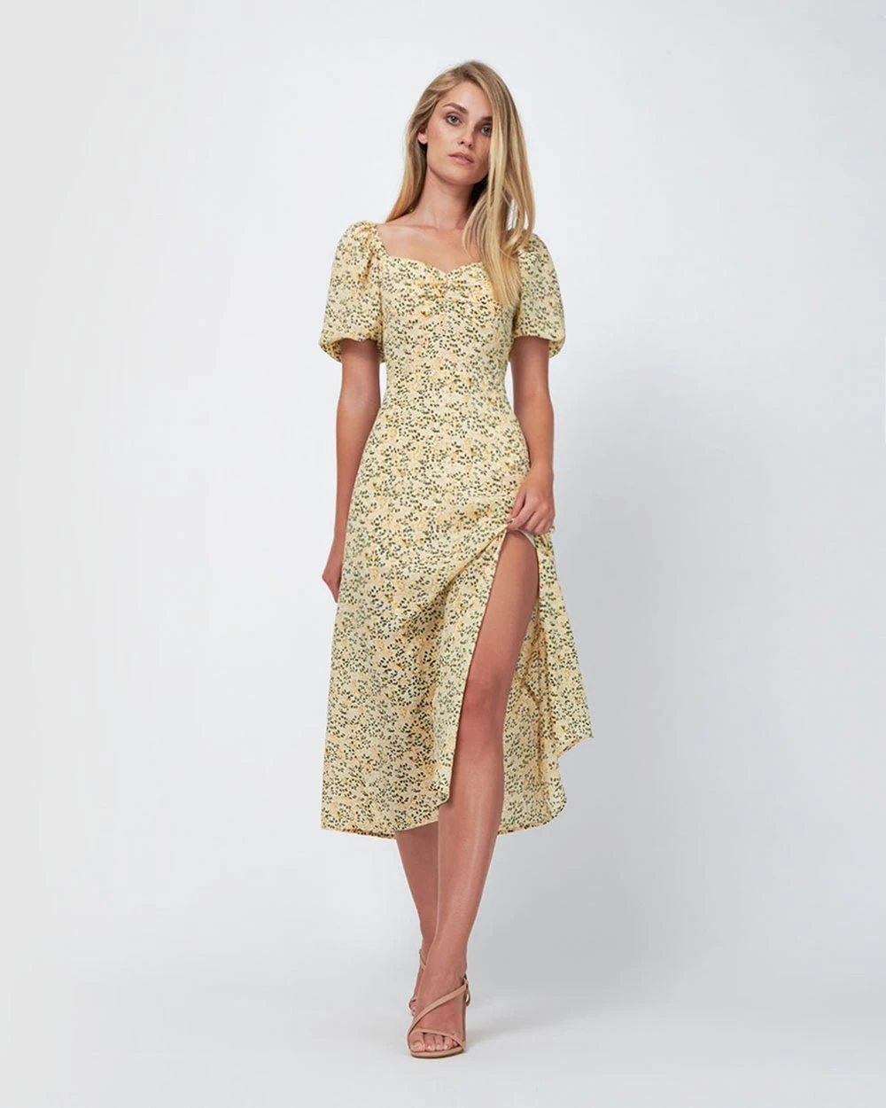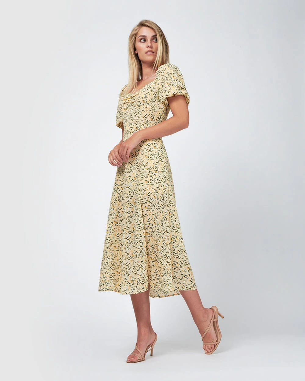 The Harmony Puff Sleeve Side Split Midi Dress by Forcast will be a favourite this summer, with its fun and feminine print, featuring puff sleeves and a side split. Pair with sandals or kitten heels to finish off this effortless summer look.