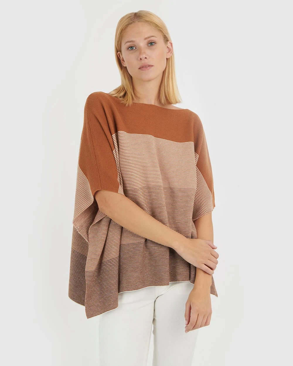 The Hudson Stripe Knit Poncho by Forcast is a weekend warmer not to be missed. The draped fit design features textured stripe and multi tone woven fabrication. This oversized and relaxed style is easy-to-wear and the perfect pick for a chic and casual day out.