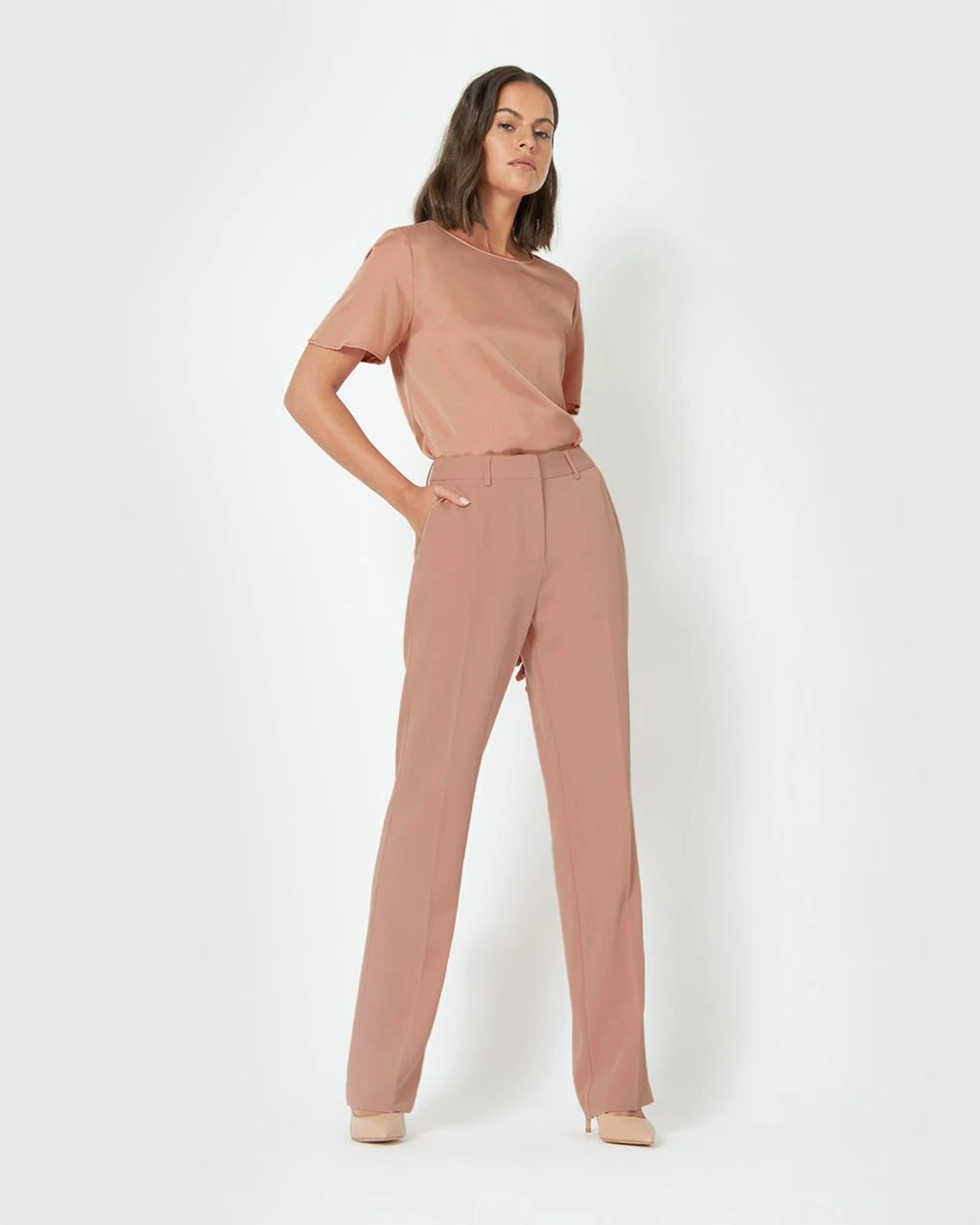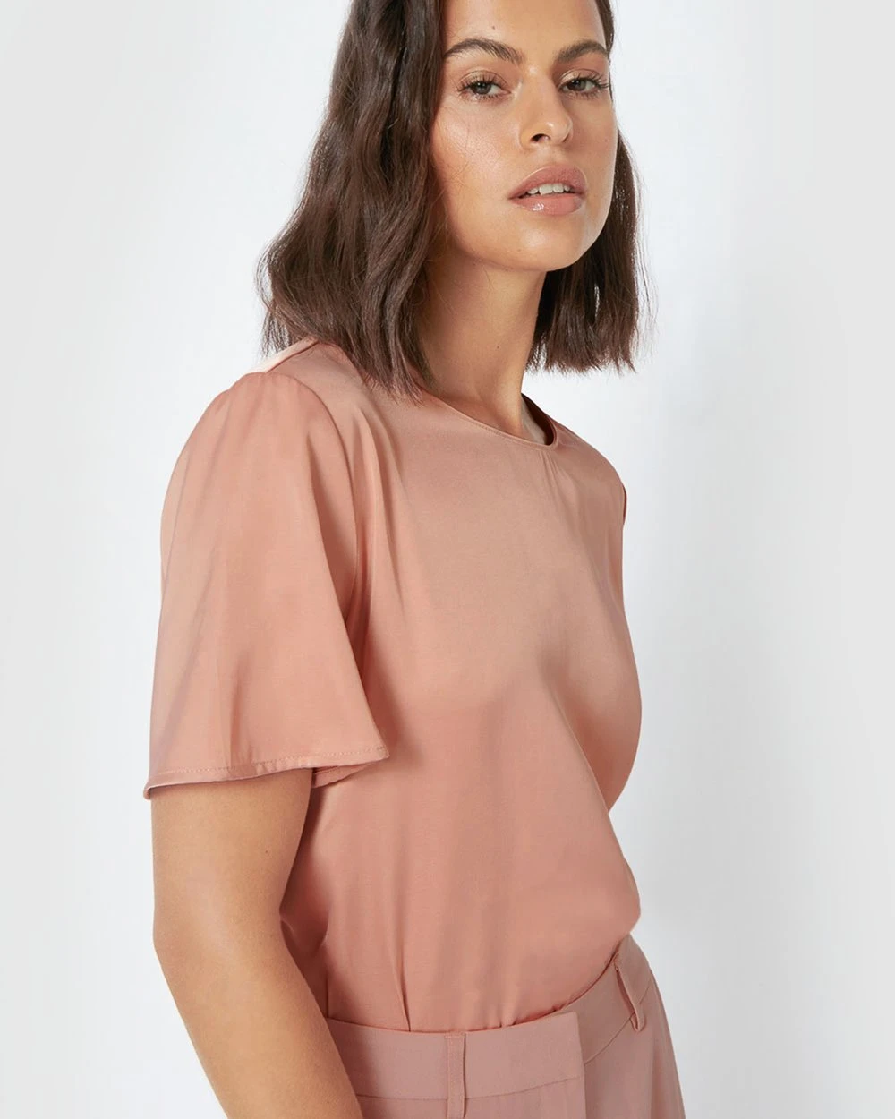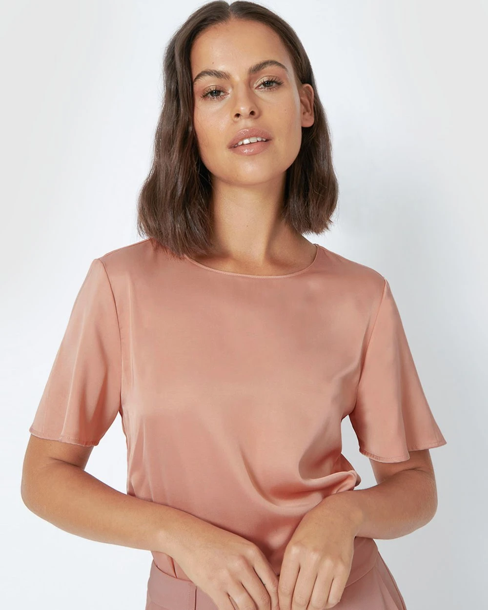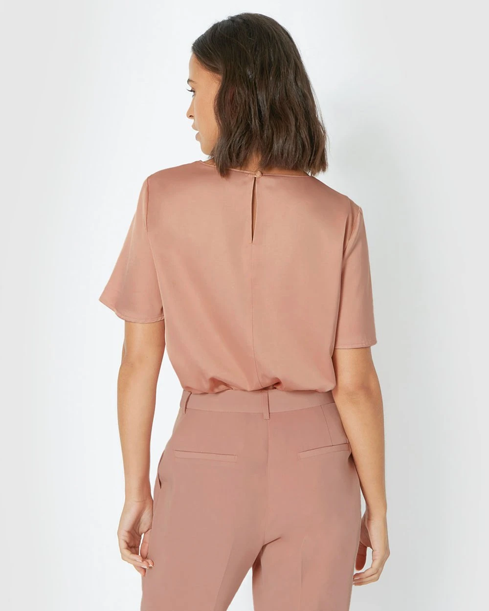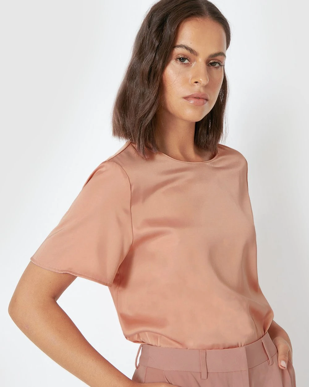 Embrace the simplicity of the soft and light-weight Ila Round Neck Top by Forcast. Whether its work or the weekend, this piece will complete your polished and elegant look with a slight sheen finish. For a fun casual look, loosely tuck into a pair of jeans and white sneakers.