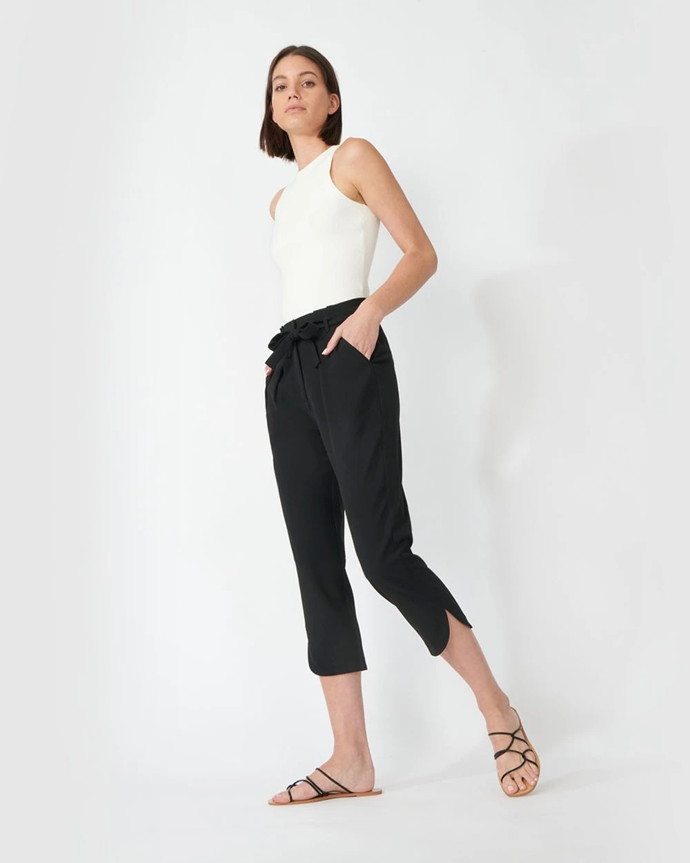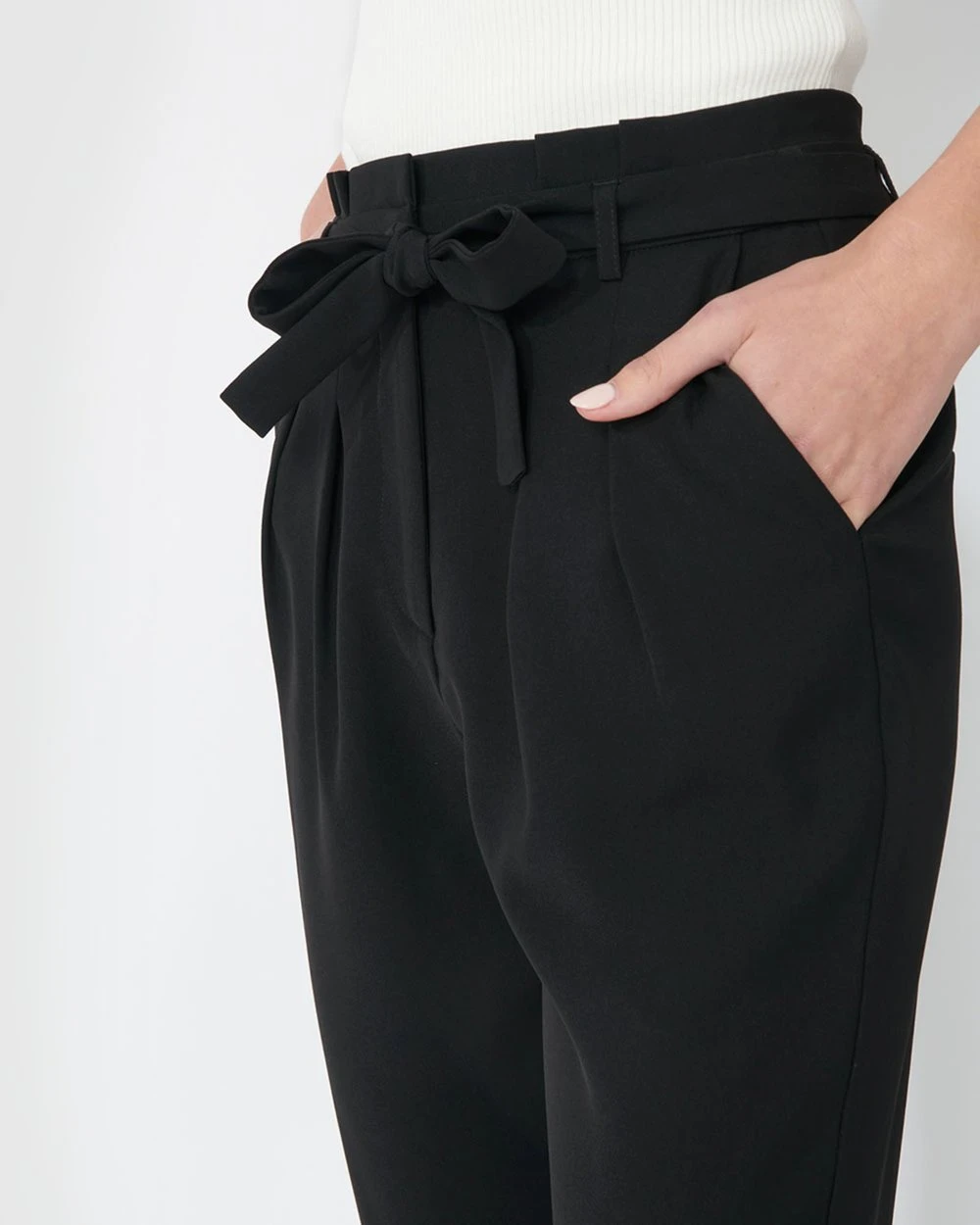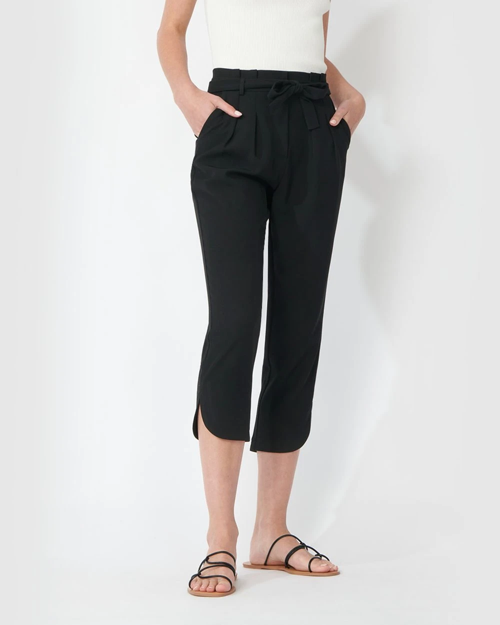 Elevate your corporate style with the Jade High- Waisted Cropped Pants by Forcast. Featuring gathered waist detail and matching tie-waist belt, this design makes for a fashion forward addition to your style selection. Pair with a flowy vibrant or simple top for a work look to suit you.