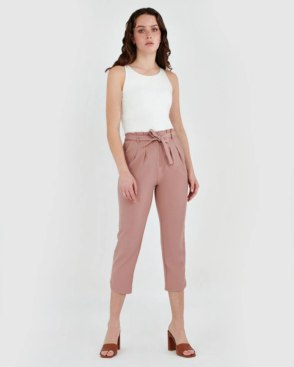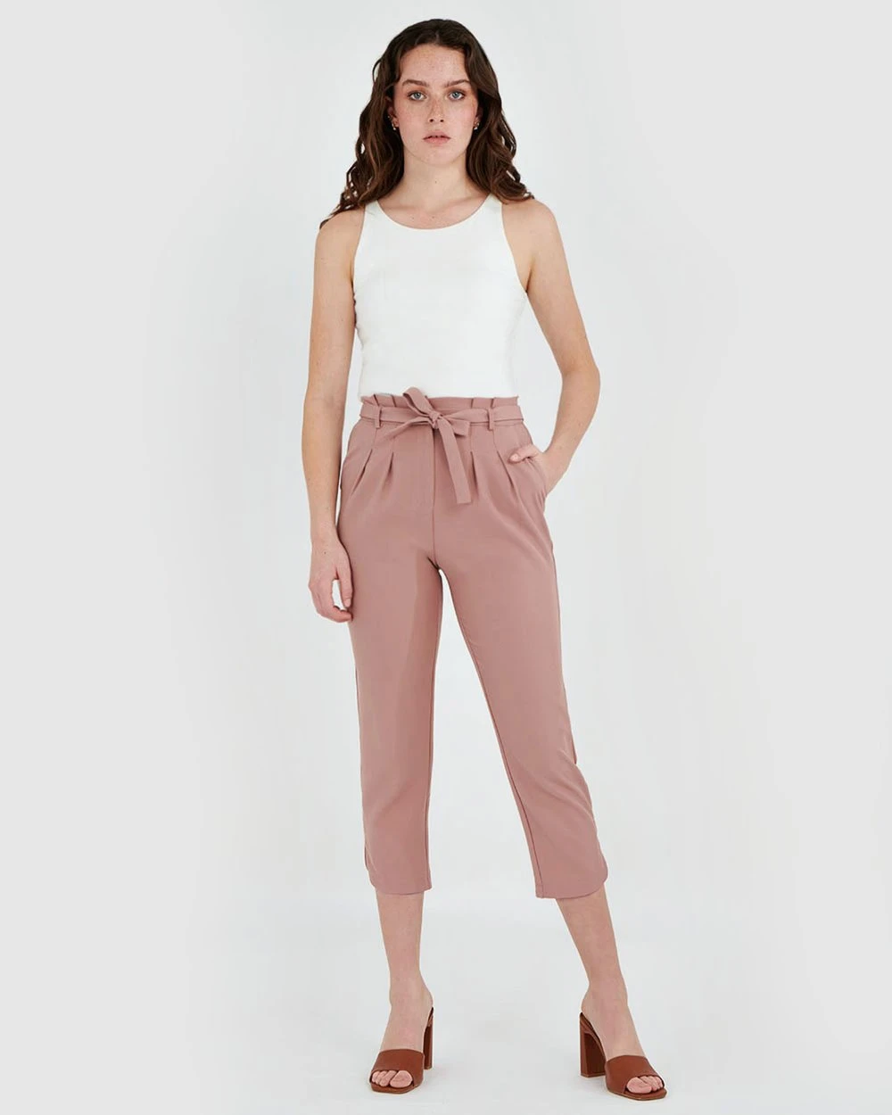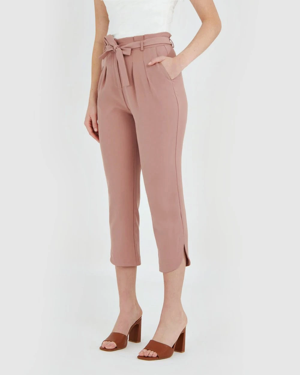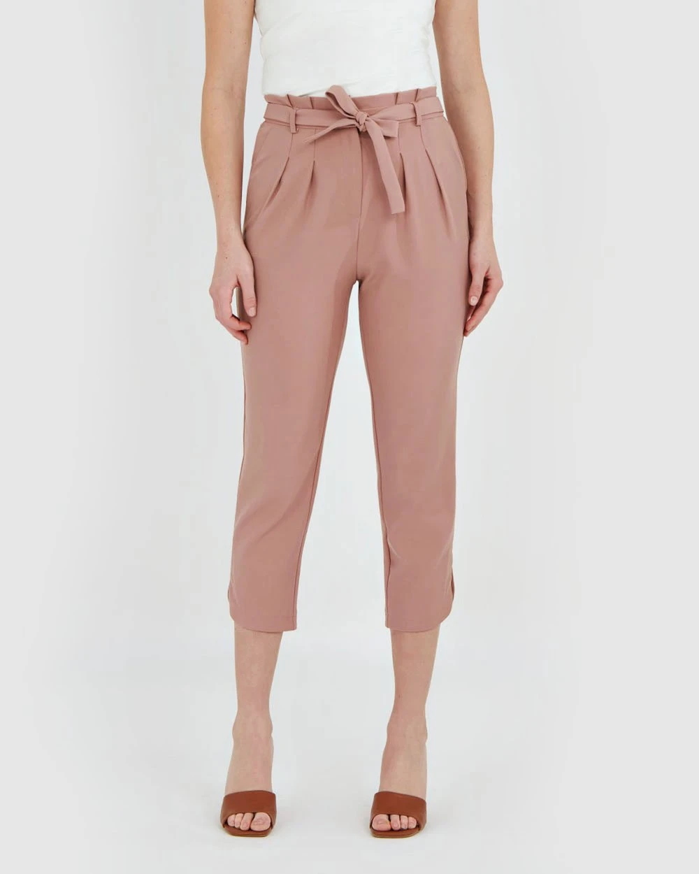 Elevate your corporate style with the Jade High- Waisted Cropped Pants by Forcast. Featuring gathered waist detail and matching tie-waist belt, this design makes for a fashion forward addition to your style selection. Pair with a flowy vibrant or simple top for a work look to suit you.