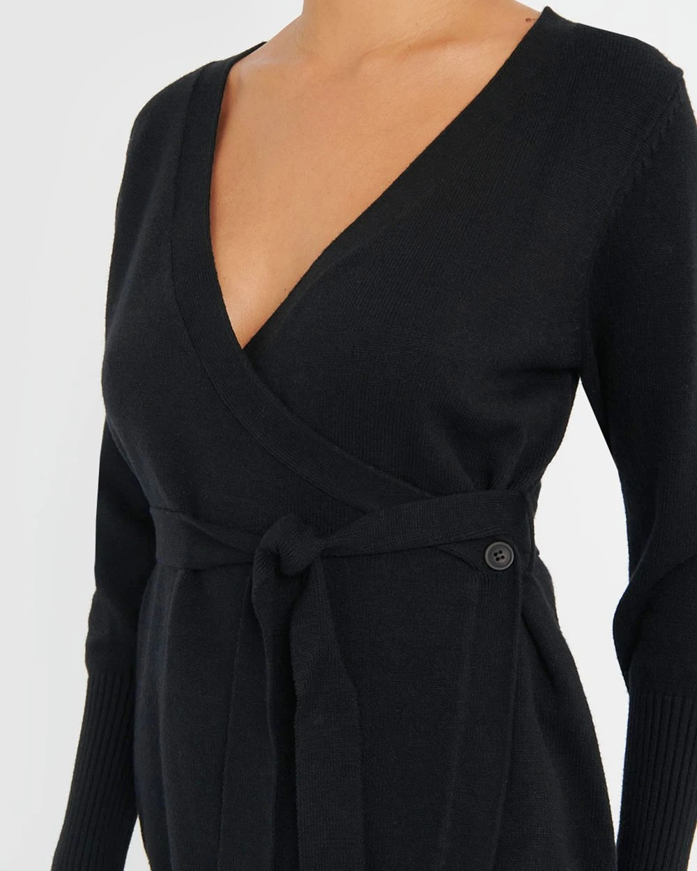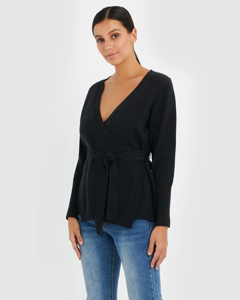 You will live in the Jane Tie Waist Cardigan by Forcast throughout the winter months. With its wrap style and tie waist belt, it will flatter any body shape, featuring ribbed details on hem and cuffs for an elegant charm.