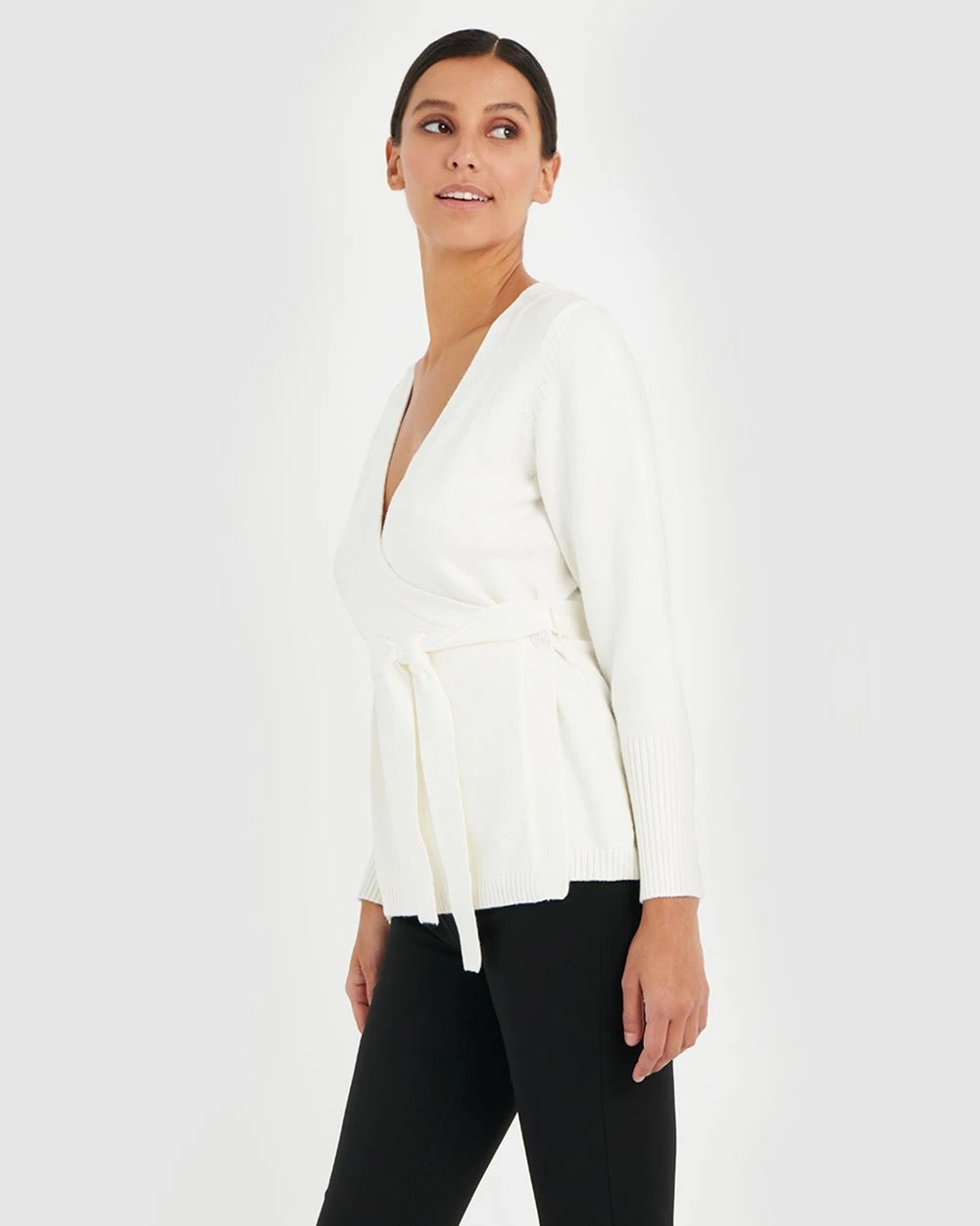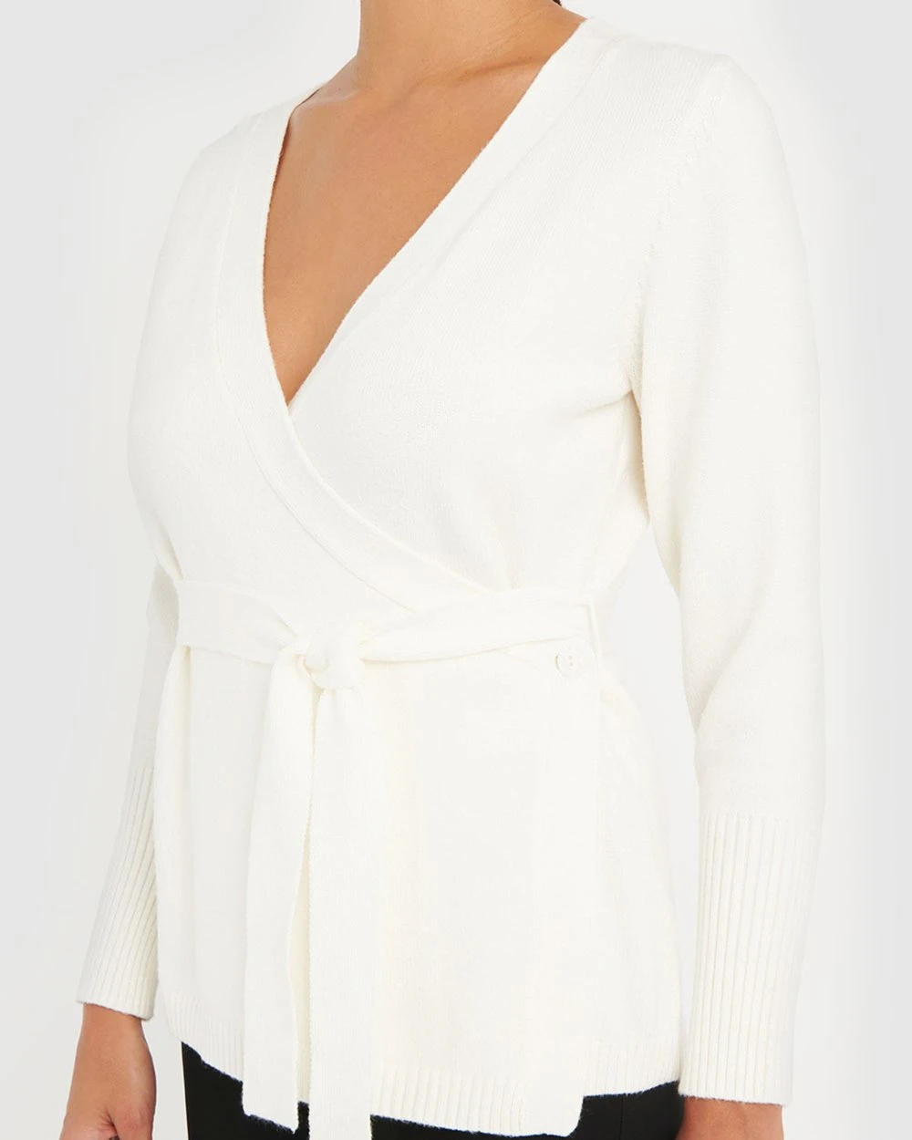 You will live in the Jane Tie Waist Cardigan by Forcast throughout the winter months. With its wrap style and tie waist belt, it will flatter any body shape, featuring ribbed details on hem and cuffs for an elegant charm.