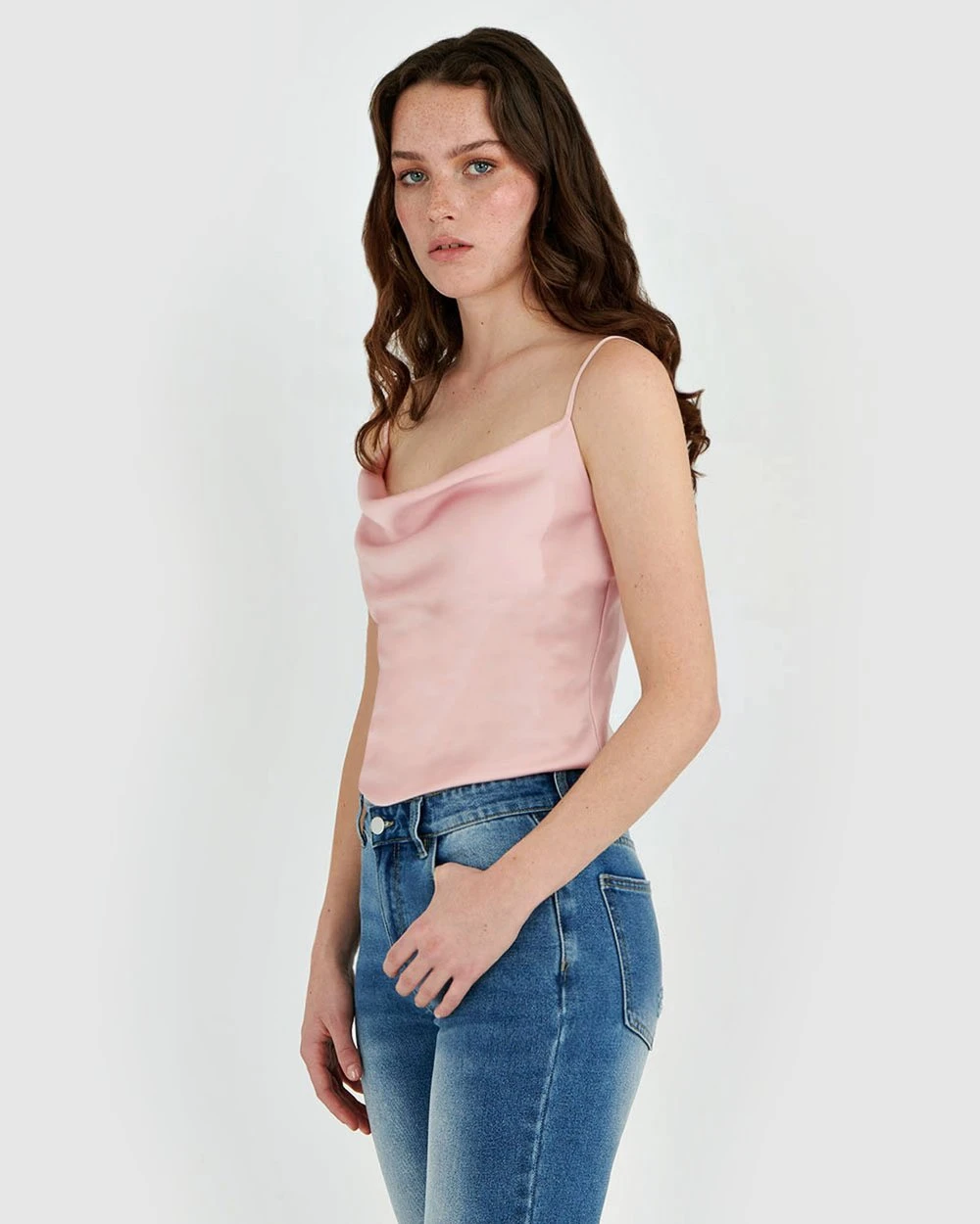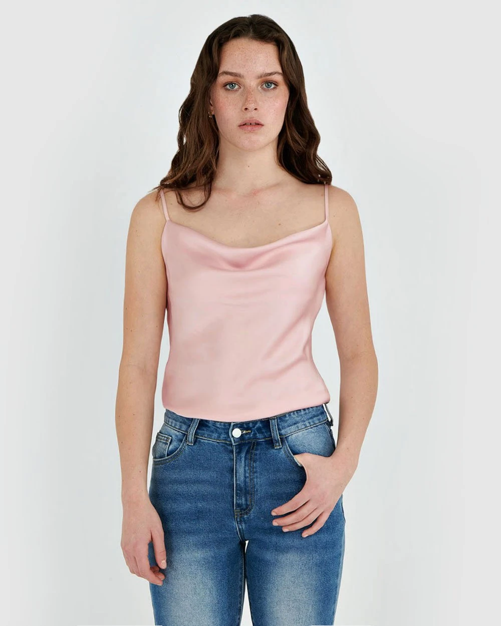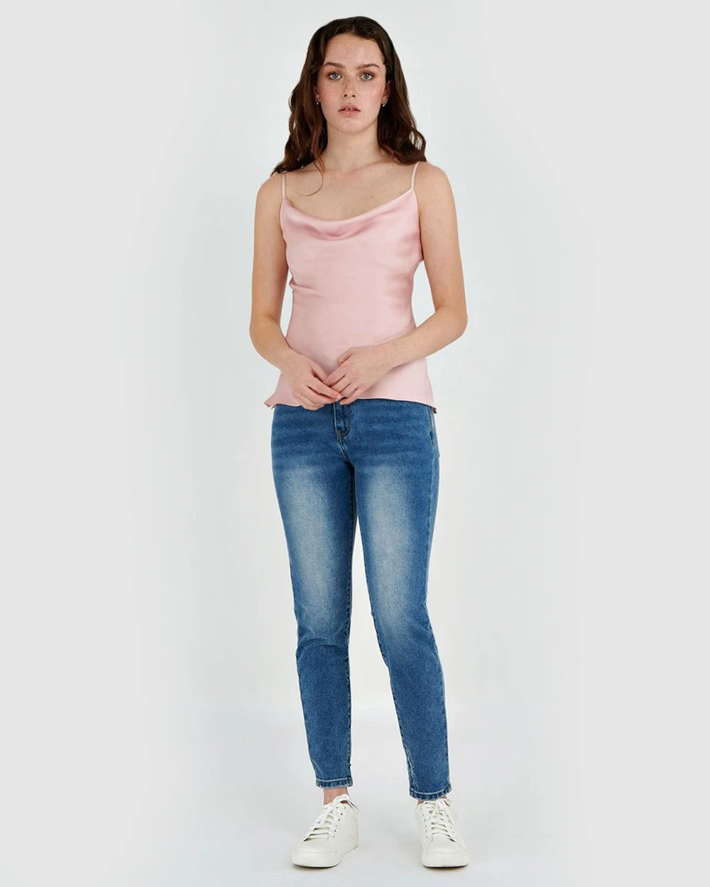 Refresh your style selection with the Jayla Cowl Neck Cami by Forcast. Made from lightweight lustres fabric, featuring cowl neckline in a relaxed fit making this the perfect transeasonal piece. For a chic and casual look, pair with a classic denim skinny jeans and finish with a nude heel or complete the set with the Jayla Slip Skirt.