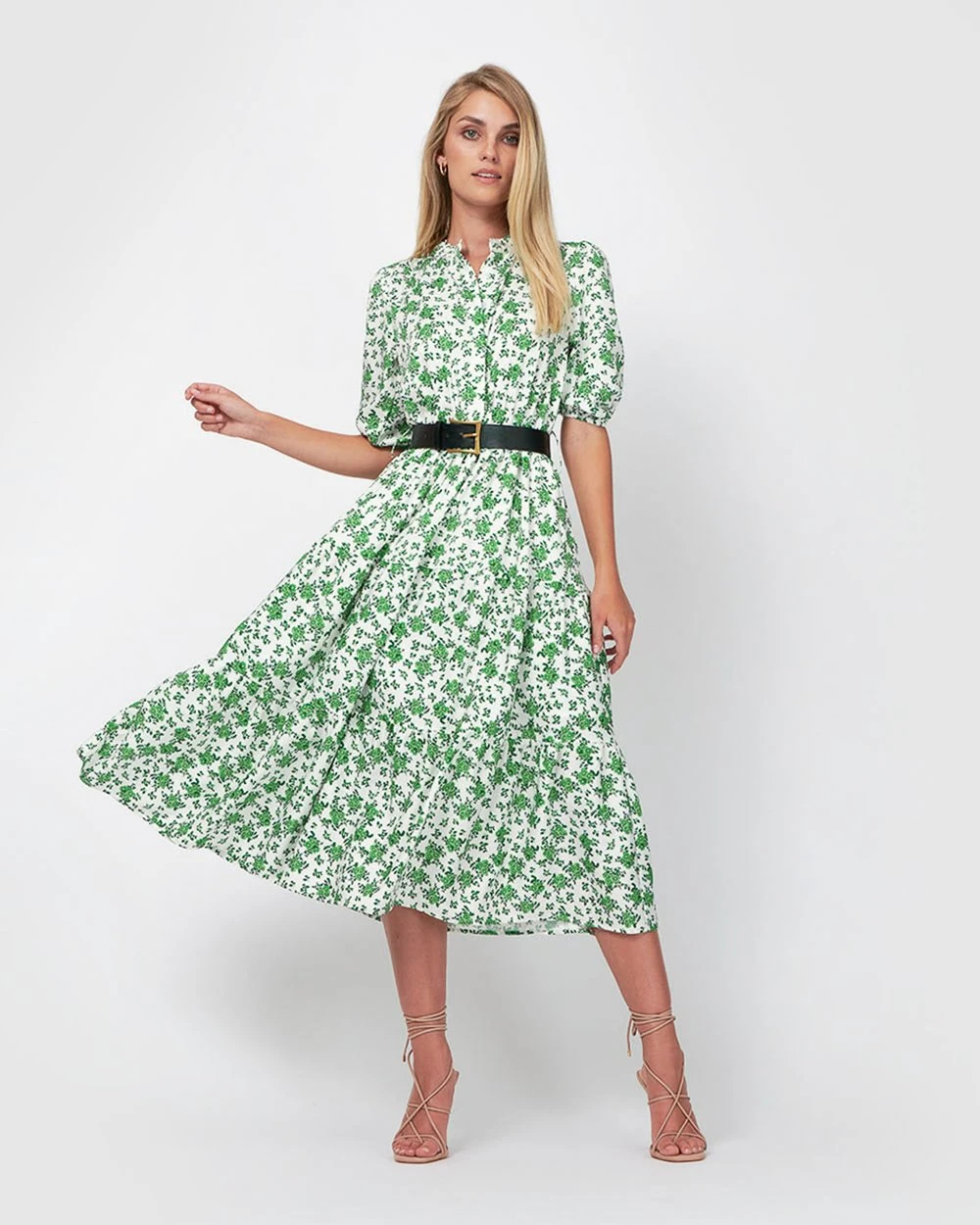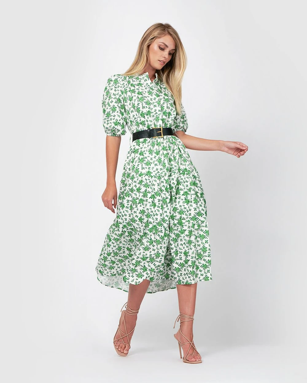 For a sweet summer look, the Joan Belted Dress by Forcast is the style you need. With a scatter of florals and feminine A-line silhouette that is cinched at the waist with a black belt, this style is the perfect pick for the weekend. Simply pair with strappy nude heels and matching clutch for those special occasions.
