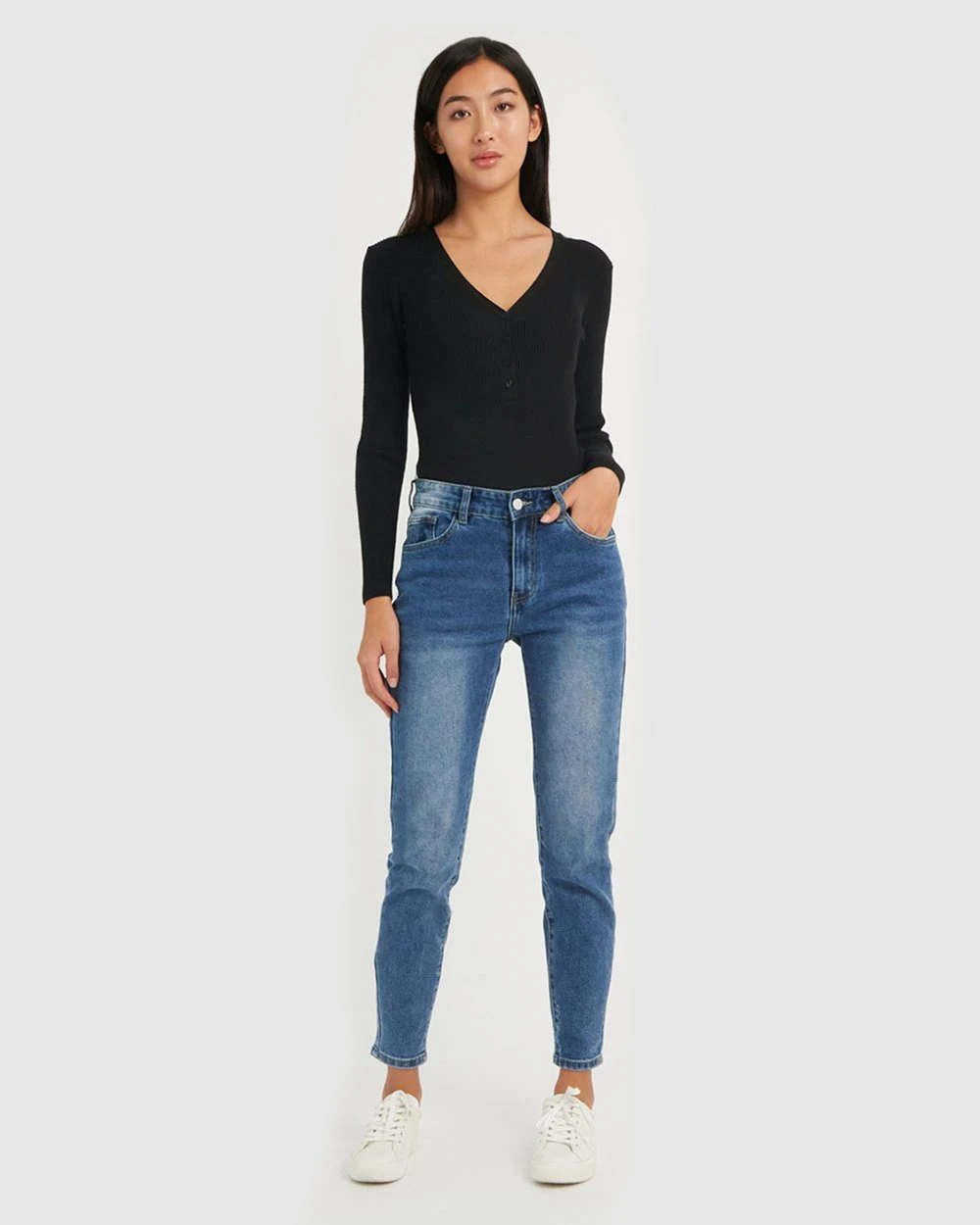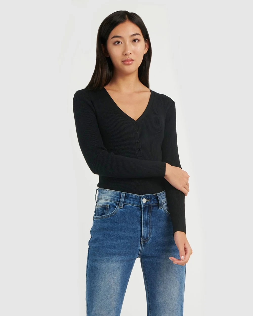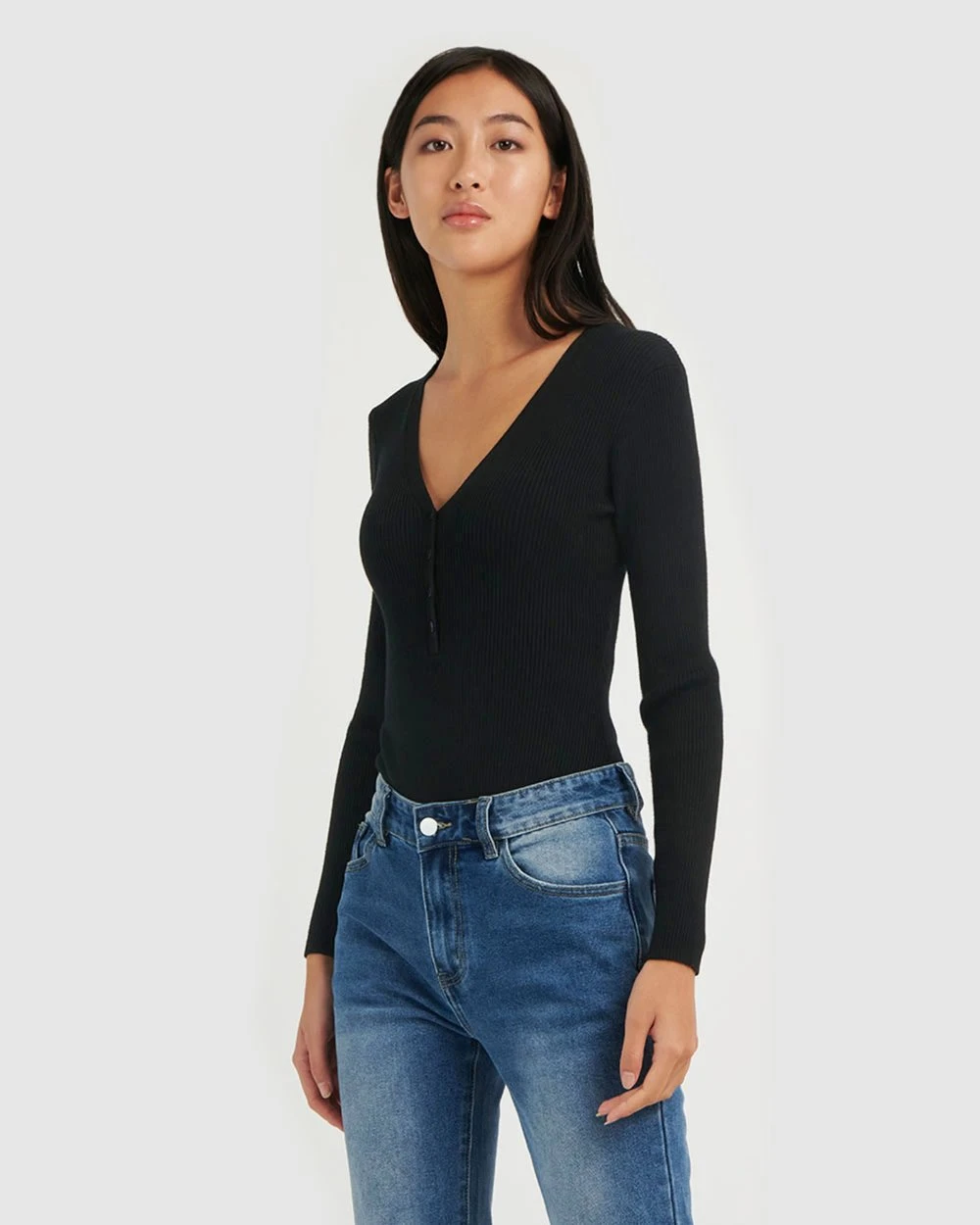 The Jocelynn Ribbed Bodysuit by Forcast is perfect for achieving a clean and classic look. This simple V-neck and long sleeve design will keep you warm and stay in place all day long. For a look to take you from work to the weekend, style it with your favourite A-line skirt and classic heels.