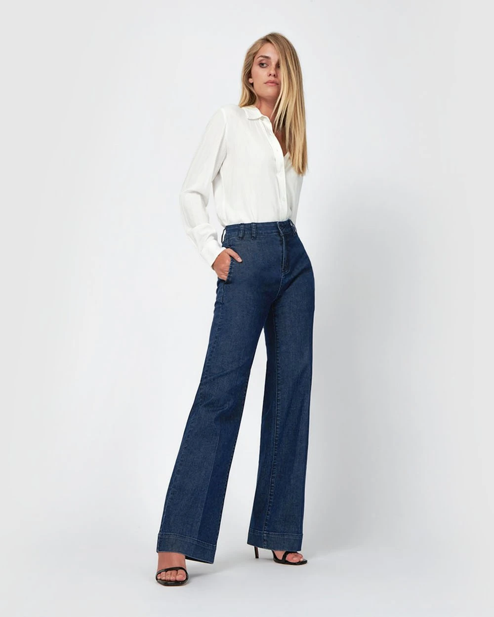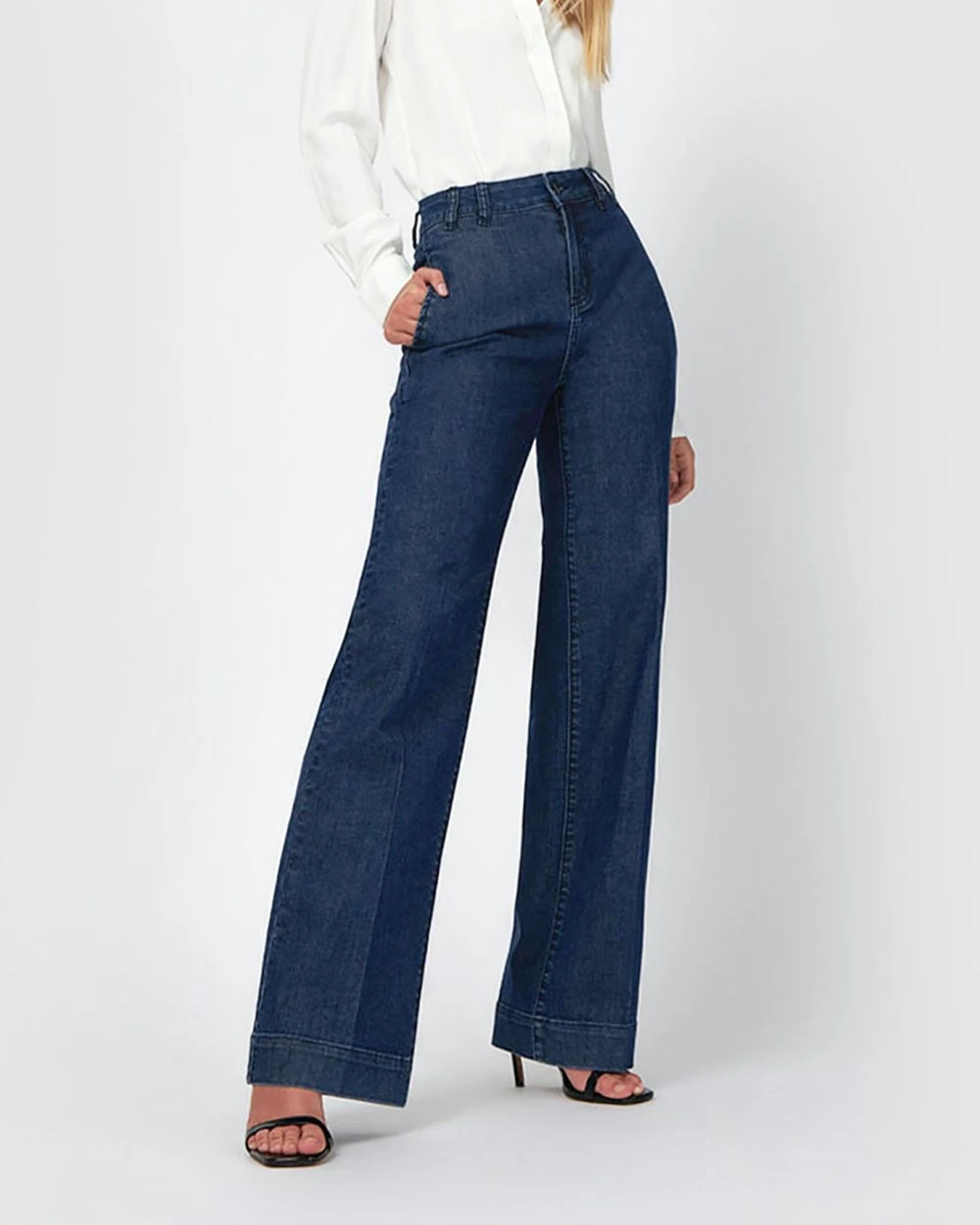 Satisfy your denim desires with the Joelene Wide Leg Jeans by Forcast. With a rich indigo wash, high waist and wide leg silhouette, these jeans are highly versatile and perfect for any day of the week. For a fresh and casual chic look, tuck in a relaxed top and finish with nude mules.