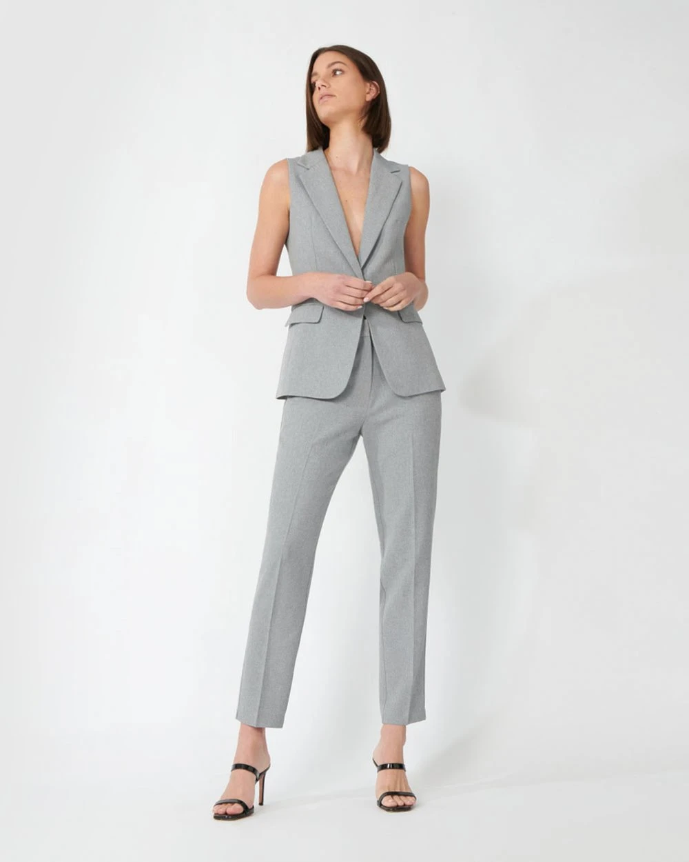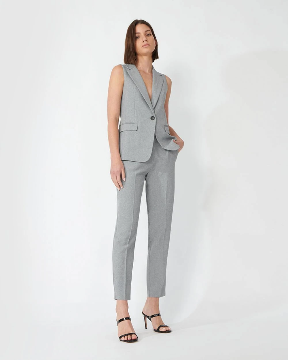 Keep your look in check with the Kamila Vest Jacket by Forcast and give your corporate closet an update. A contemporary update on a classic look, this design is guaranteed to have you looking sophisticated and professional on any day of the week. Pair it with the matching Kamila Slim Pants and simple pumps to finish the look.