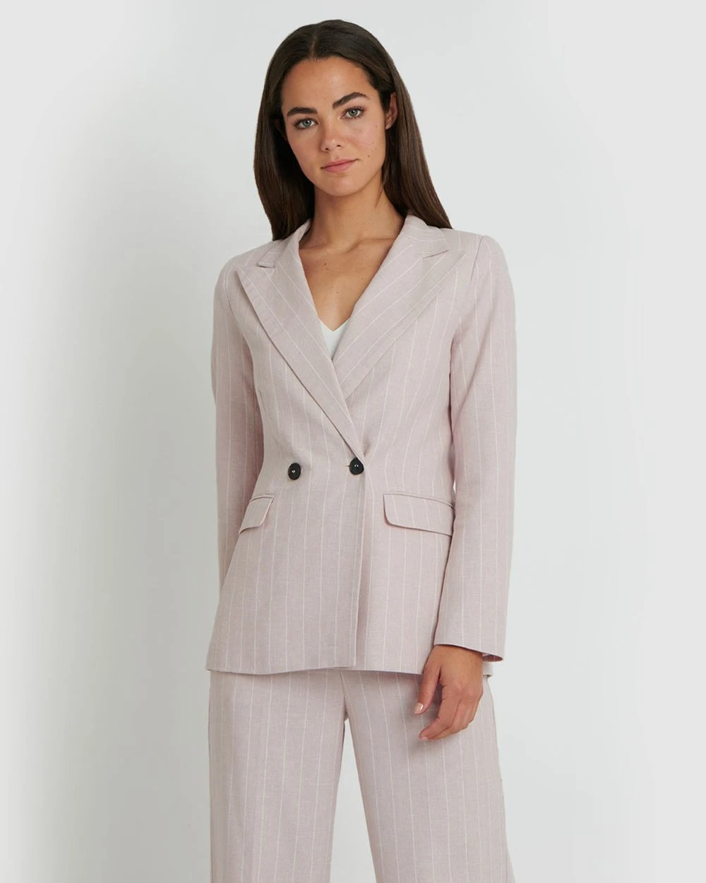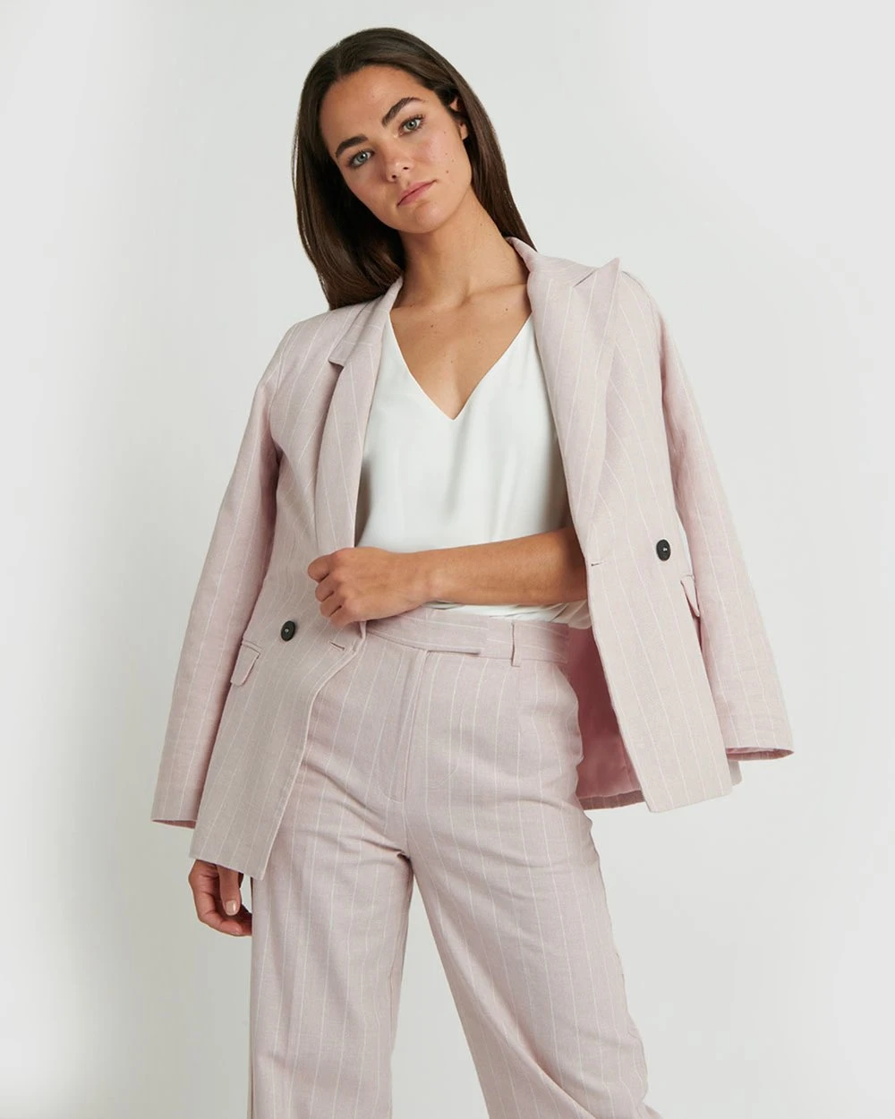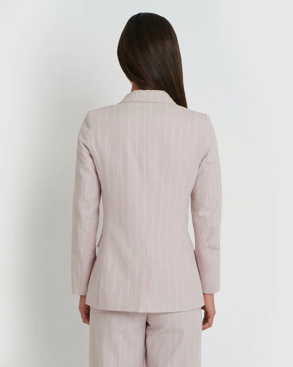 Breathe easy in the Katarina Pinstripe Jacket by Forcast, and achieve an effortless style to take you from desk to dinner. Featuring cotton and linen blend fabrication that will keep you feeling and looking naturally cool all season. For a classy finish, wear it over a fitted basic and jeans for a casual day out. Complete the matching set with the Katarina Pinstripe Pants or Katarina Pinstripe Shorts.