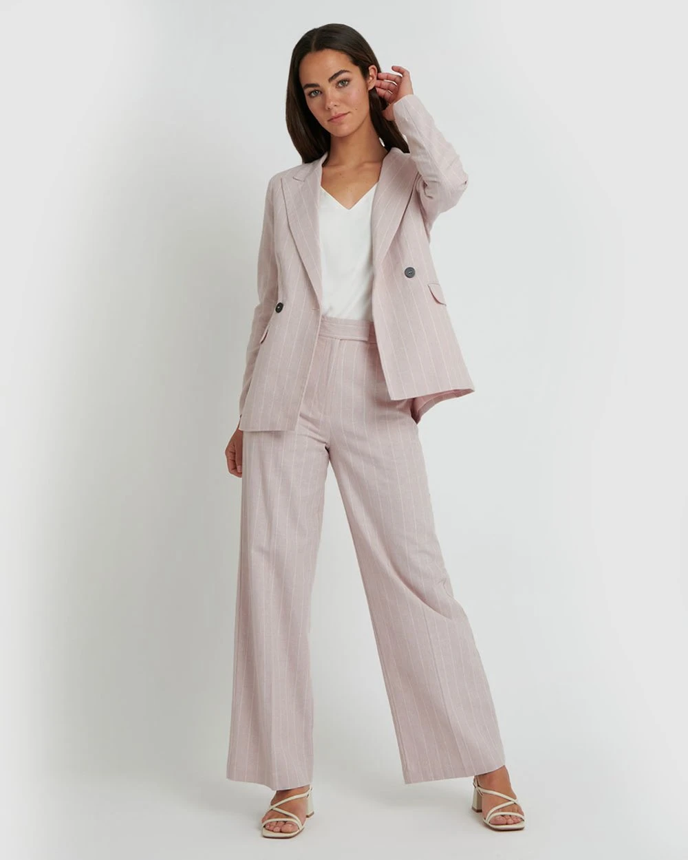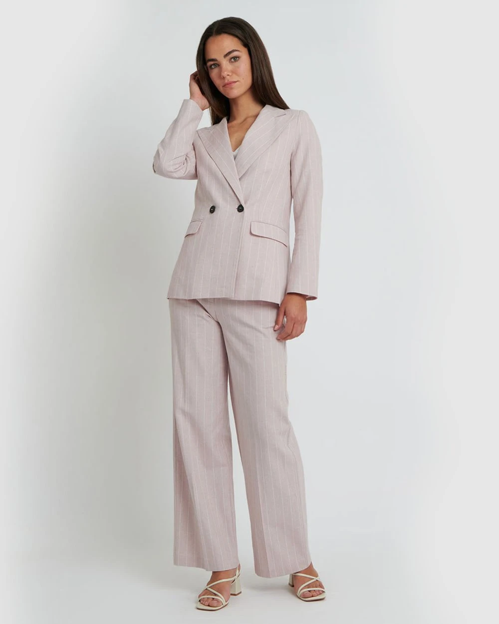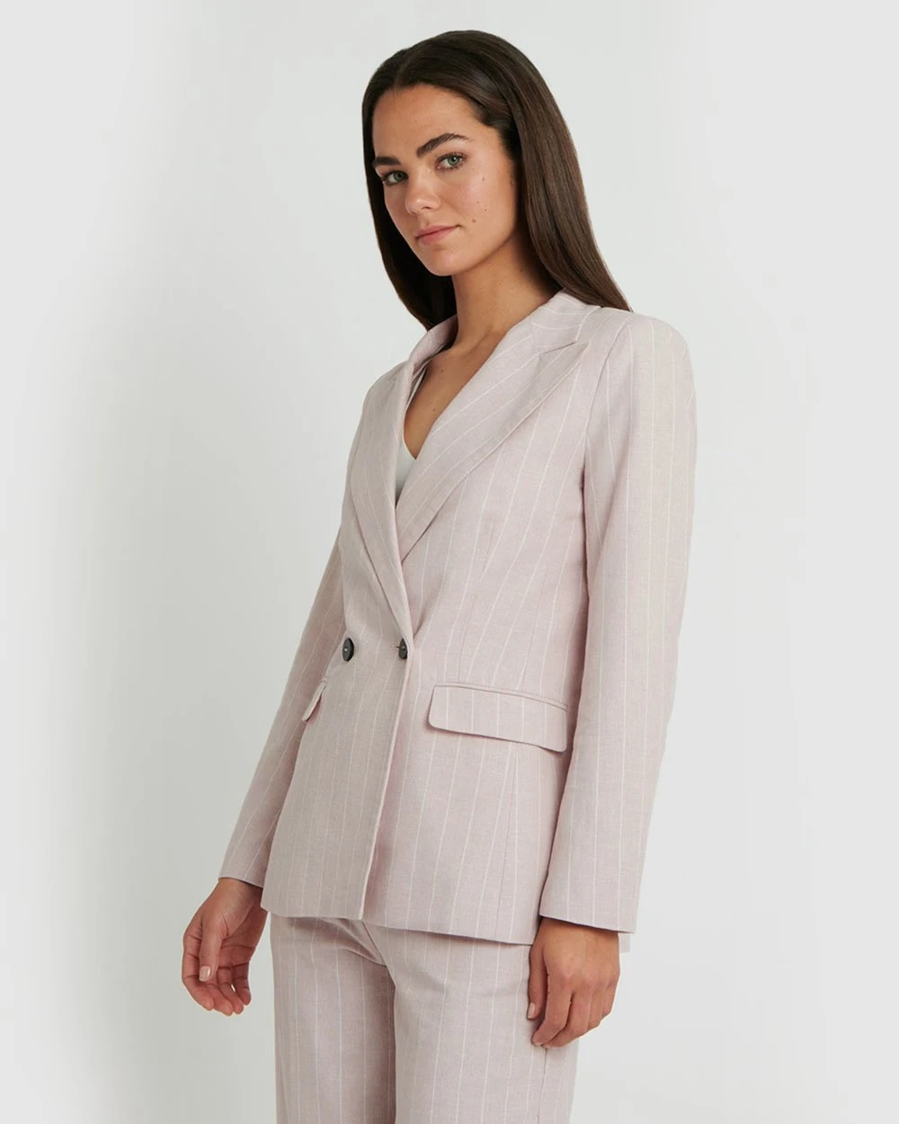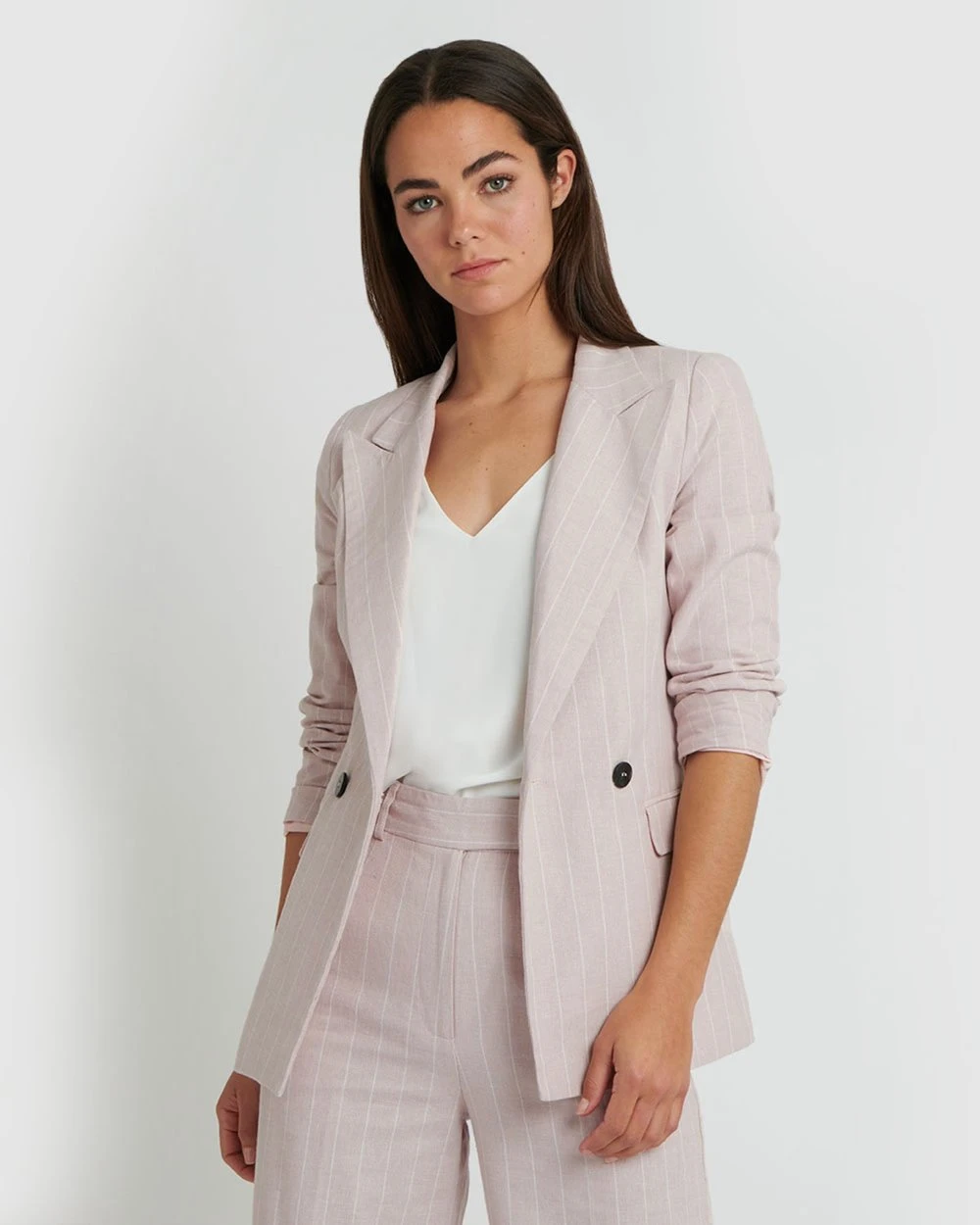 Breathe easy in the Katarina Pinstripe Jacket by Forcast, and achieve an effortless style to take you from desk to dinner. Featuring cotton and linen blend fabrication that will keep you feeling and looking naturally cool all season. For a classy finish, wear it over a fitted basic and jeans for a casual day out. Complete the matching set with the Katarina Pinstripe Pants or Katarina Pinstripe Shorts.