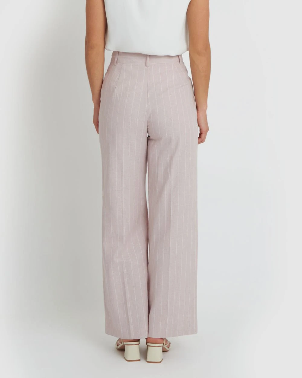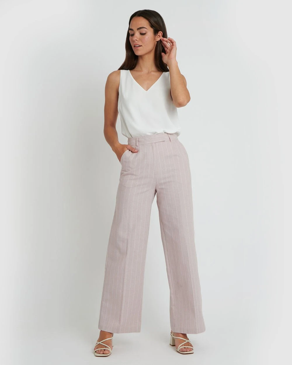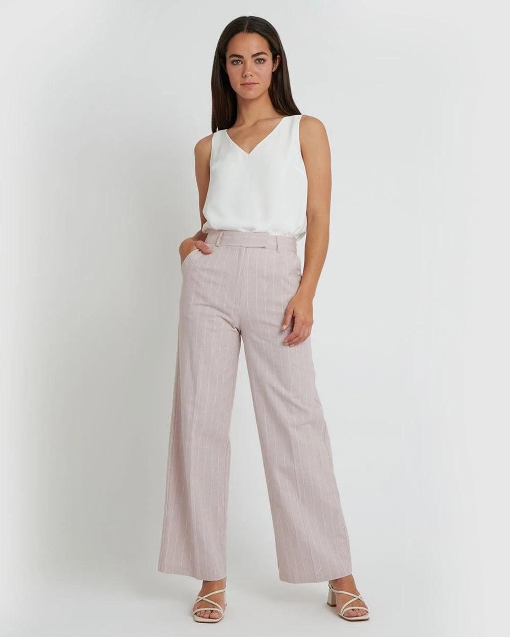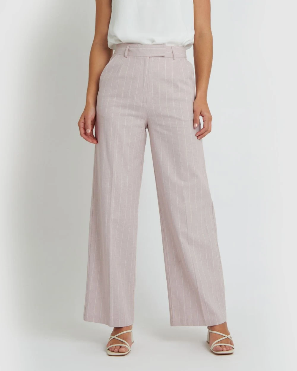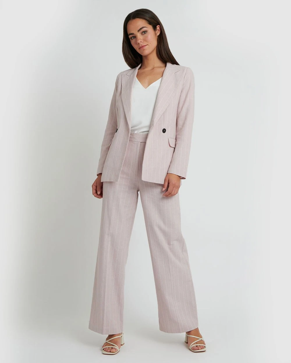The Katarina Pinstripe Pants by Forcast are a season staple with its minimal detail and pinstripe print. Style this high waisted and wide leg style with a simple blouse and strappy heels for a classy and chic look to take you from desk to dinner with ease. Complete the matching set with the Katarina Pinstripe Jacket.