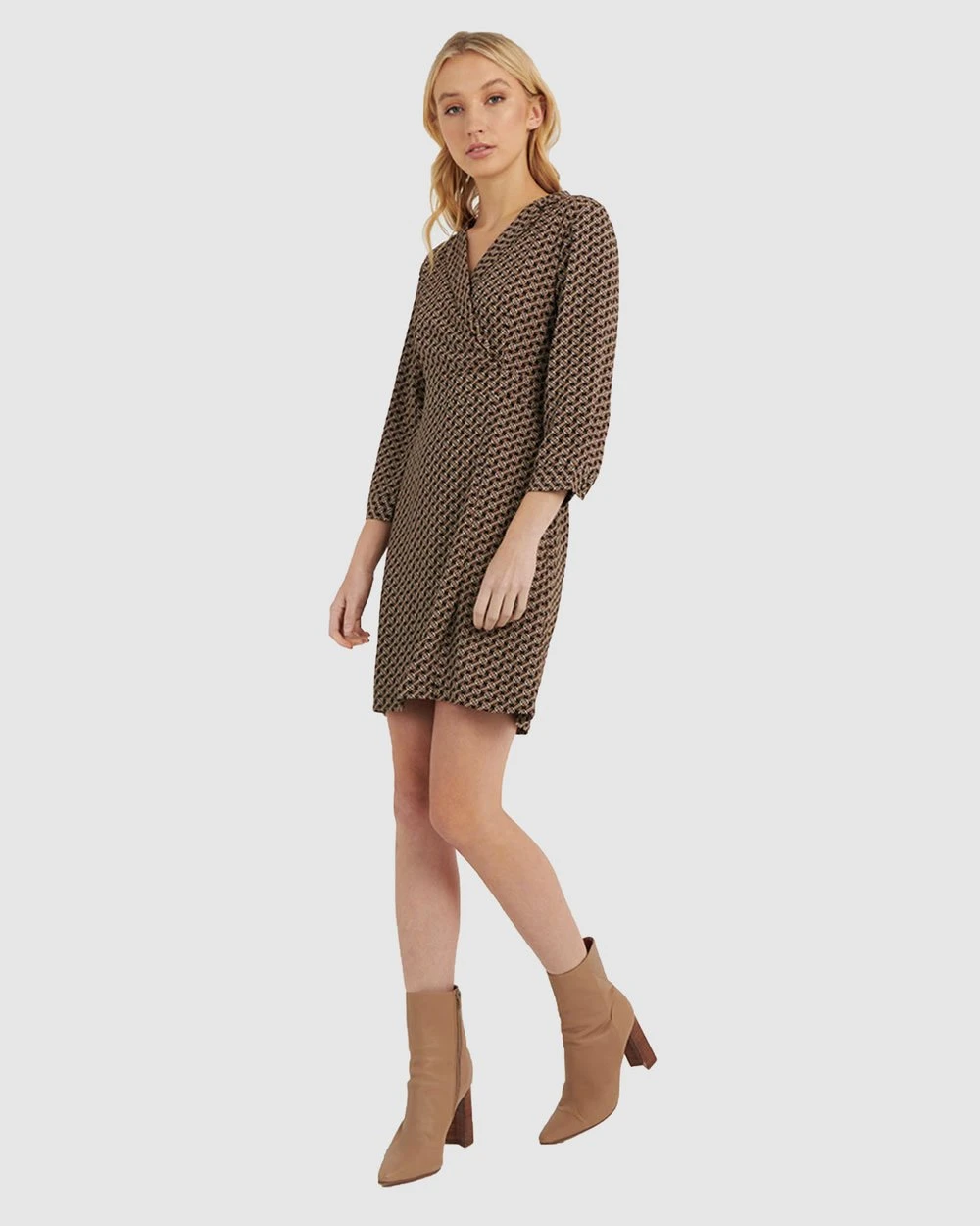 Make a bold move with the Lara Collared Print Dress by Forcast. A fun and feminine piece featuring crossover front and A-line silhouette with front thigh split. Style this70s inspired print dress with a pair of simple wedges for a causal and charming outfit.
