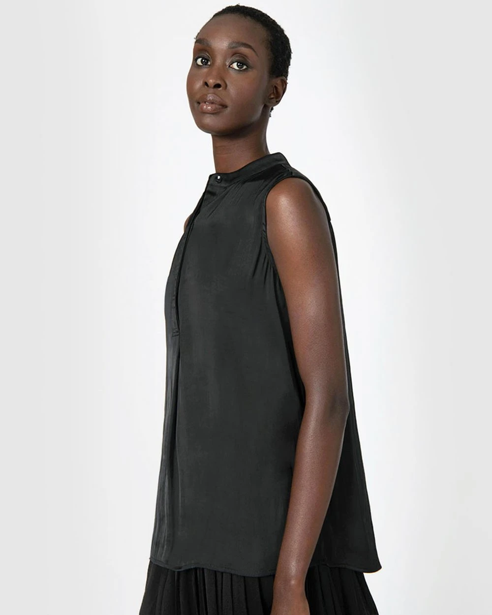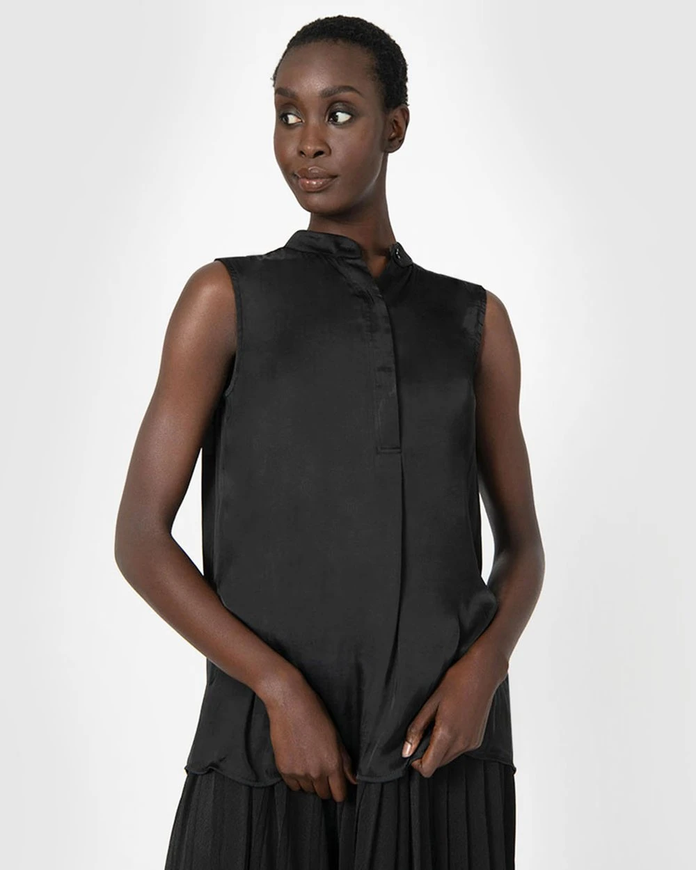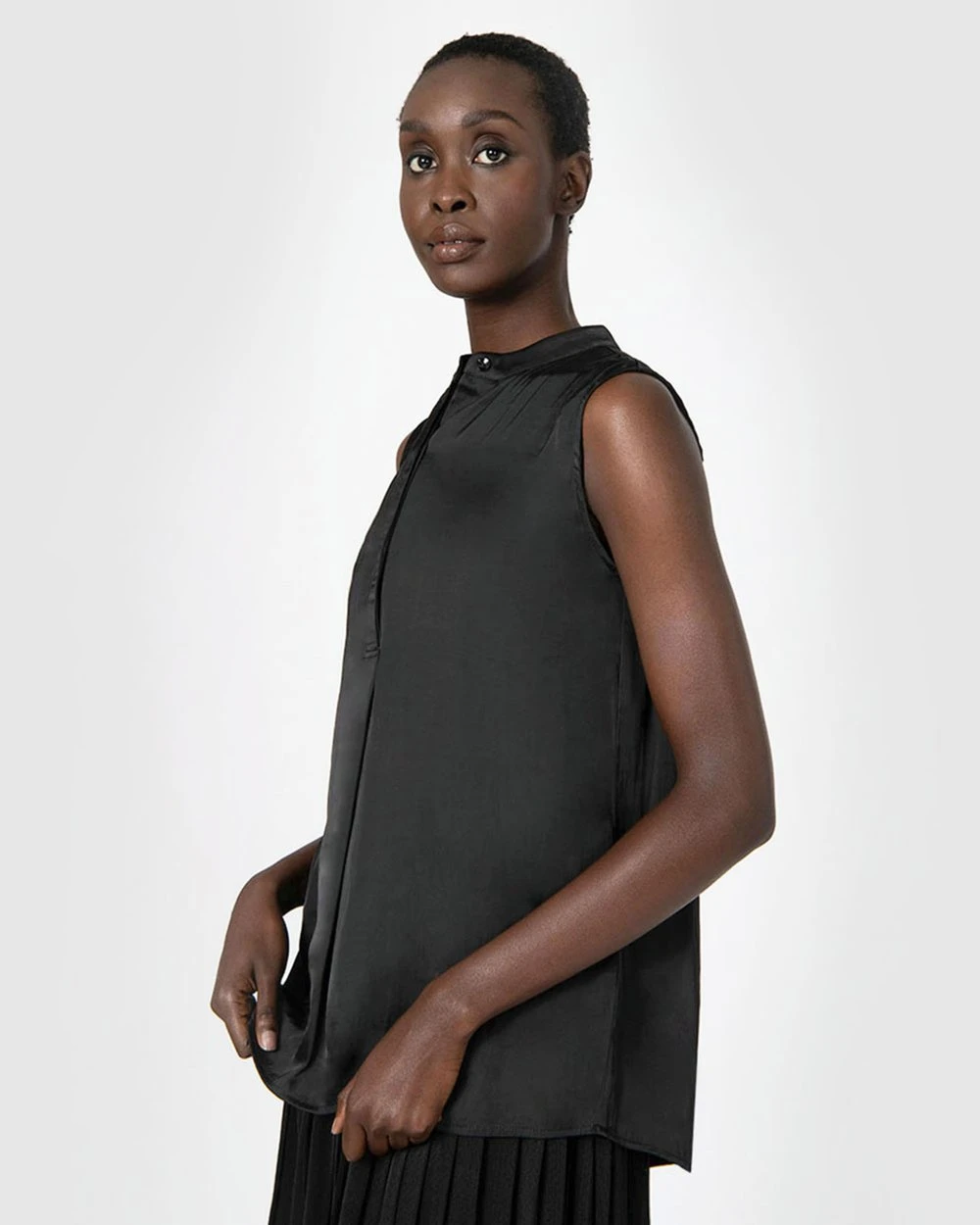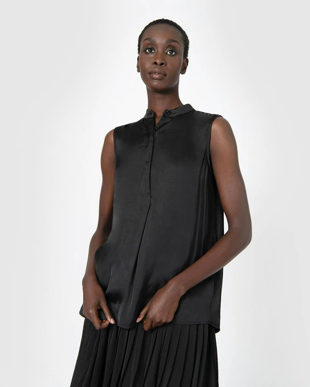 The Lourdes Sleeveless Top by Forcast is the modern must-have this season. Designed in a sleeveless and soft satin shine fabric making it lightweight, this style makes work to weekend elegance simple. Wear it with slim pants and simple heels for a finished look.