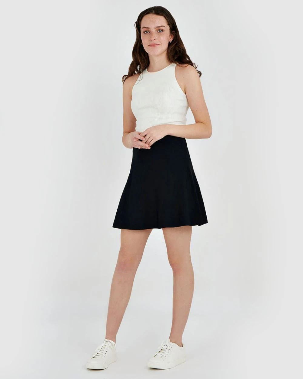 The Maiya A- Line Knit Skirt by Forcast is a spring must-have, and will take you from day to night with ease. The A-line design makes it diversely flattering and will have you looking classy and chic through a full schedule. Tuck in a blouse and finish off with pointed pumps for a balanced look.