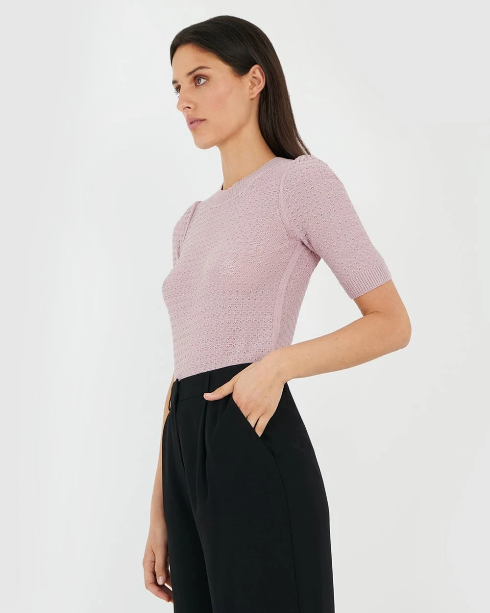 Forcast Marie Puff Sleeve Knit Top Mauve