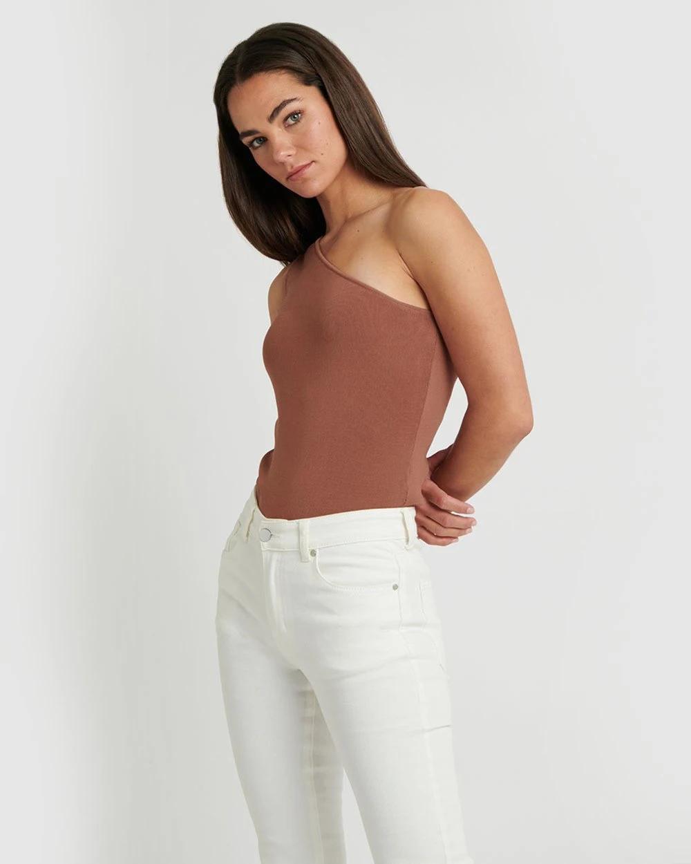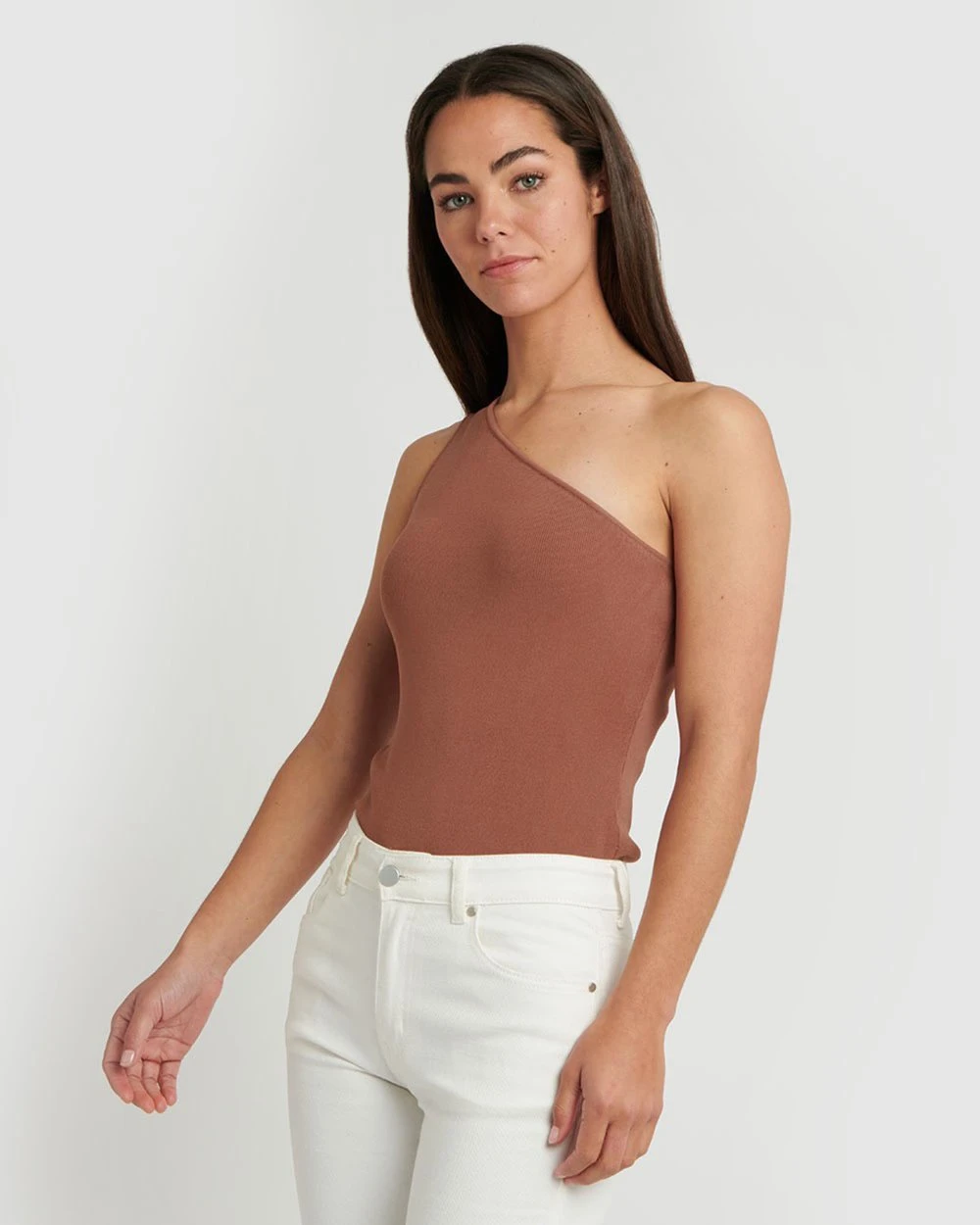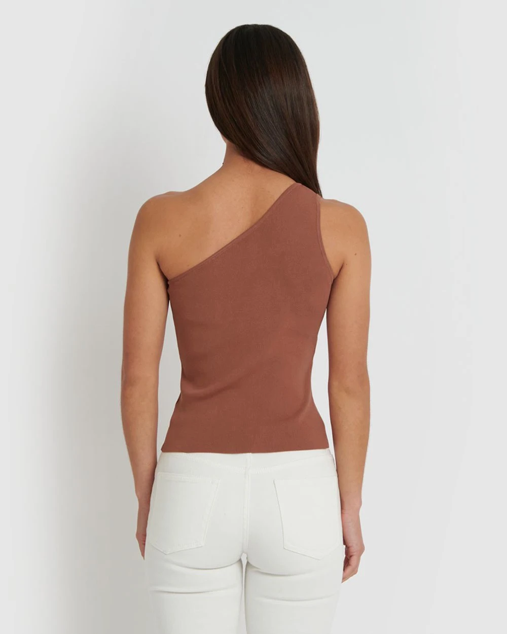 Forcast Marissa One Shoulder Knit Top Rustic Brown