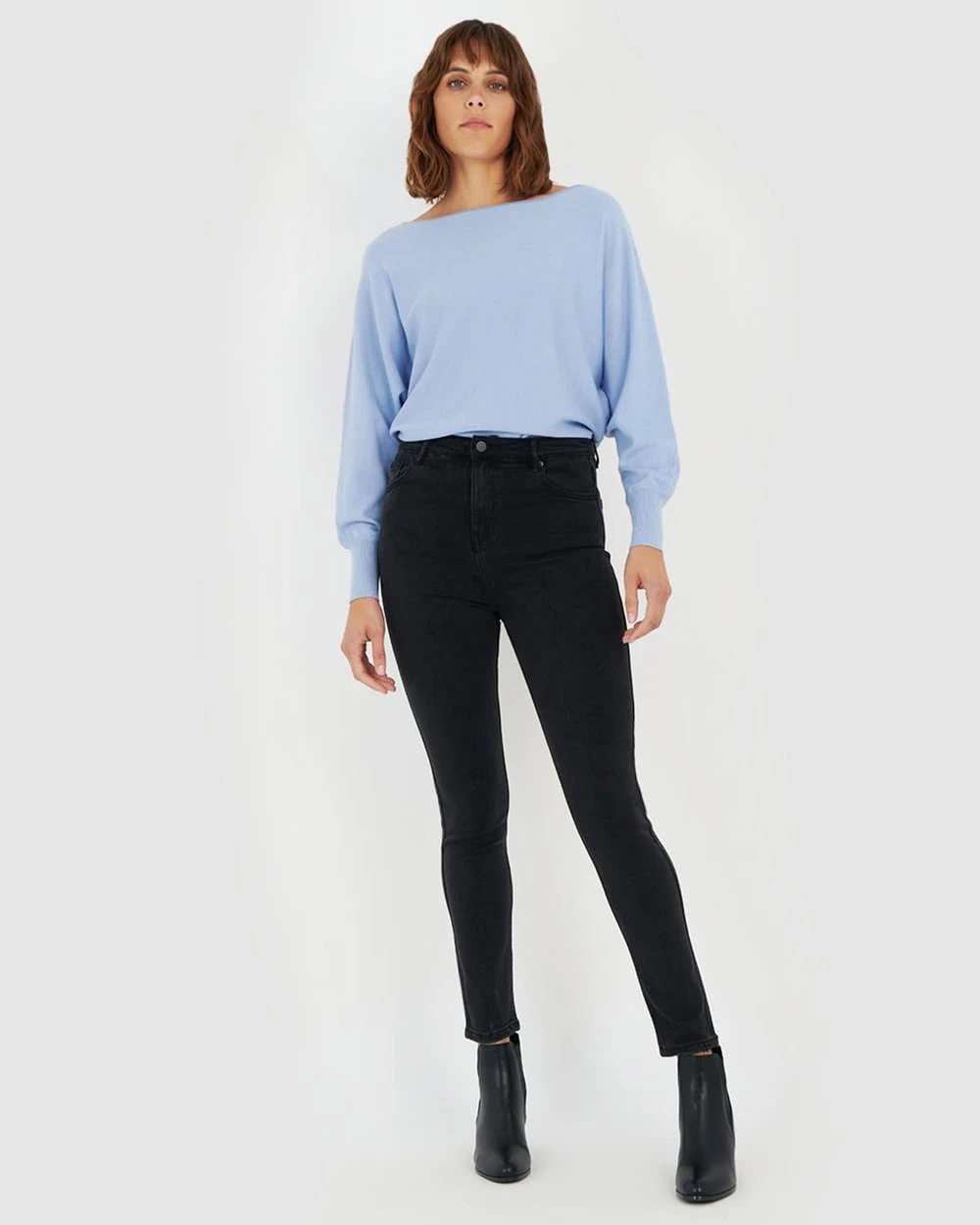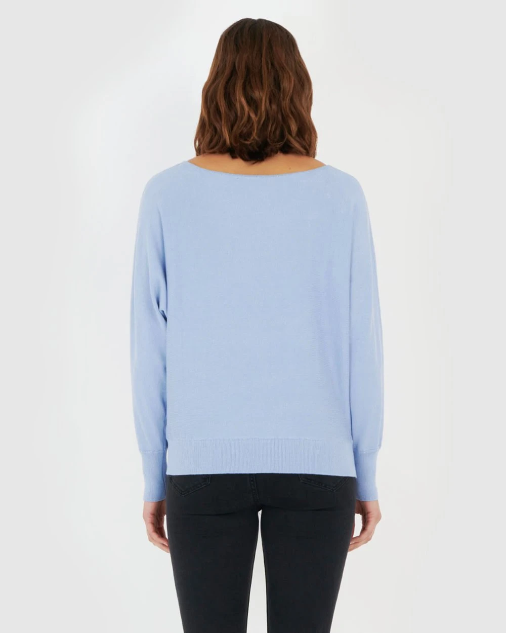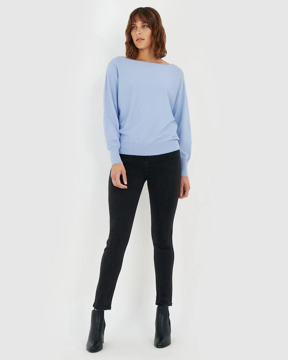 The Maxine Boat Neck Knit by Forcast is sure to be a new season favourite. Featuring boatneck line with batwing sleeves in and relaxed silhouette knit. For a cosy chic look to take you from work to the weekend, style it with classic slim pants and heels.