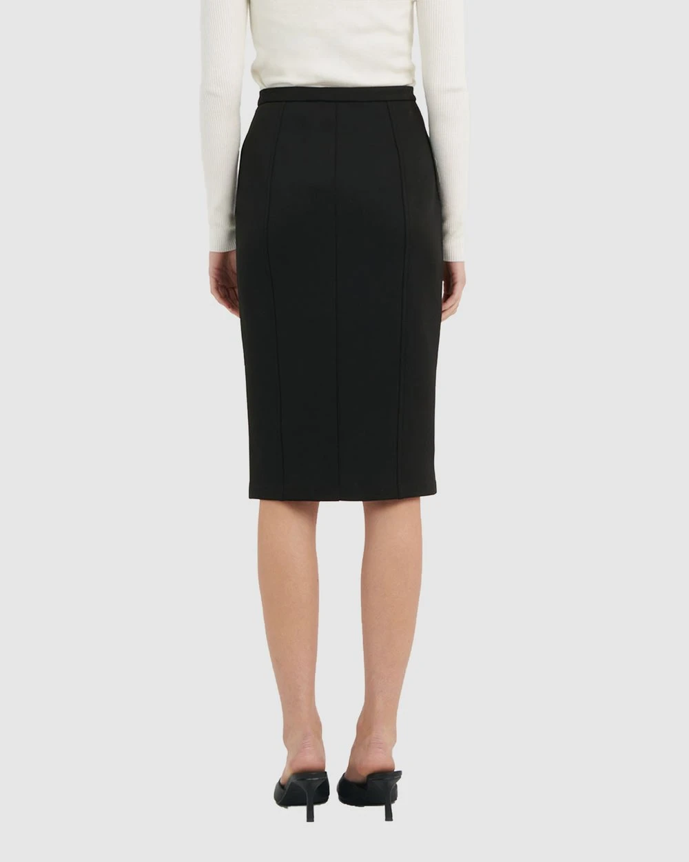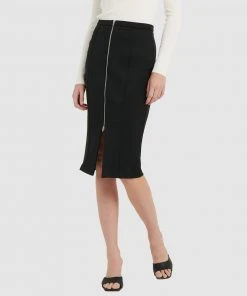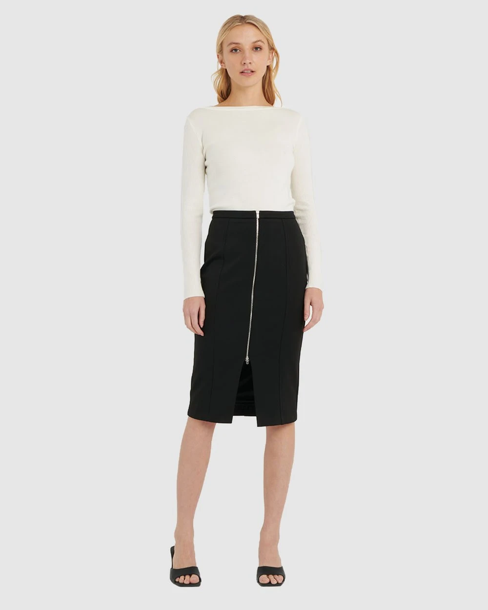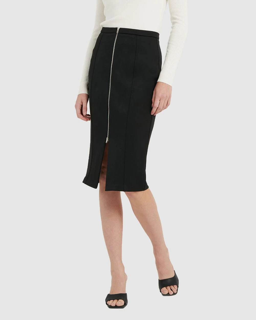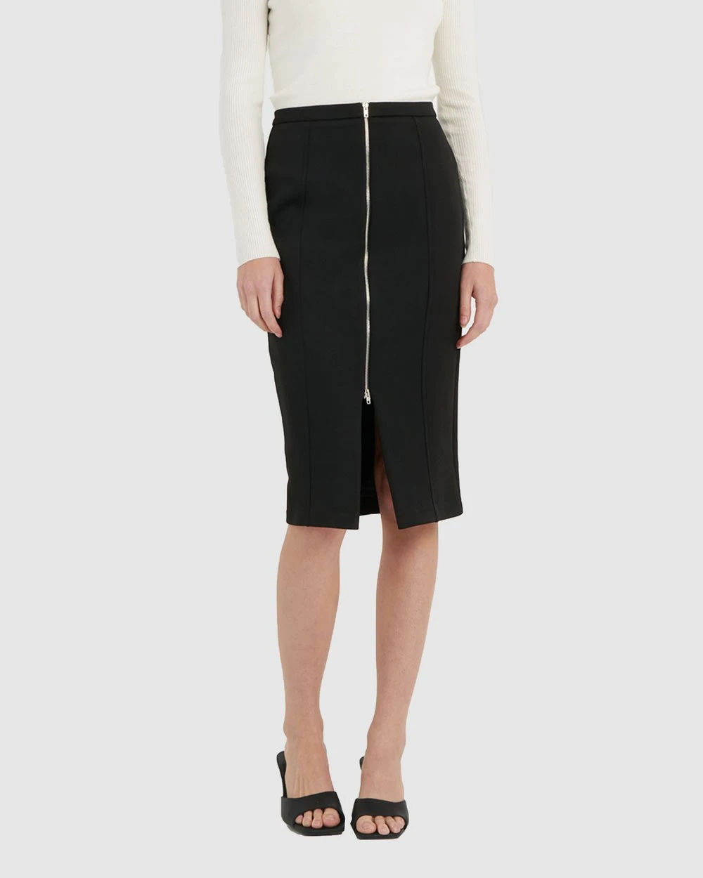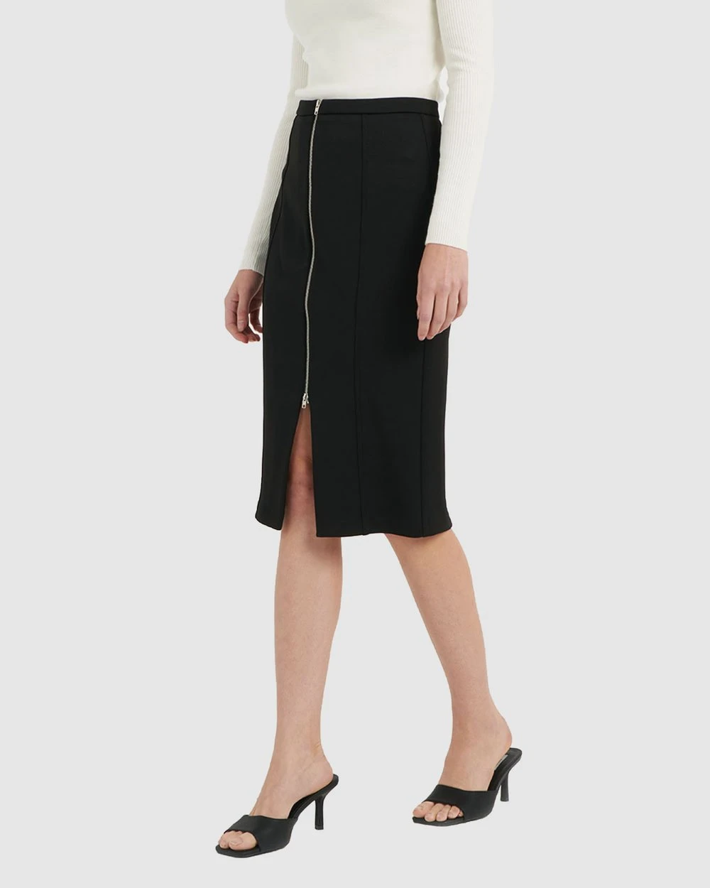 Add a little edge to your outfit with the Mila Pencil Skirt by Forcast. A modern spin to the classic pencil skirt featuring exposed front zip fastening with functional two-way zip, an ideal piece to ramp up any wardrobe. For the perfect back-to-work look, pair with a simple classic top for a sharp and sophisticated look.