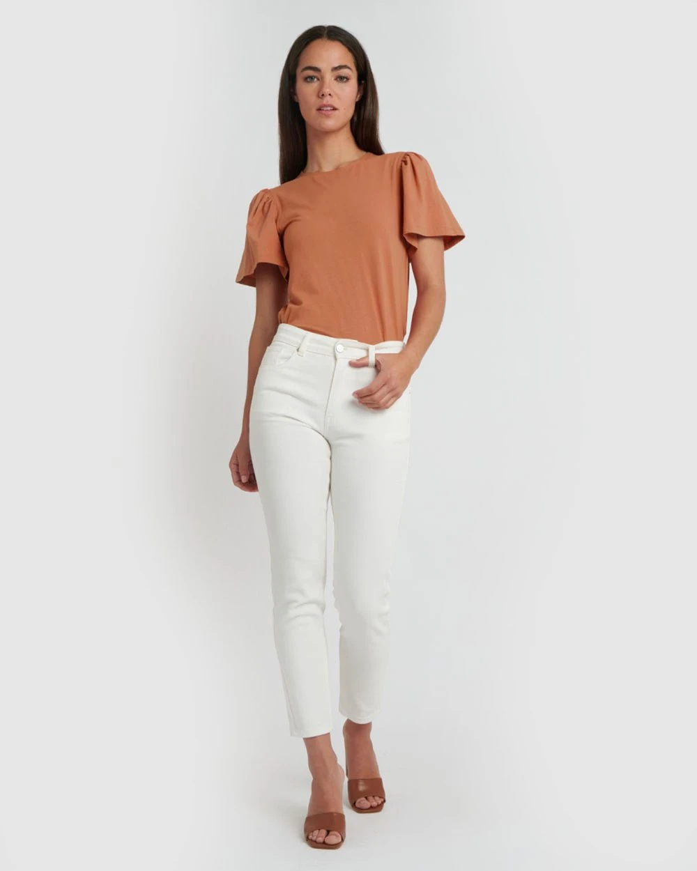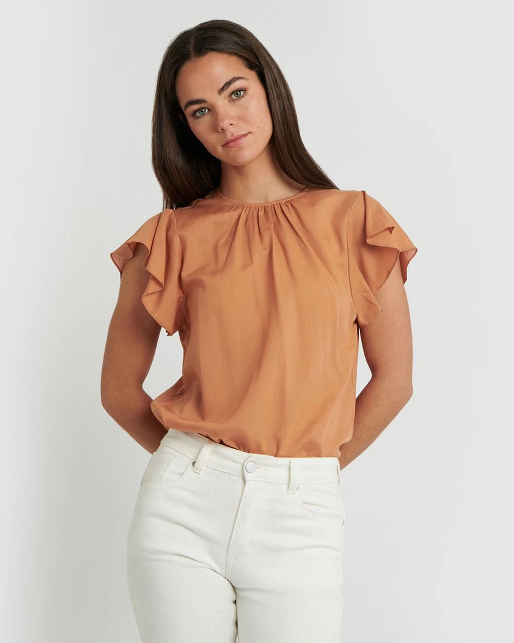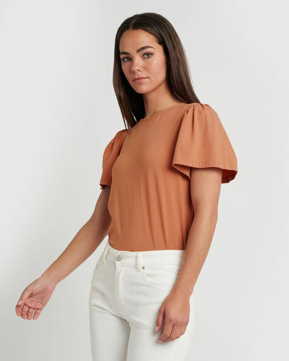 Forcast Mona Flutter Sleeve Top Deep Tan