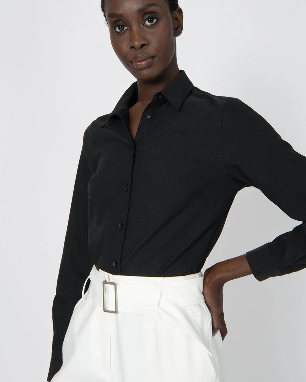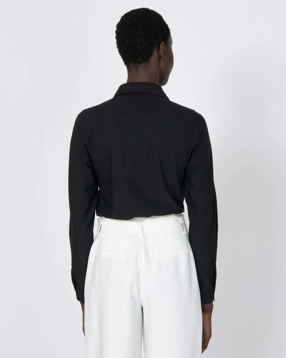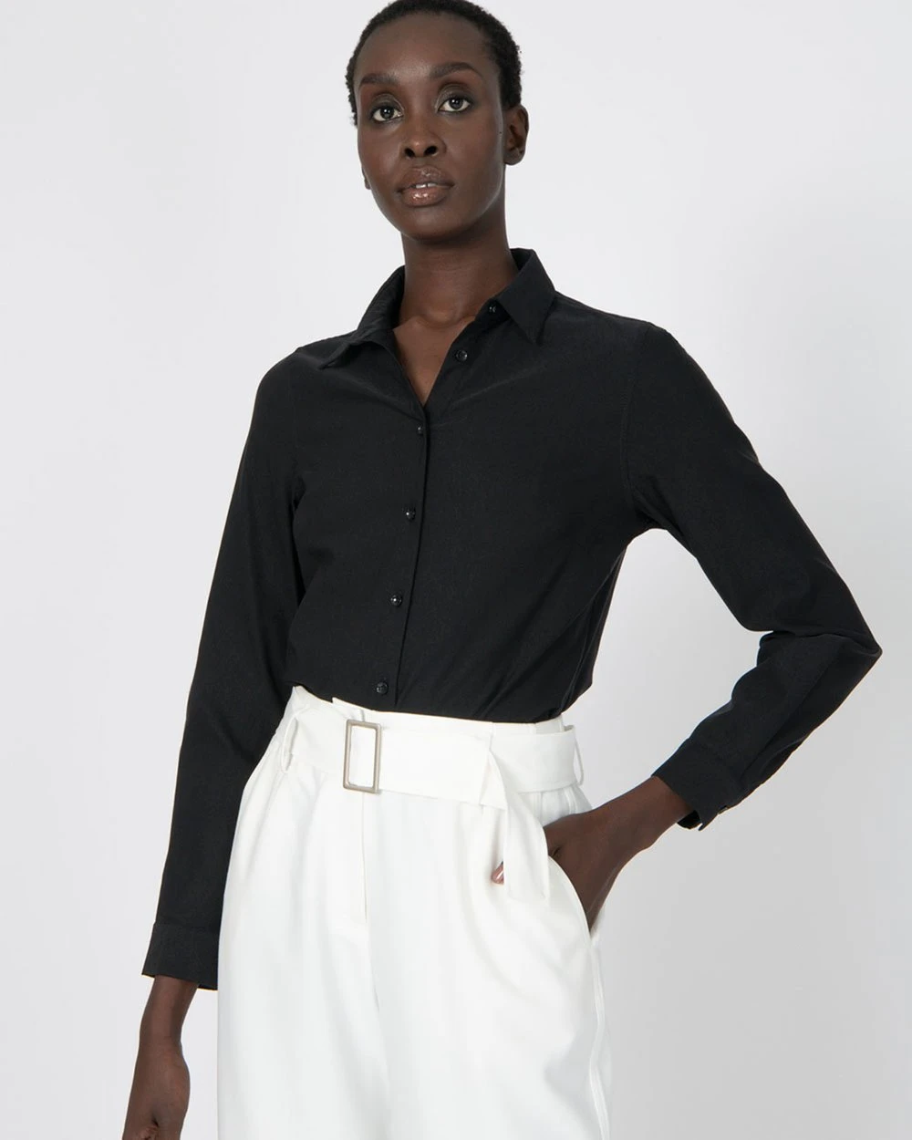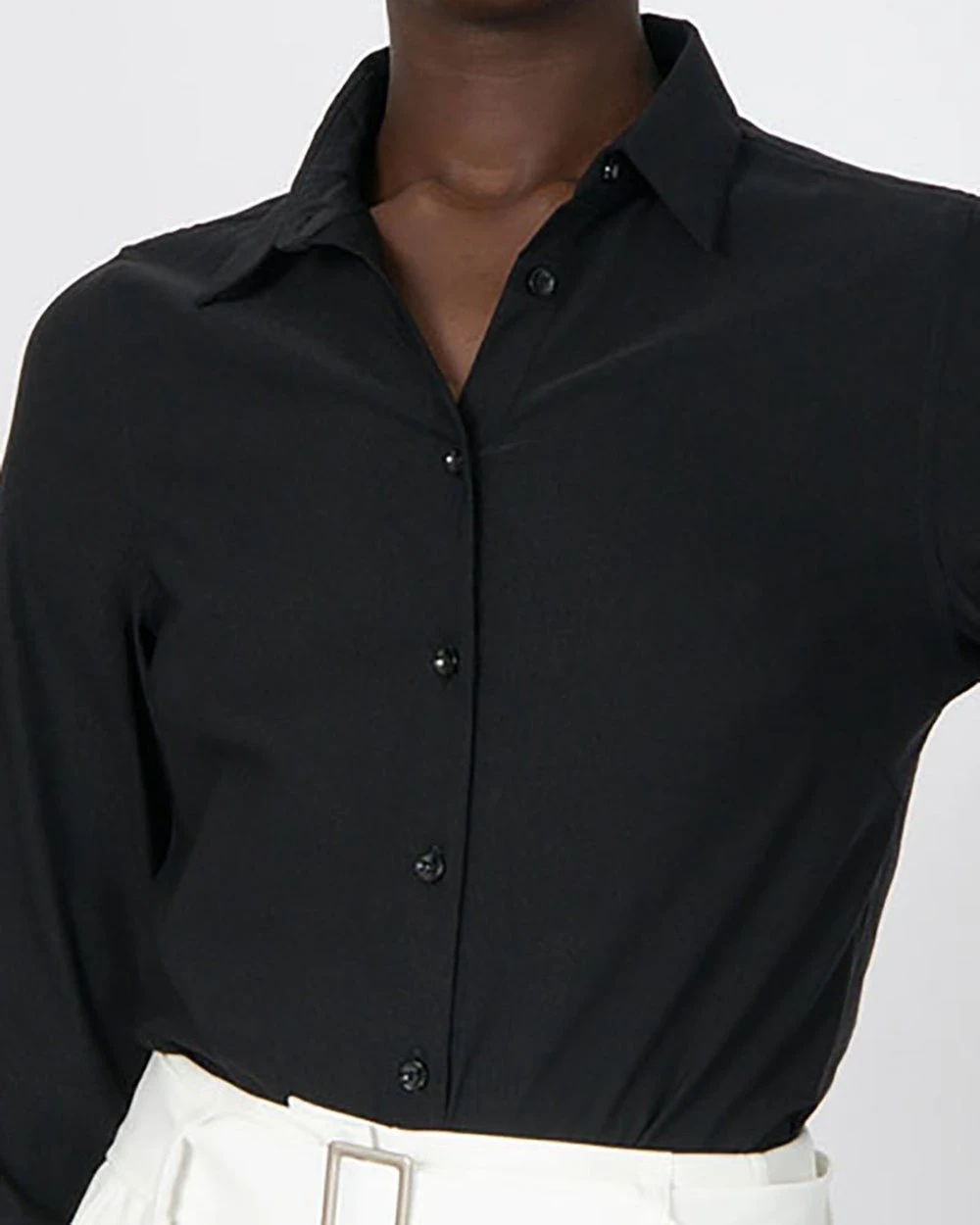 – Long sleeves featuring cuffs with button fastening