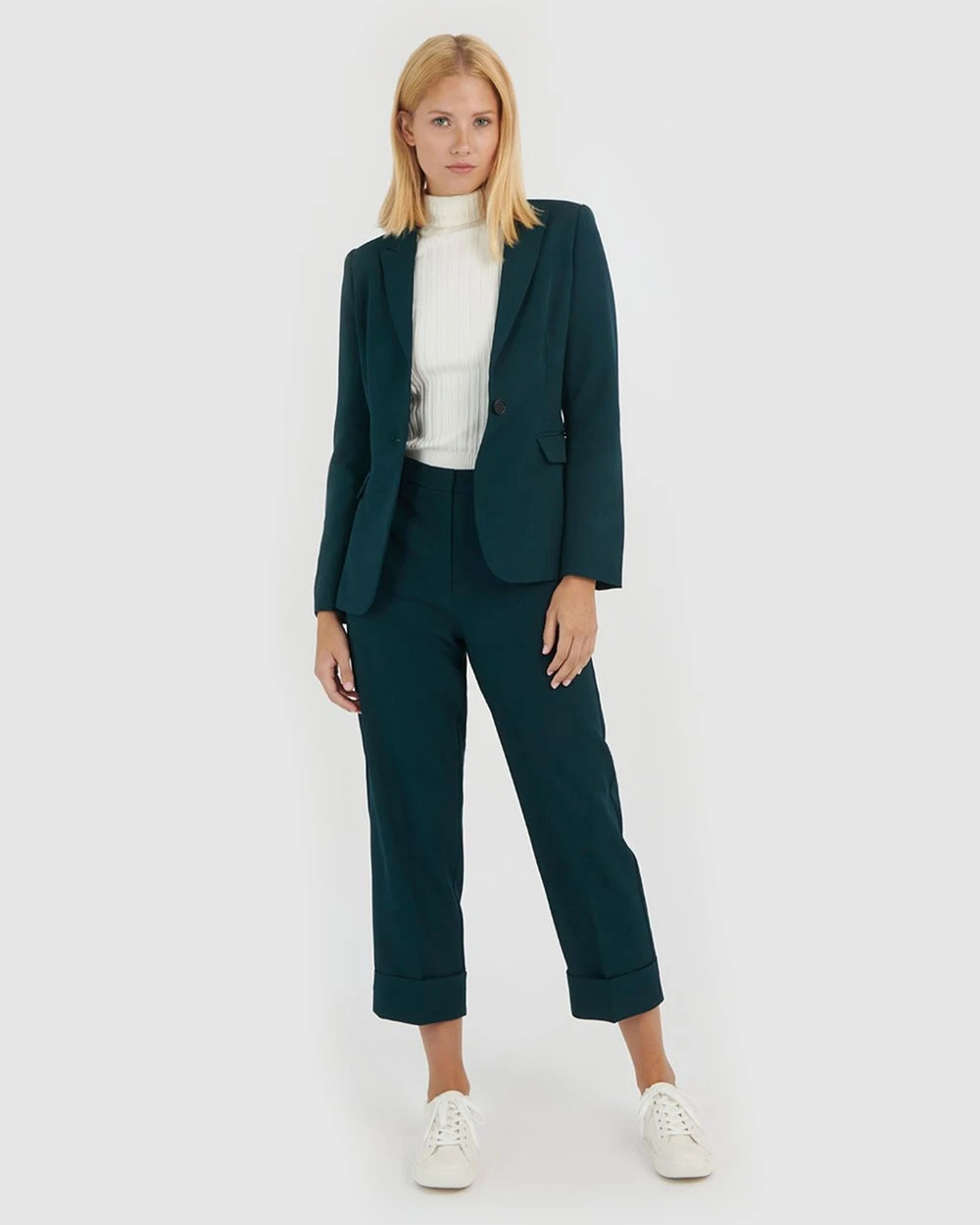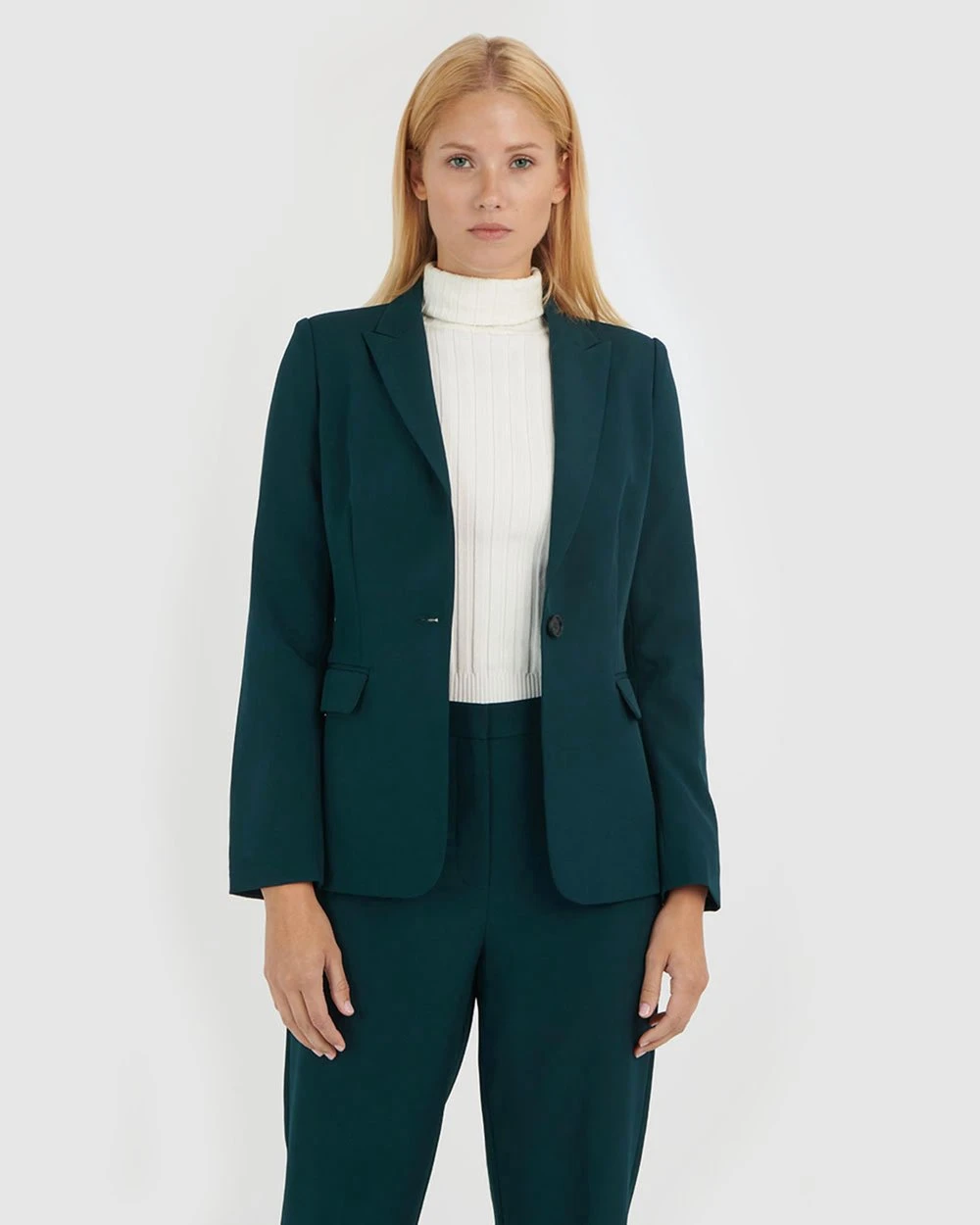 Dress for success with the Nikita Single Breasted Blazer by Forcast. Offering a defined tailored fit silhouette, featuring peak lapel collar and double welt pockets, it will effortlessly take you from desk to dinner. Pair with the Nikita Straight Trousers for a classic suit set with a twist.