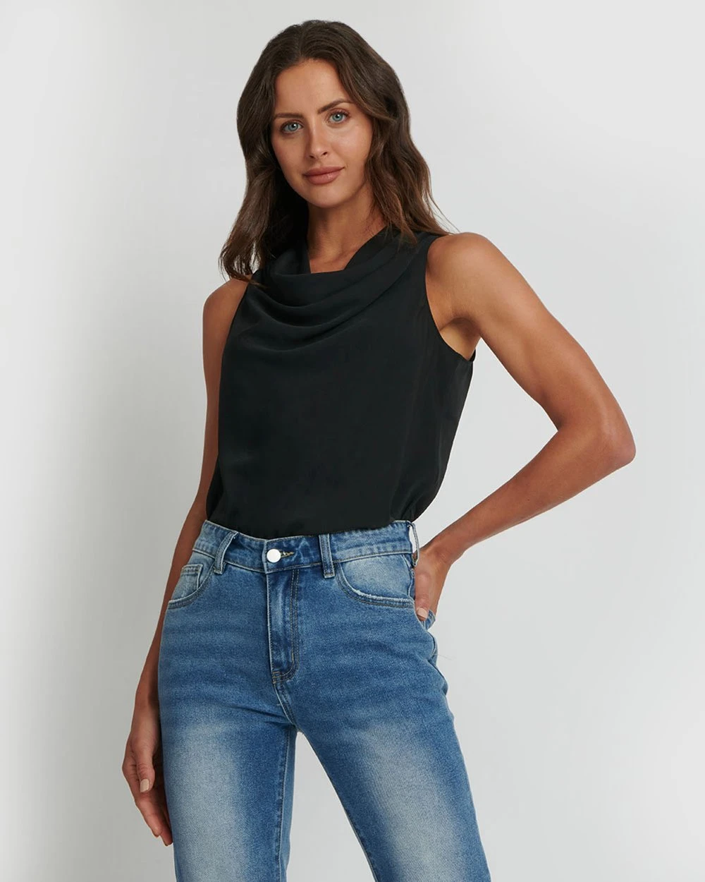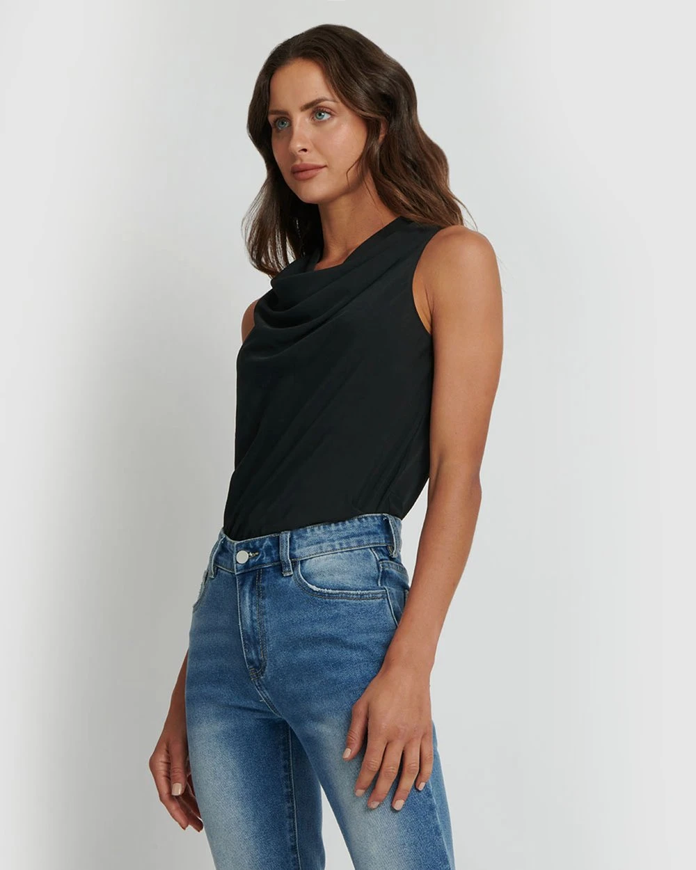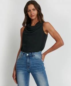 Forcast Nora Drape Neck Top Black