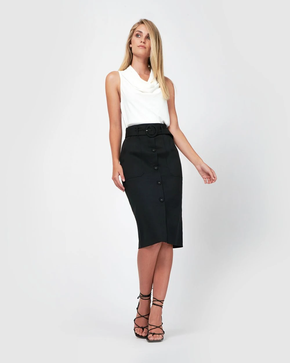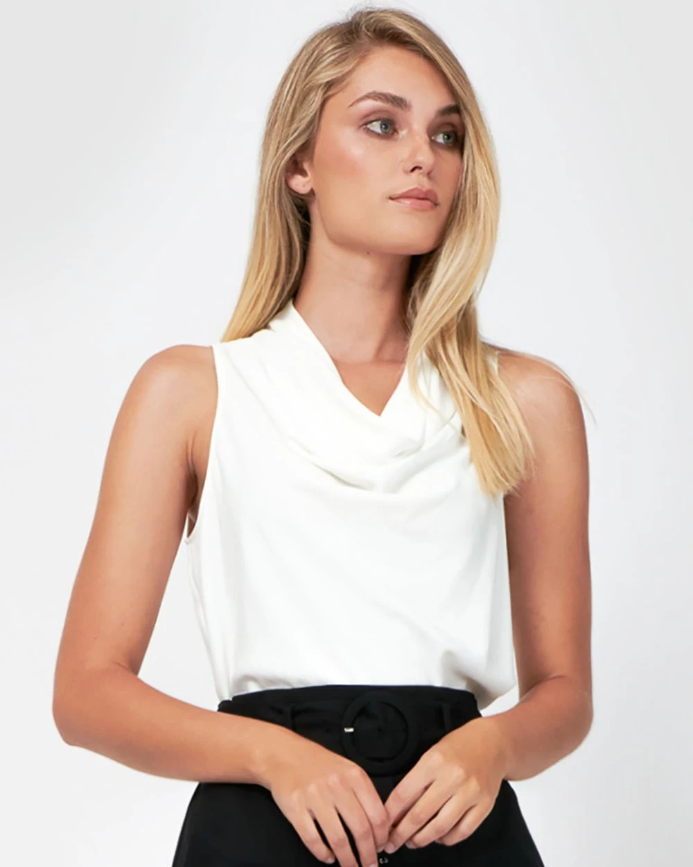 Combining simplicity and sophistication in one design, the Nora Drape Neck Top by Forcast is a must-have this season. Designed with a simple drape neckline in a silky satin fabrication that will elevate any look. Achieve that casual chic finish and wear it with your favourite pair of skinny jeans and strappy heels.