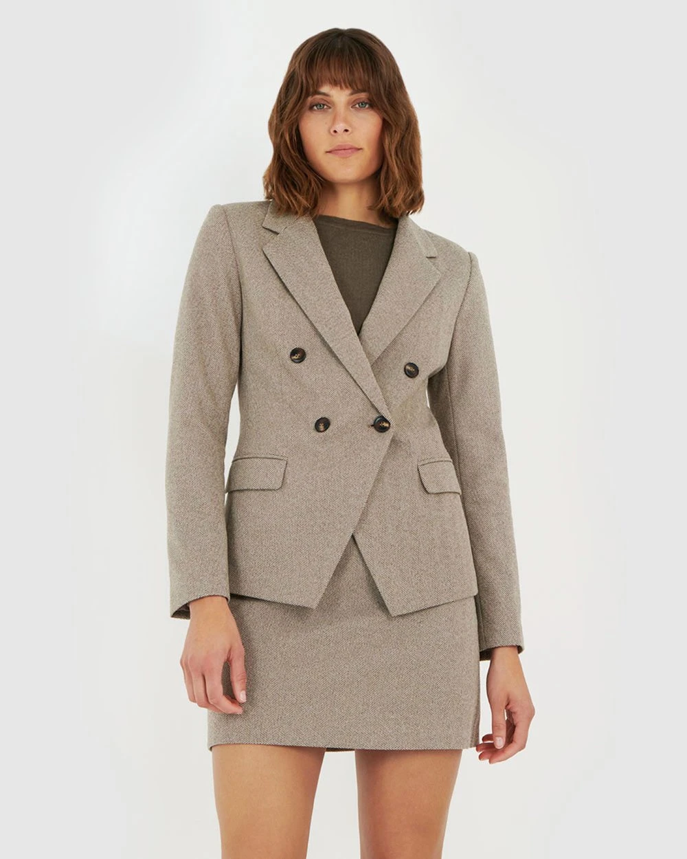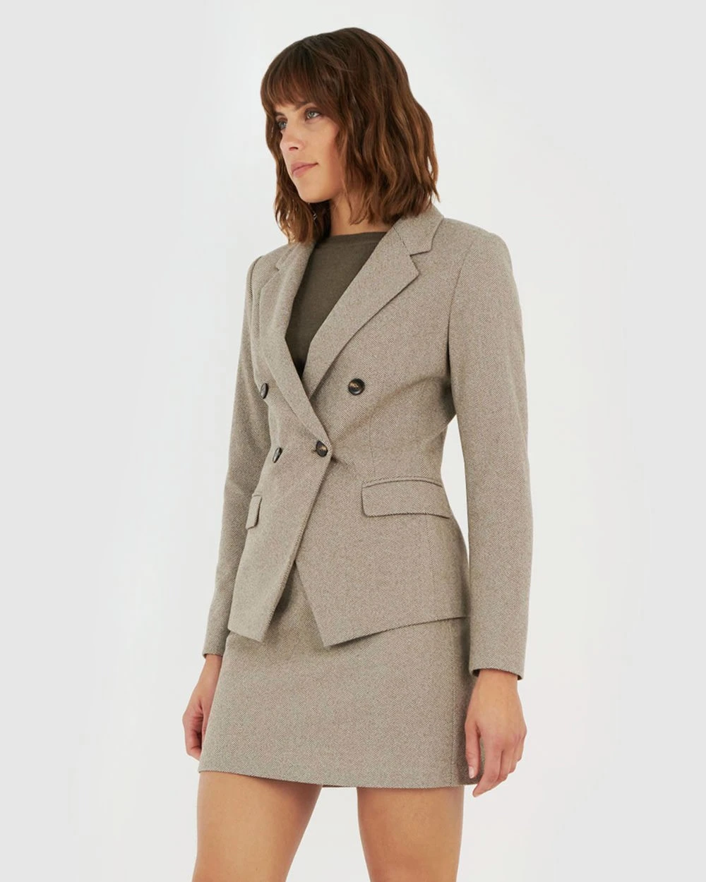 A chic finish to any outfit, the Opal Double Breasted Blazer by Forcast is a closet must have this season. Featuring brown marble like buttons and tailored fit, this blazer is perfect to layer over your favourite winter outfits. Or make a statement with the matching Opal Double Breasted Blazer.