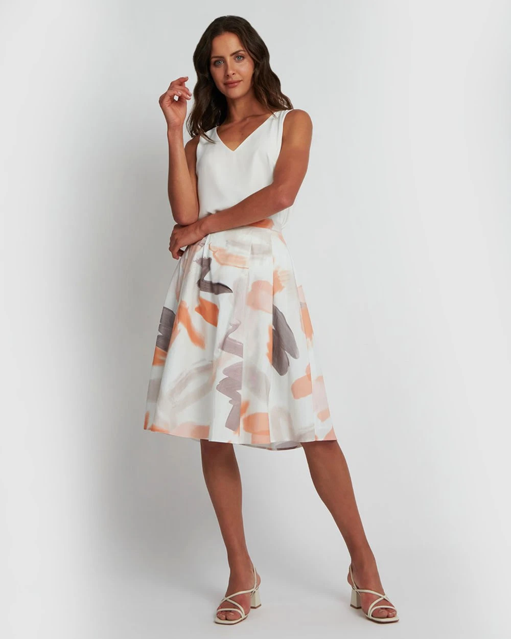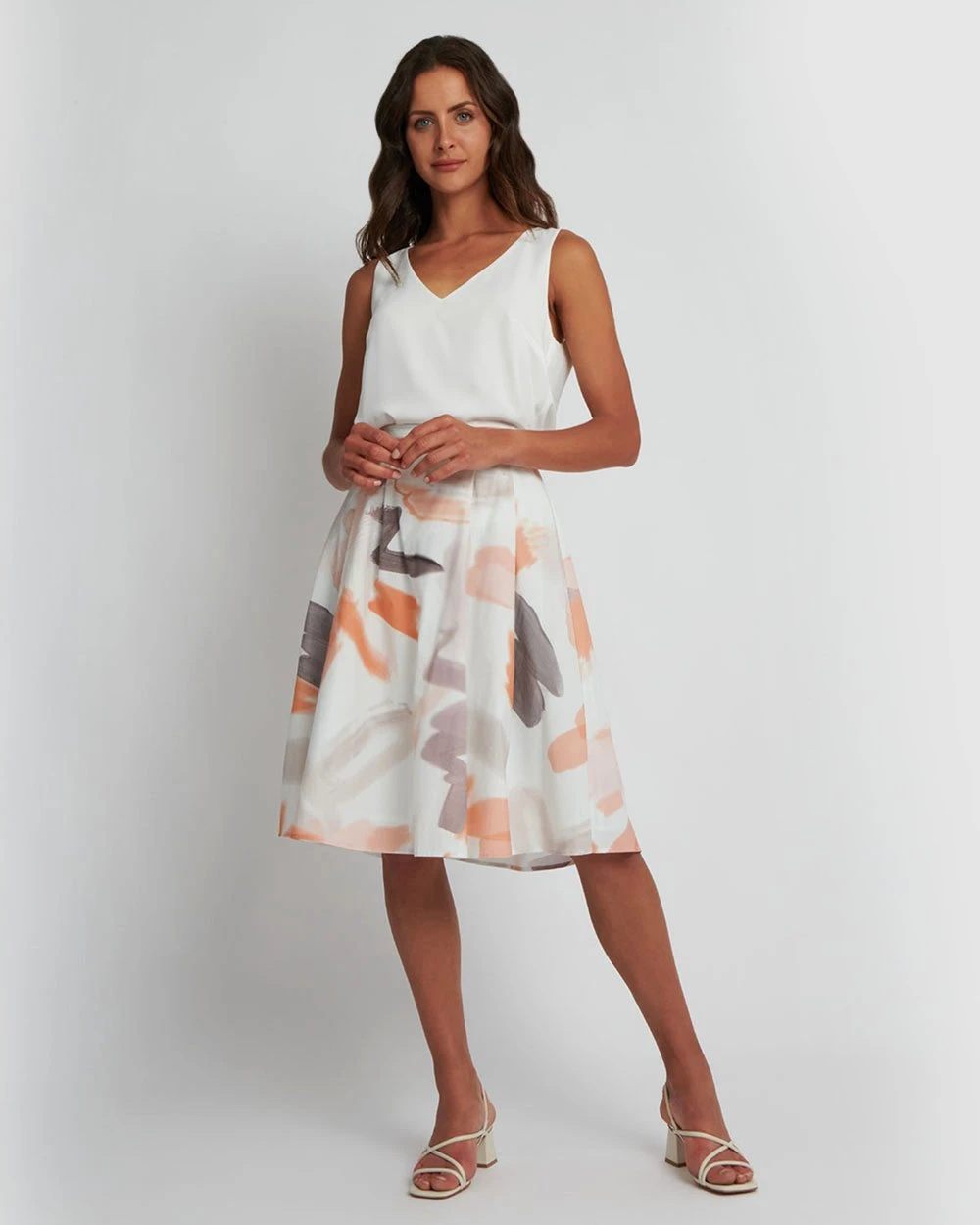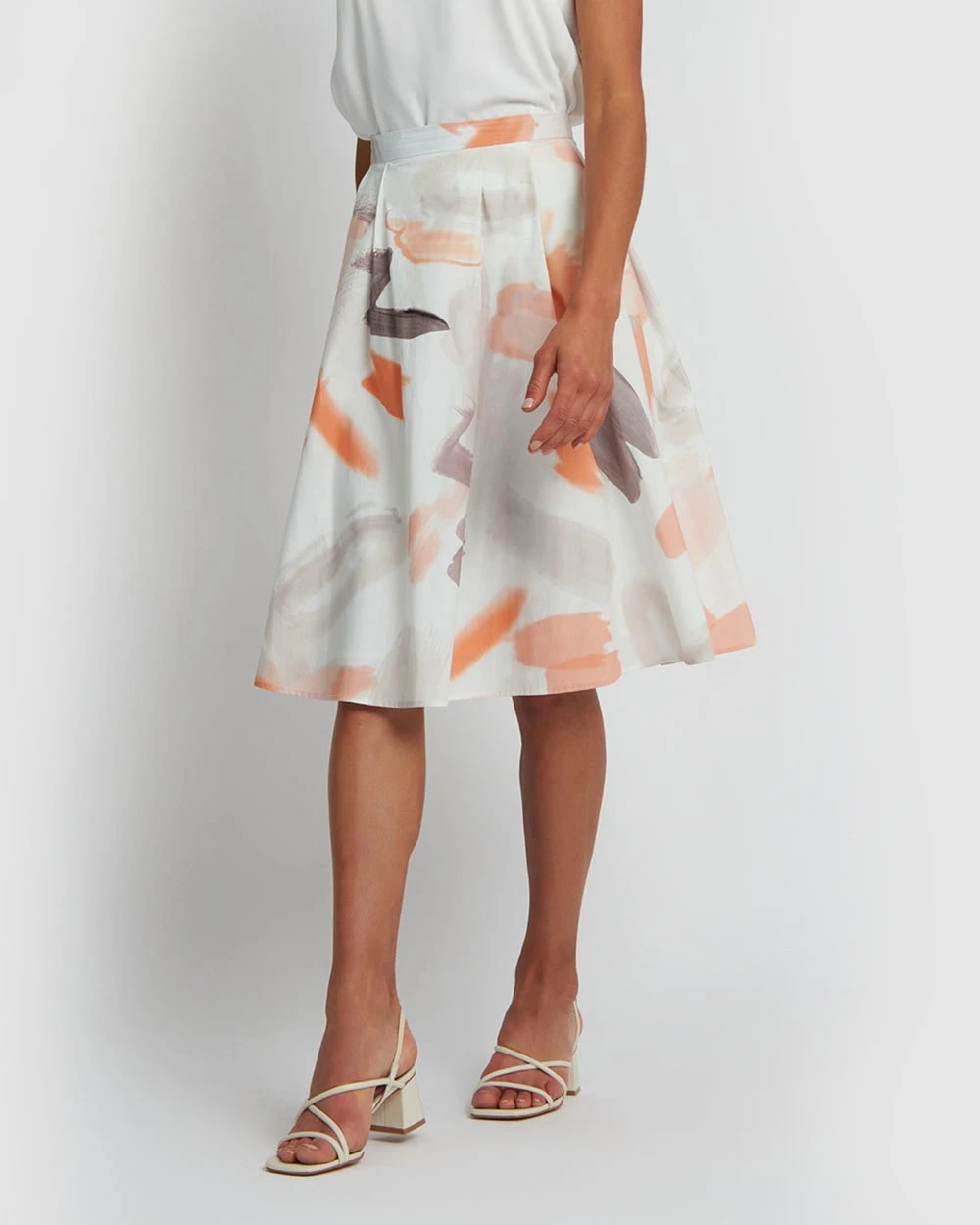The Pamela A-Line Skirt by Forcast is a closet must-have with its refreshing modern print. Crafted from a light cotton fabric and designed with a flowy A-line silhouette, making it a perfect pick for any occasion. Pair with a fitted top for an elegant ensemble that will take you from desk to date with ease.