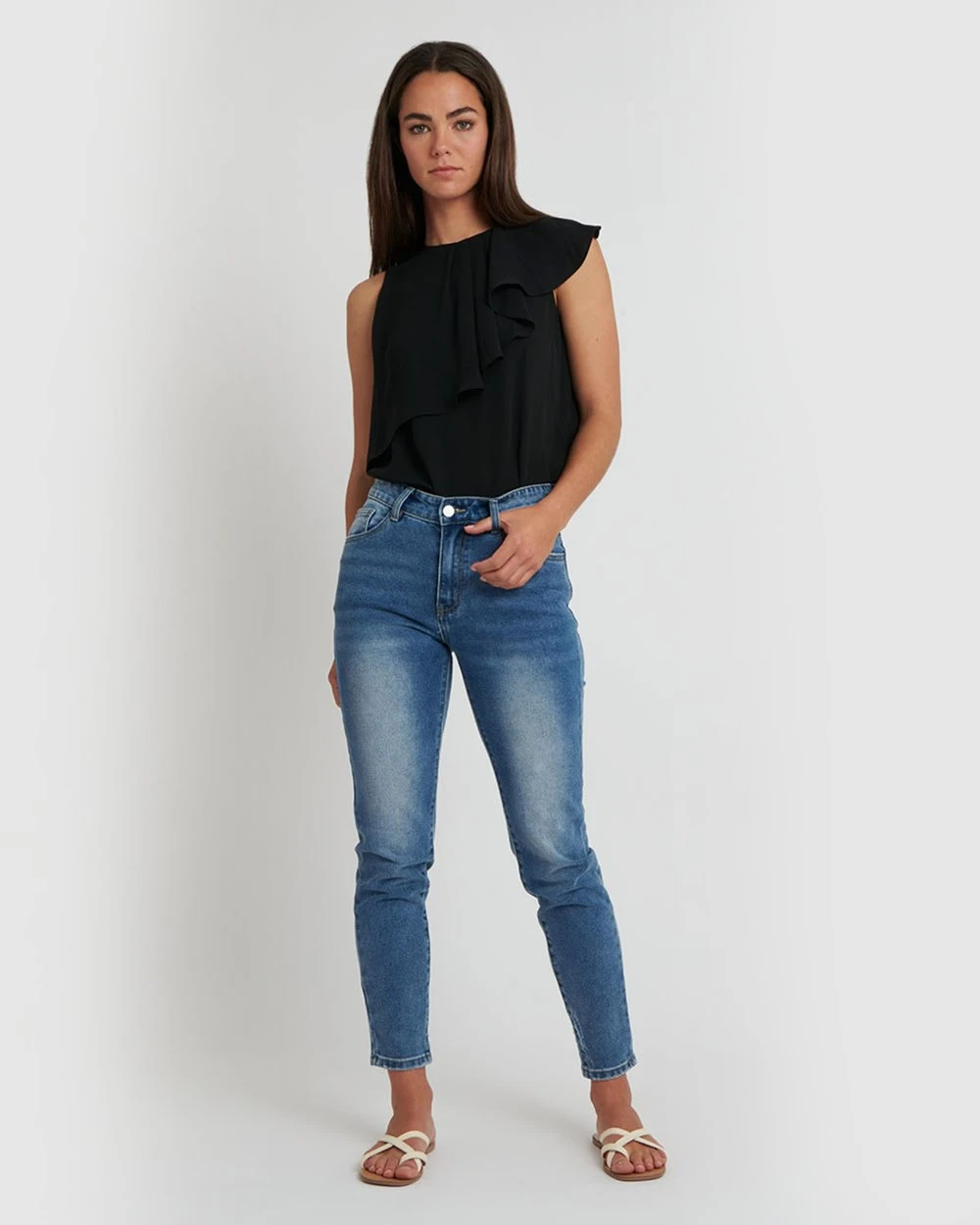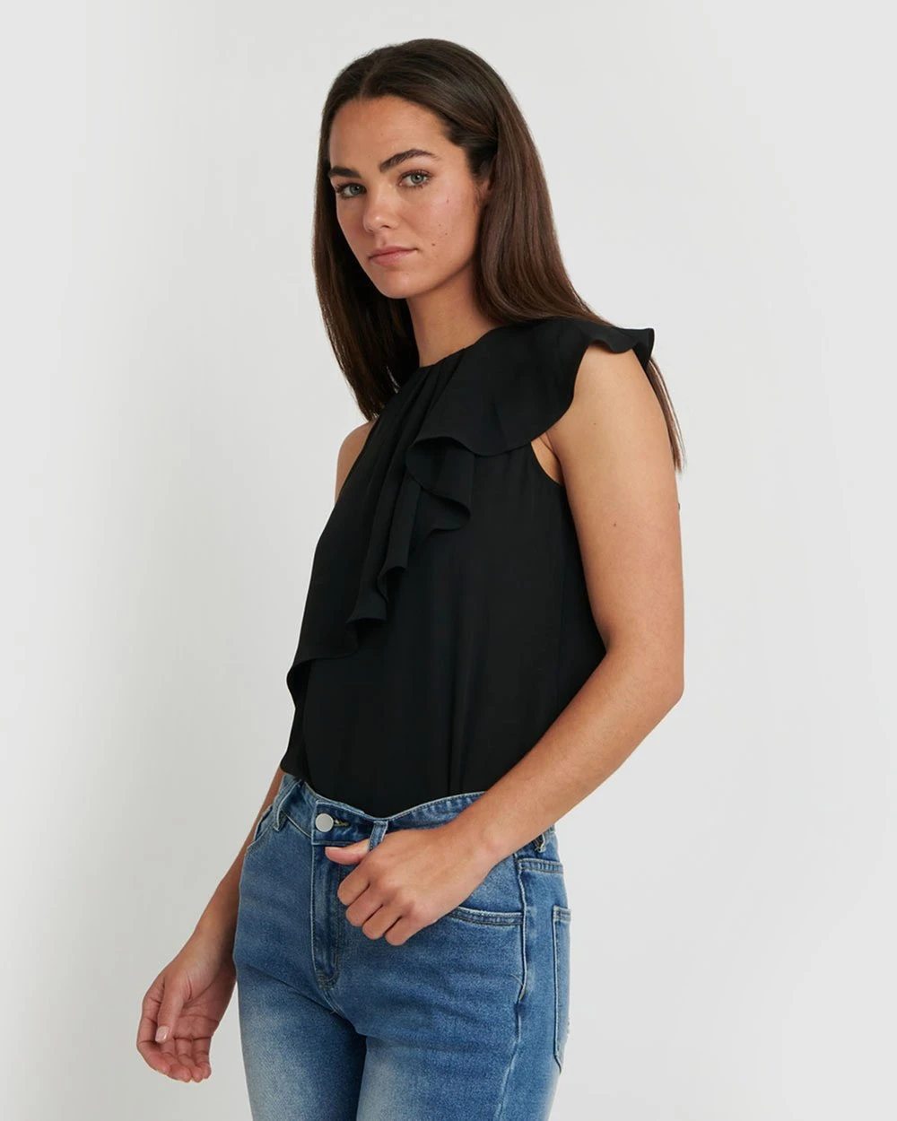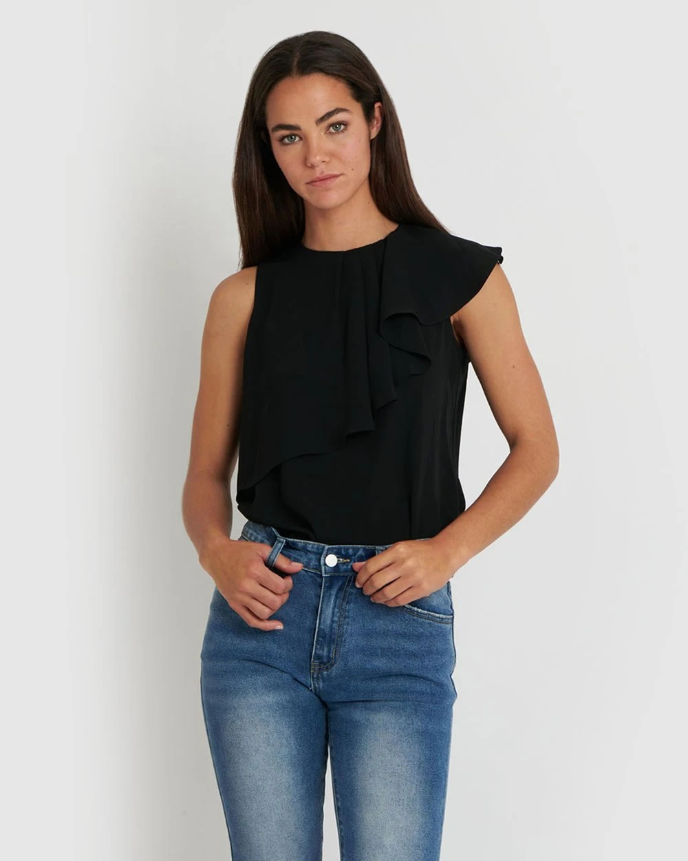 Simply sophisticated, the light and easy-to wear design of the Rosalyn Ruffle Neck Blouse by Forcast Forcast makes it the perfect choice for a busy work day. Style it with a modern A-line skirt and nude heels for a fresh and updated office outfit to take you from desk to date.