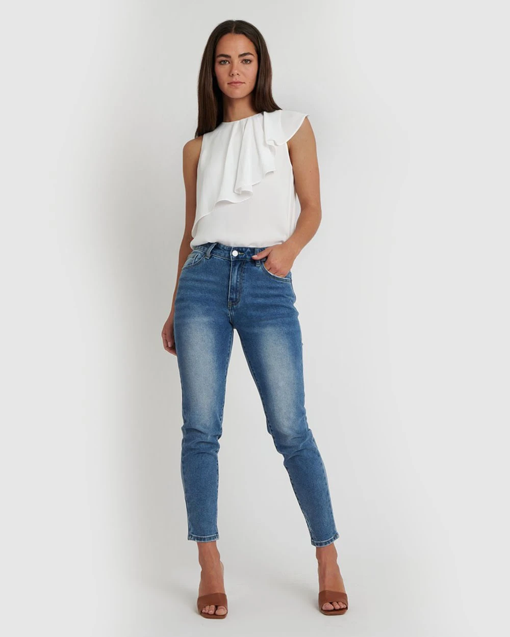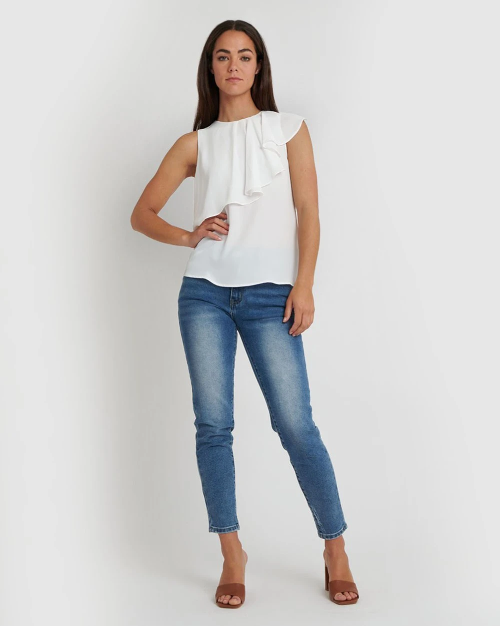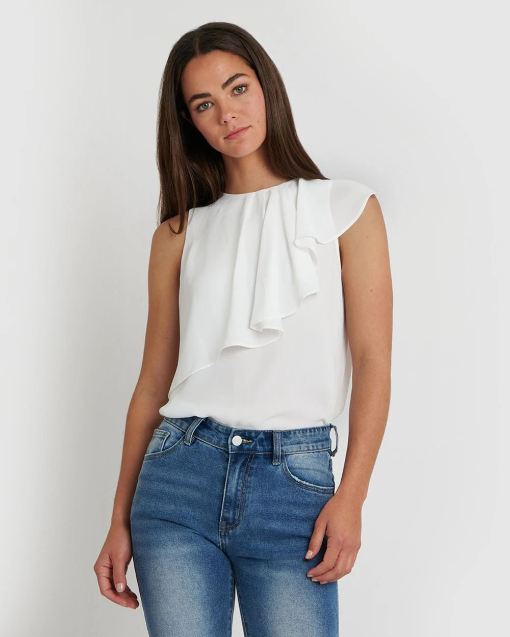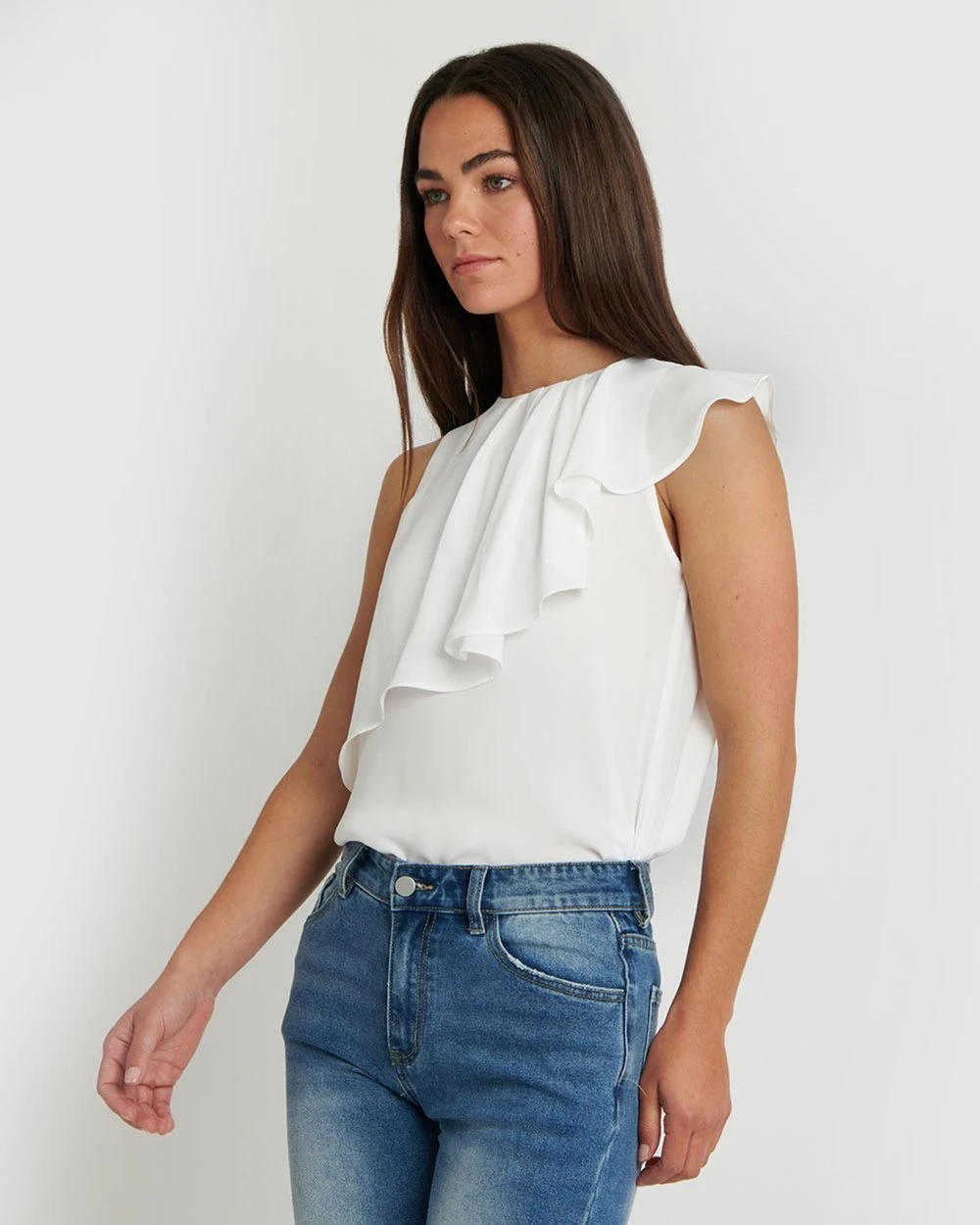 Simply sophisticated, the light and easy-to wear design of the Rosalyn Ruffle Neck Blouse by Forcast Forcast makes it the perfect choice for a busy work day. Style it with a modern A-line skirt and nude heels for a fresh and updated office outfit to take you from desk to date.