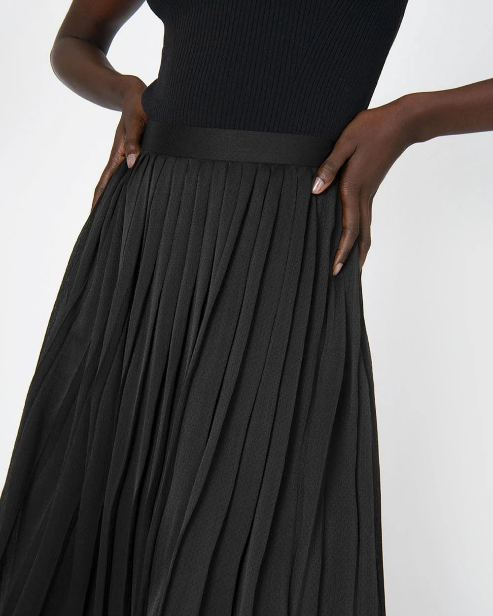 Simple and elegant, the Rosy Pleated Skirt by Forcast is a wardrobe staple you cannot miss. This A-line design featuring pleats and lightweight fabric that effortlessly flow and will soften any look, making it the perfect pick for your next work or weekend event. Style with a belt and simple top for a classy feel.