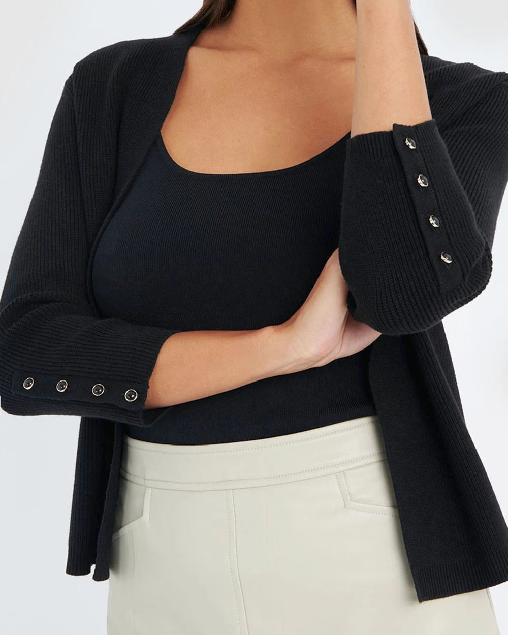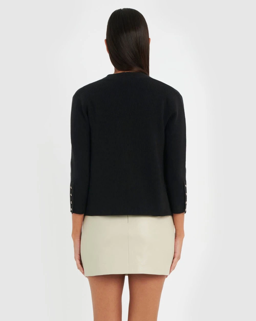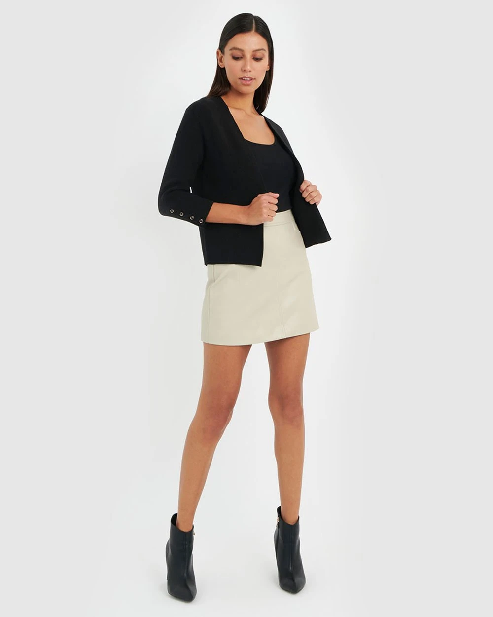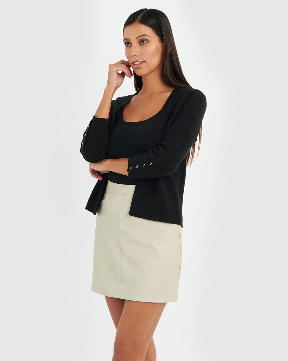 Uniquely captivating, the Roxanne Collarless Cardigan by Forcast is a minimal piece perfect for the chilly days coming ahead. It will surely elevate the simple pieces of your work wardrobe, featuring ¾ sleeves with button cuff details and textured ribbed fabrication throughout.