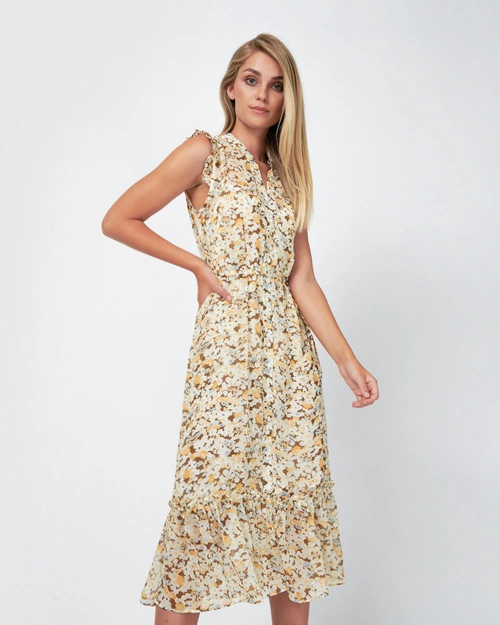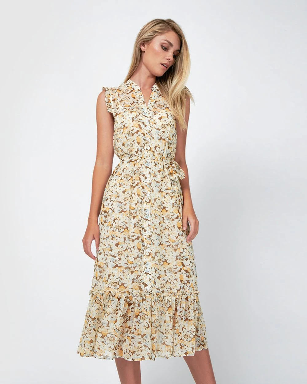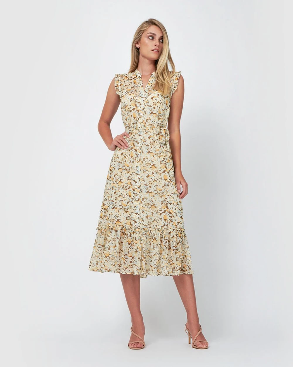 The Sabine Tie Waist Dress by Forcast is a soft and feminine style, making it the perfect dress to have in your wardrobe this season. Featuring soft ruffle detail and a tie waist belt, this effortless style will take you through the day with ultimate class and elegance. Complete the look and team with simple mules.